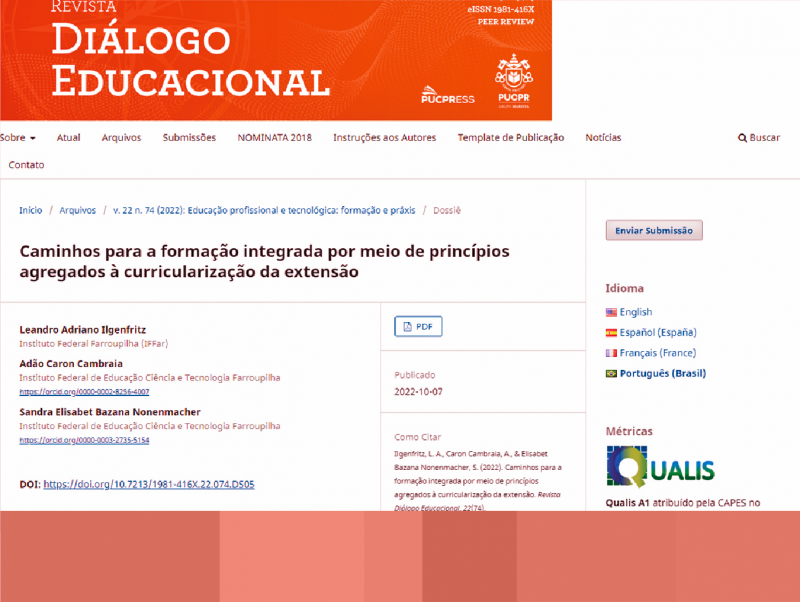 Imagem: projeto de origem ao artigo publicado no periódico Diálogo Educacional, da PUC-PR