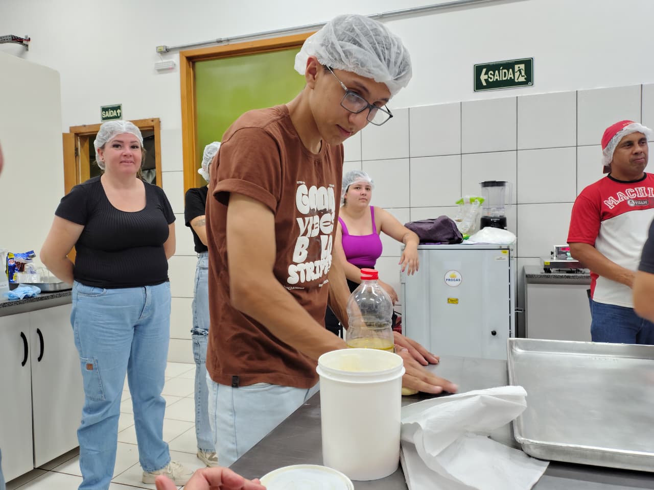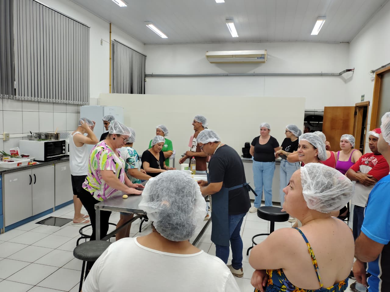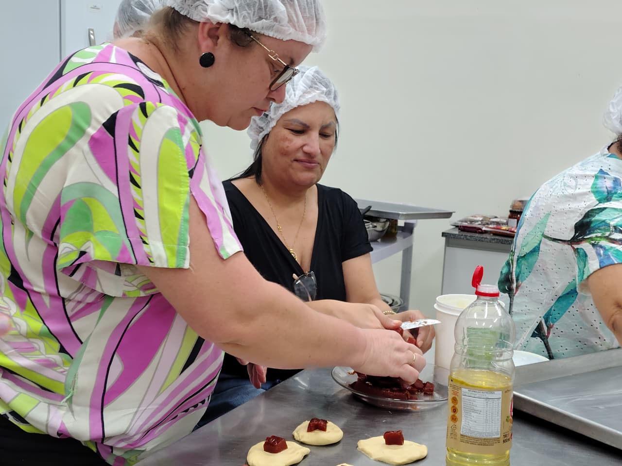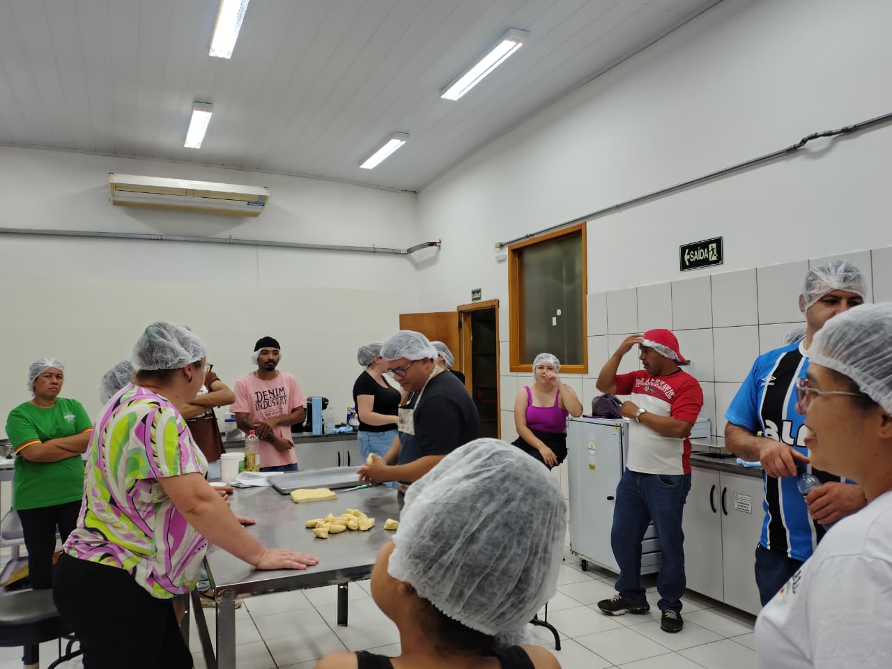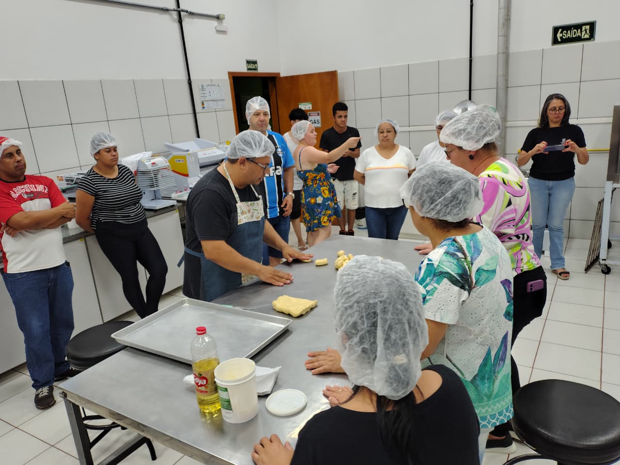 A oficina realizada por meio do Projeto de Extensão “Pé Na Estrada”, coordenado pela professora Janice Boeira, aconteceu no laboratório de panificação, sendo ministrada pela professora Dra. Melissa dos Santos Oliveira e Adelar Aguiler Moraes.