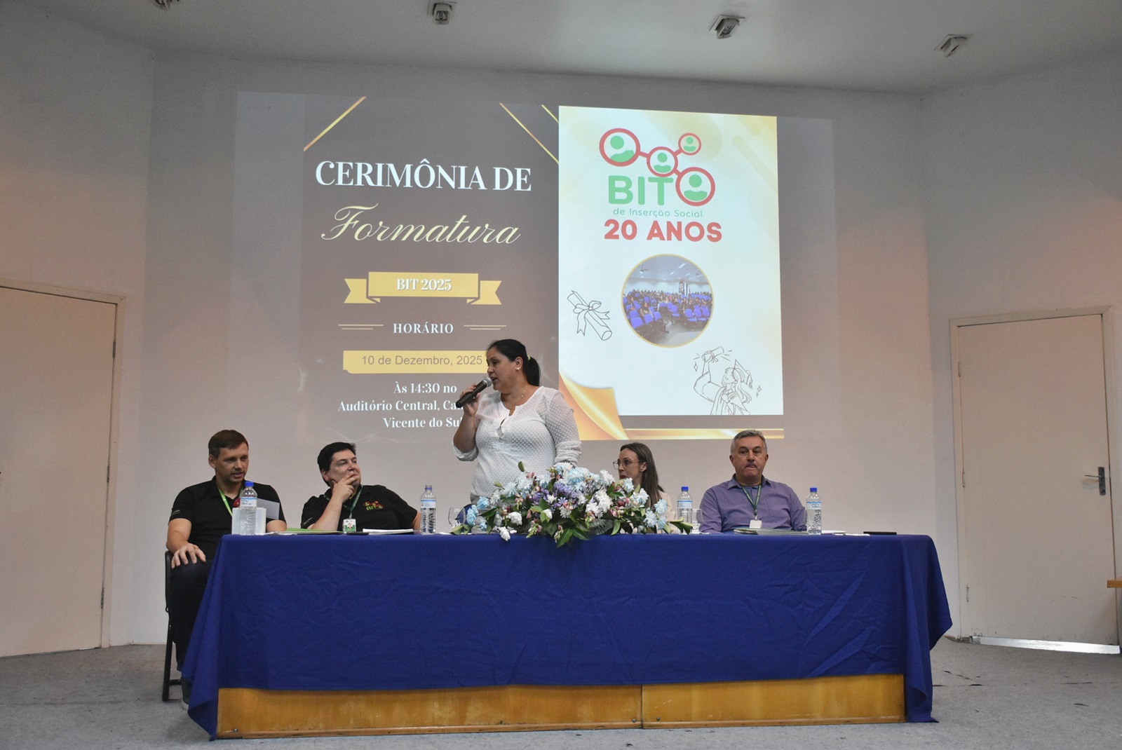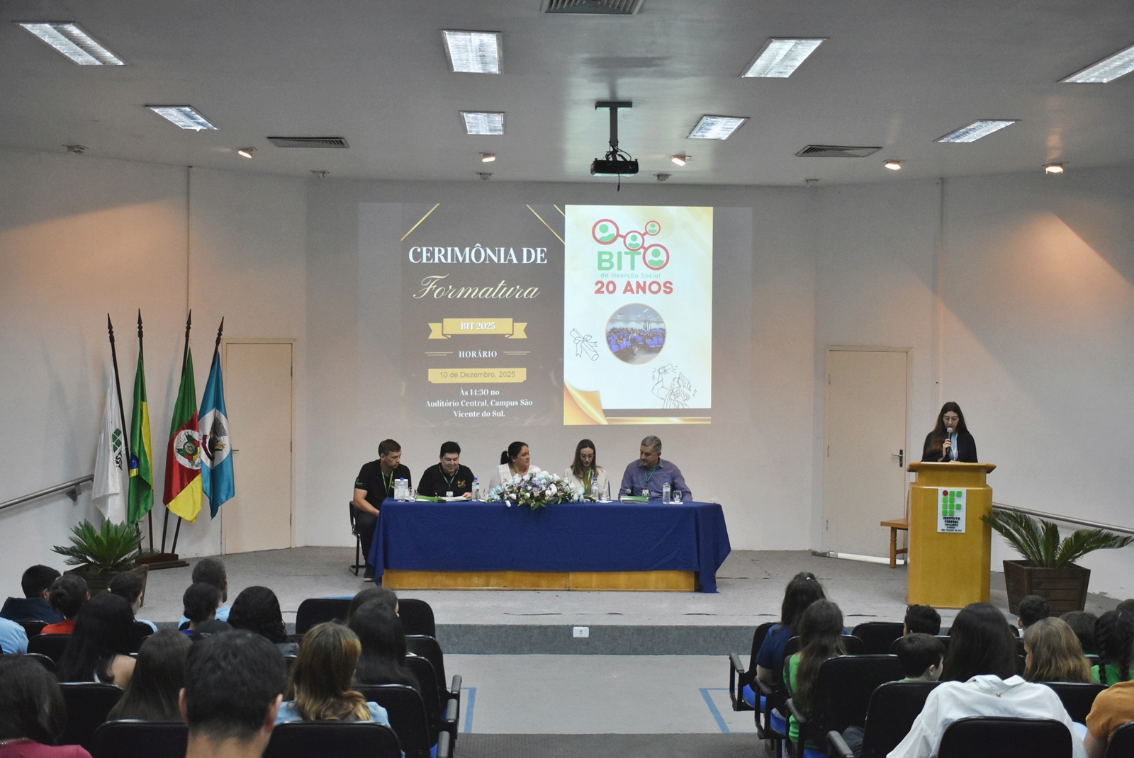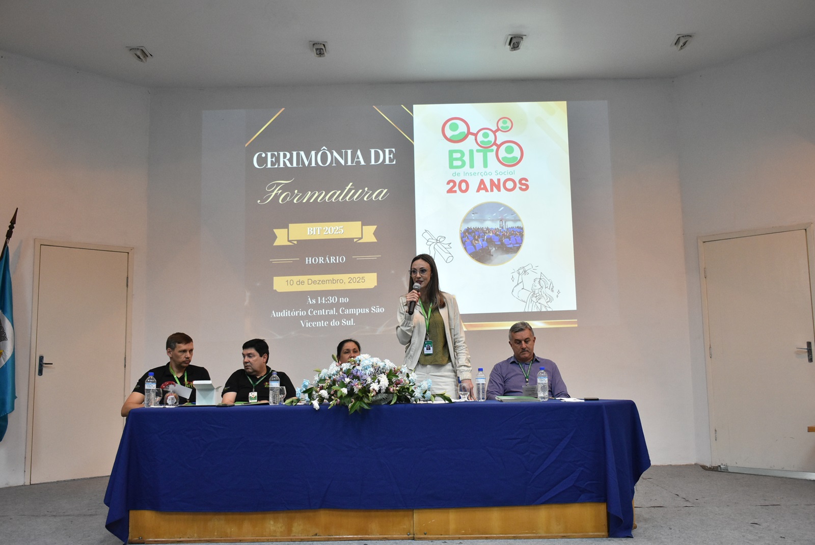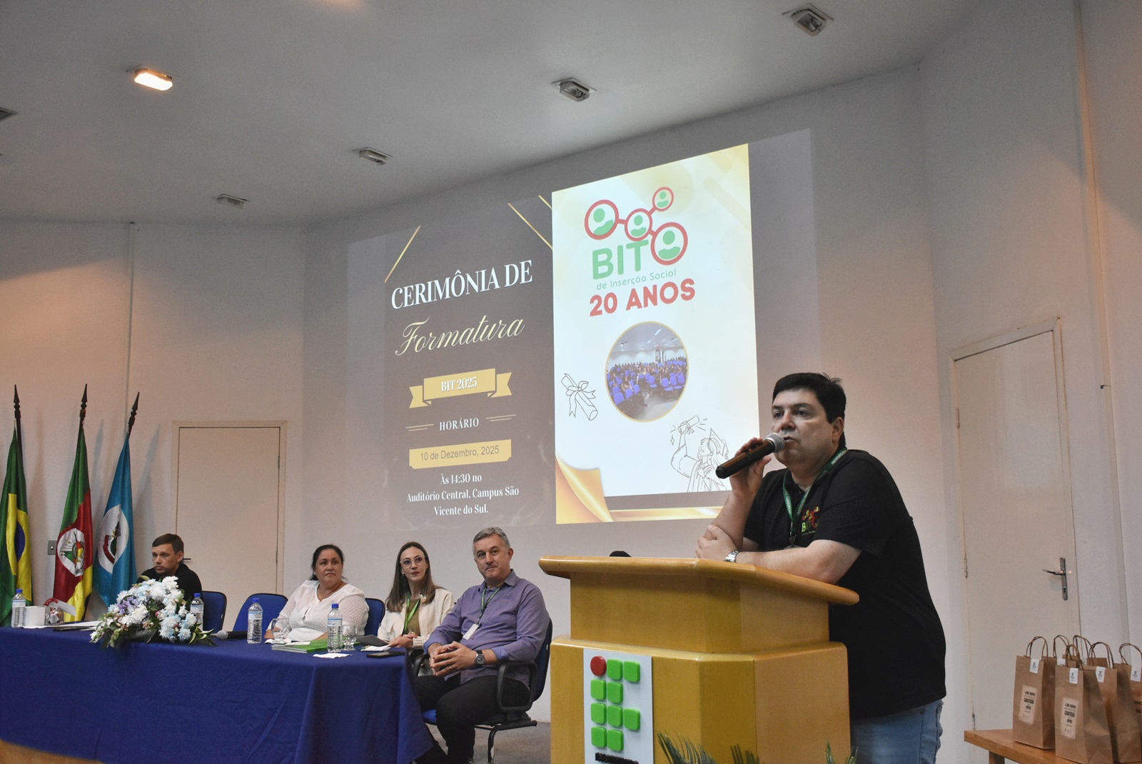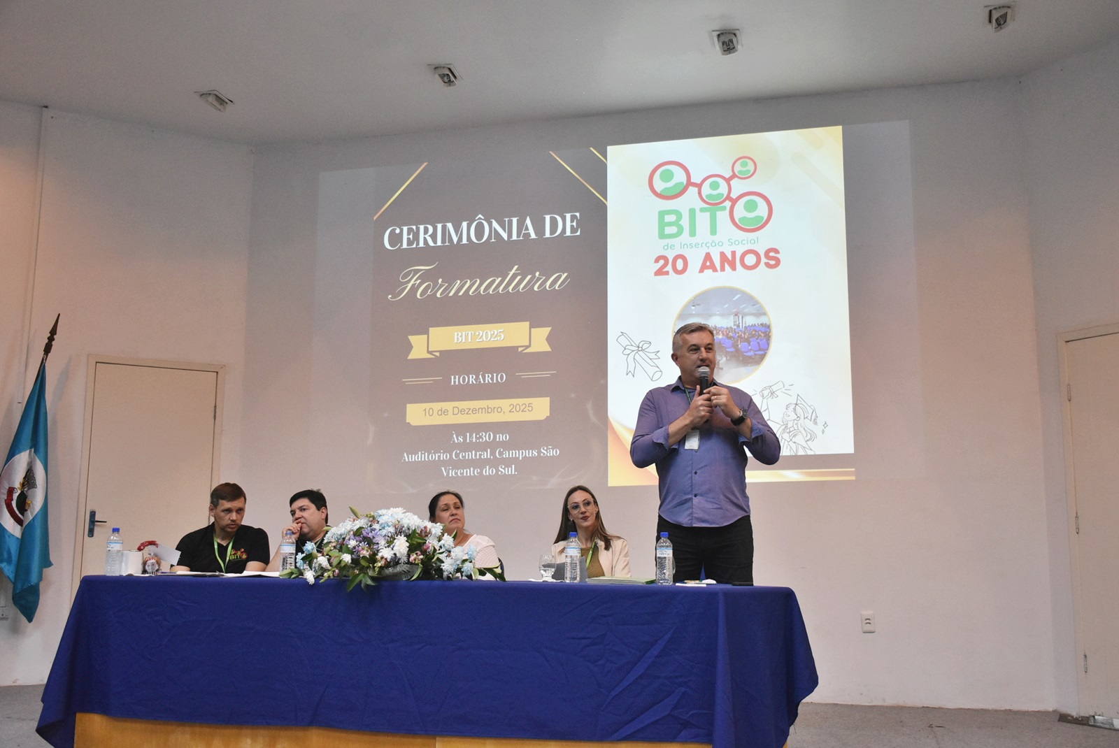 Na tarde de 10 de dezembro, o Instituto Federal Farroupilha – Campus São Vicente do Sul realizou a cerimônia de encerramento do Projeto de Extensão “BIT de Inserção Social: Educandário e Instituições Inclusivas”, marcando o término das atividades desenvolvidas ao longo do ano.