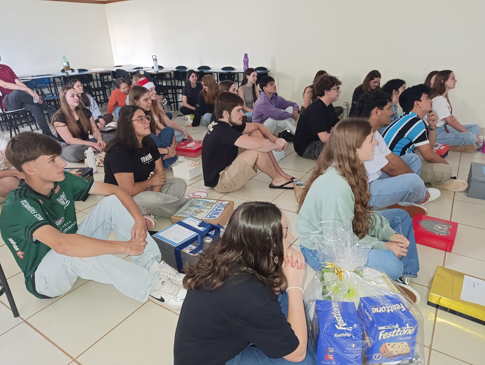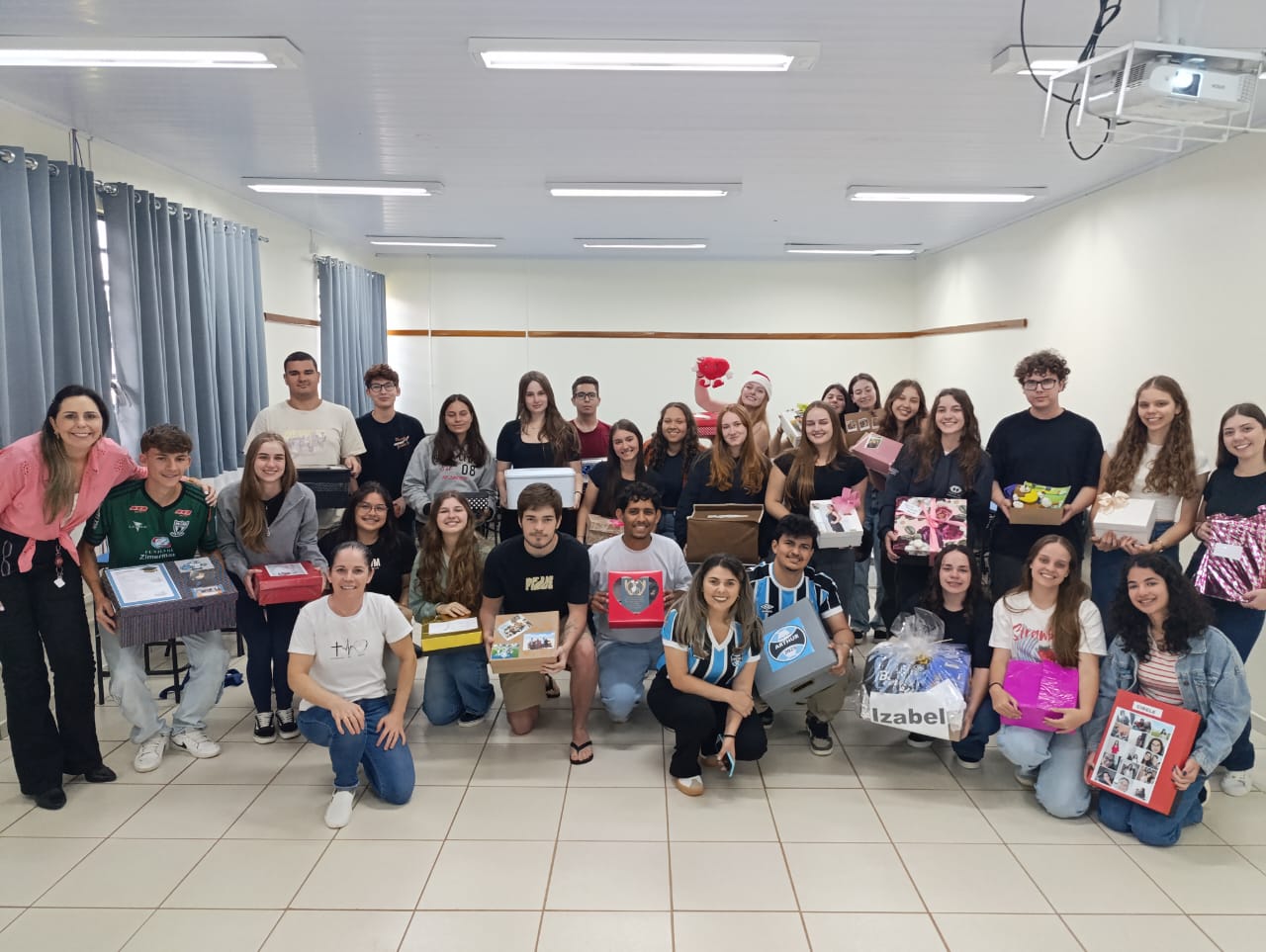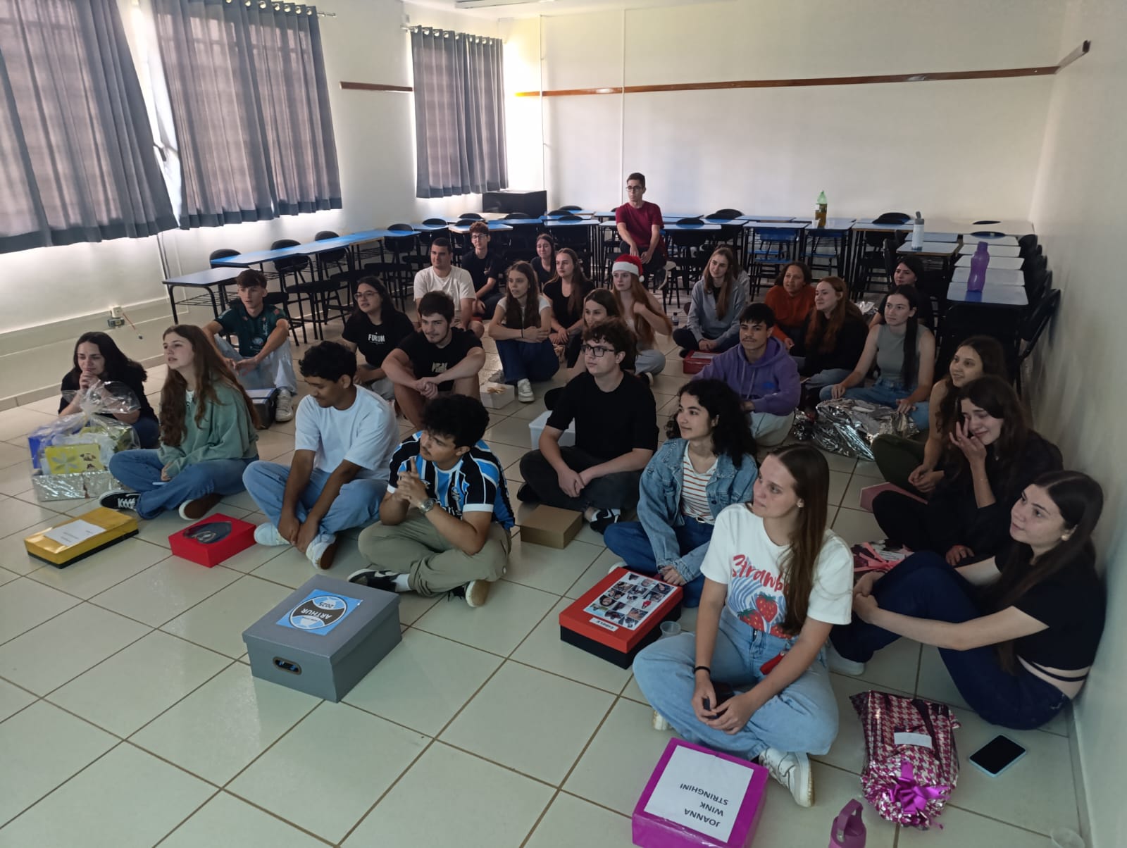 Os concluintes do técnico em Administração do IFFar – Campus Santo Augusto foram surpreendidos na última terça-feira, dia 09 de dezembro, com uma homenagem organizada pelos pais, com o auxílio da coordenadora do curso, professora Amanda Martin e da Patronesse da turma, professora Simone Nunes. Na ocasião, os alunos assistiram um vídeo com mensagens gravadas pelos familiares e receberam caixas de memórias, organizada pelos pais, com recordações da infância, fotos, roupas, entre outros objetos afetivos.