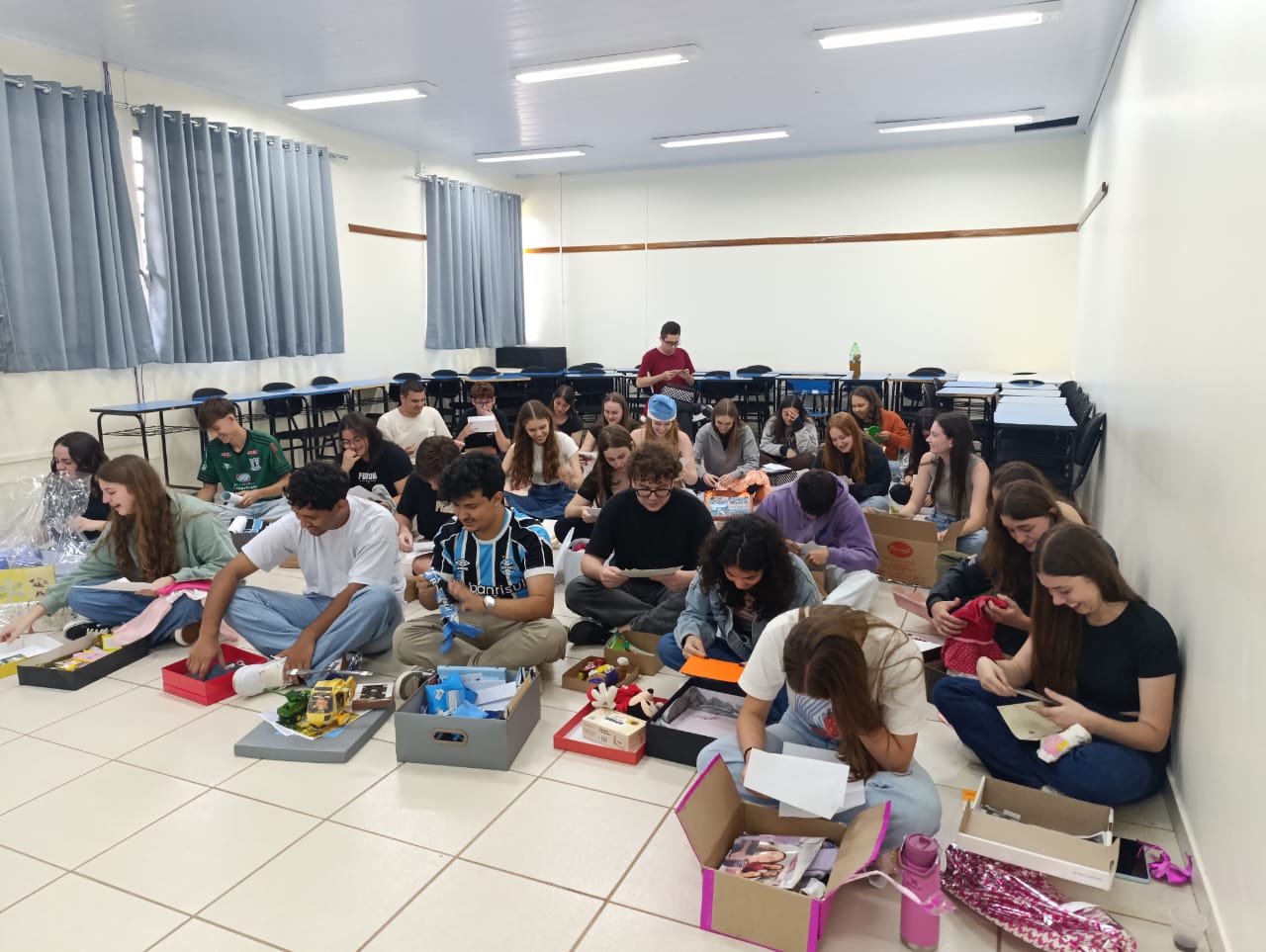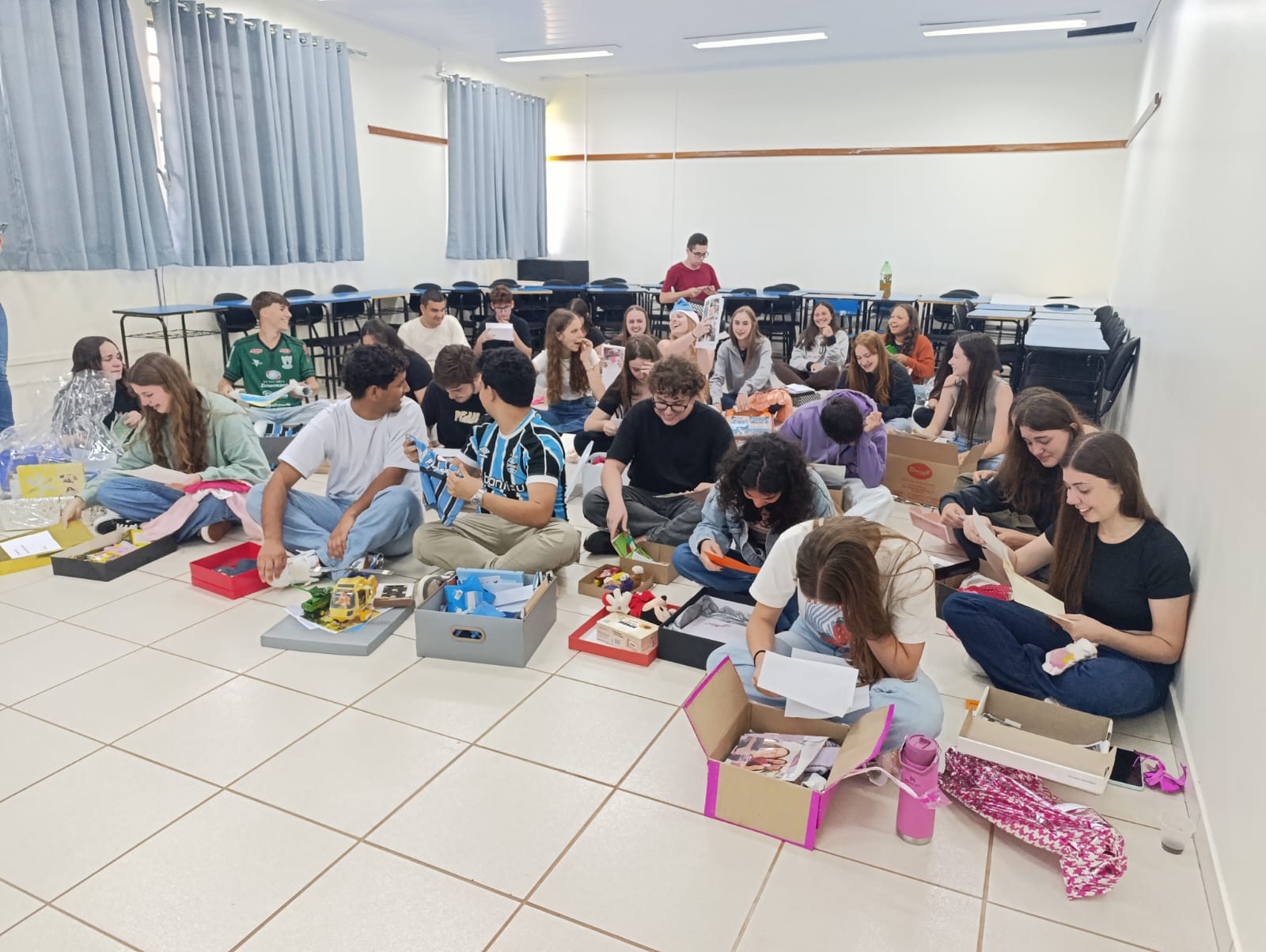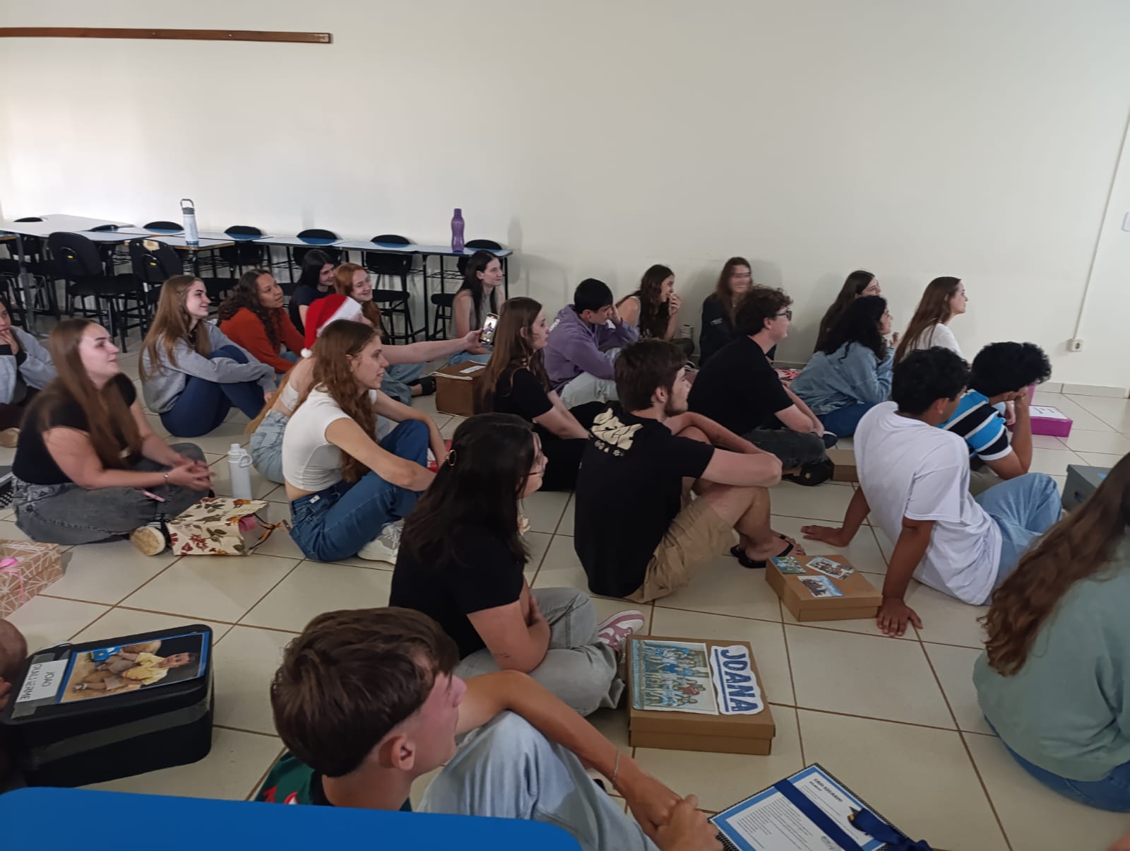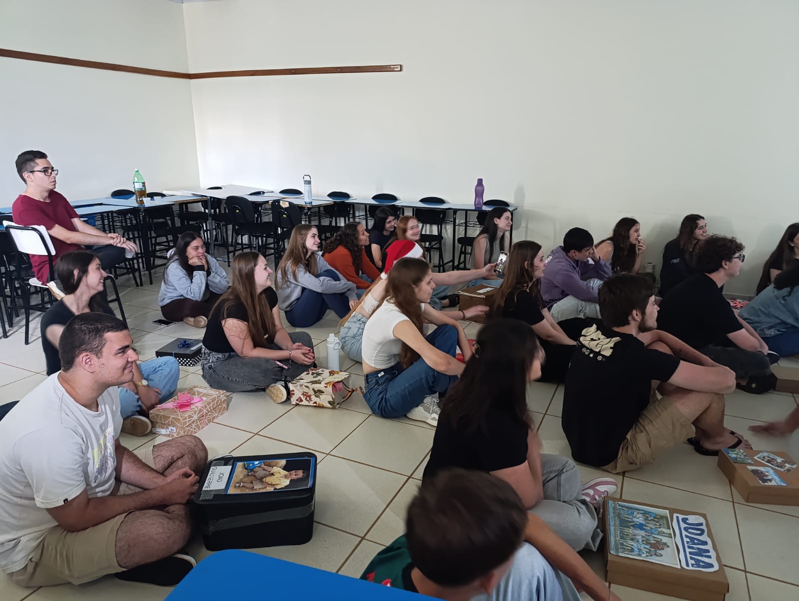 Os concluintes do técnico em Administração do IFFar – Campus Santo Augusto foram surpreendidos na última terça-feira, dia 09 de dezembro, com uma homenagem organizada pelos pais, com o auxílio da coordenadora do curso, professora Amanda Martin e da Patronesse da turma, professora Simone Nunes. Na ocasião, os alunos assistiram um vídeo com mensagens gravadas pelos familiares e receberam caixas de memórias, organizada pelos pais, com recordações da infância, fotos, roupas, entre outros objetos afetivos.