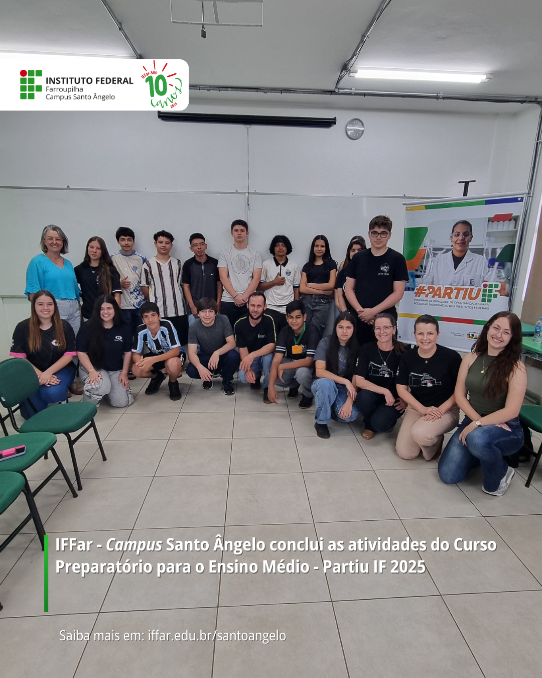 O curso foi desenvolvido ao longo dos últimos seis meses e contou com o profissionalismo e a dedicação da Equipe Partiu IF 2025, com o empenho e comprometimento dos estudantes e também com o apoio importante das escolas, da Secretaria Municipal de Educação e da 14ª Coordenadoria Regional de Educação.