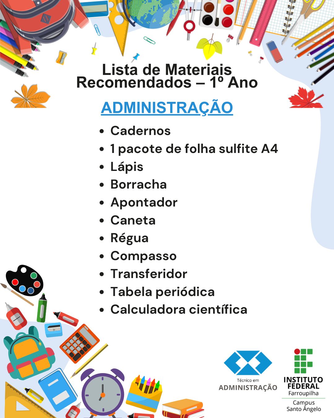 O campus reforça a importância de que todos os estudantes confiram atentamente as listas e organizem seus materiais antes do início das aulas.