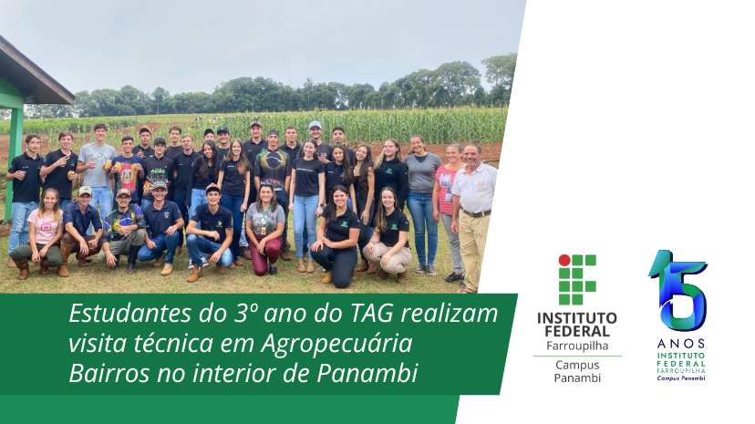 No dia 24 de abril de 2025, os estudantes do 3º ano do curso Técnico em Agricultura Integrado ao Ensino Médio (TAG) do IFFar - Campus Panambi participaram de uma visita técnica à Agropecuária Bairros, localizada no interior do município. A atividade foi acompanhada pelas professoras Larissa Alves, da disciplina de Processamento de Alimentos, e Micaela Takeuchi, da disciplina de Elaboração de Projetos Agrícolas.