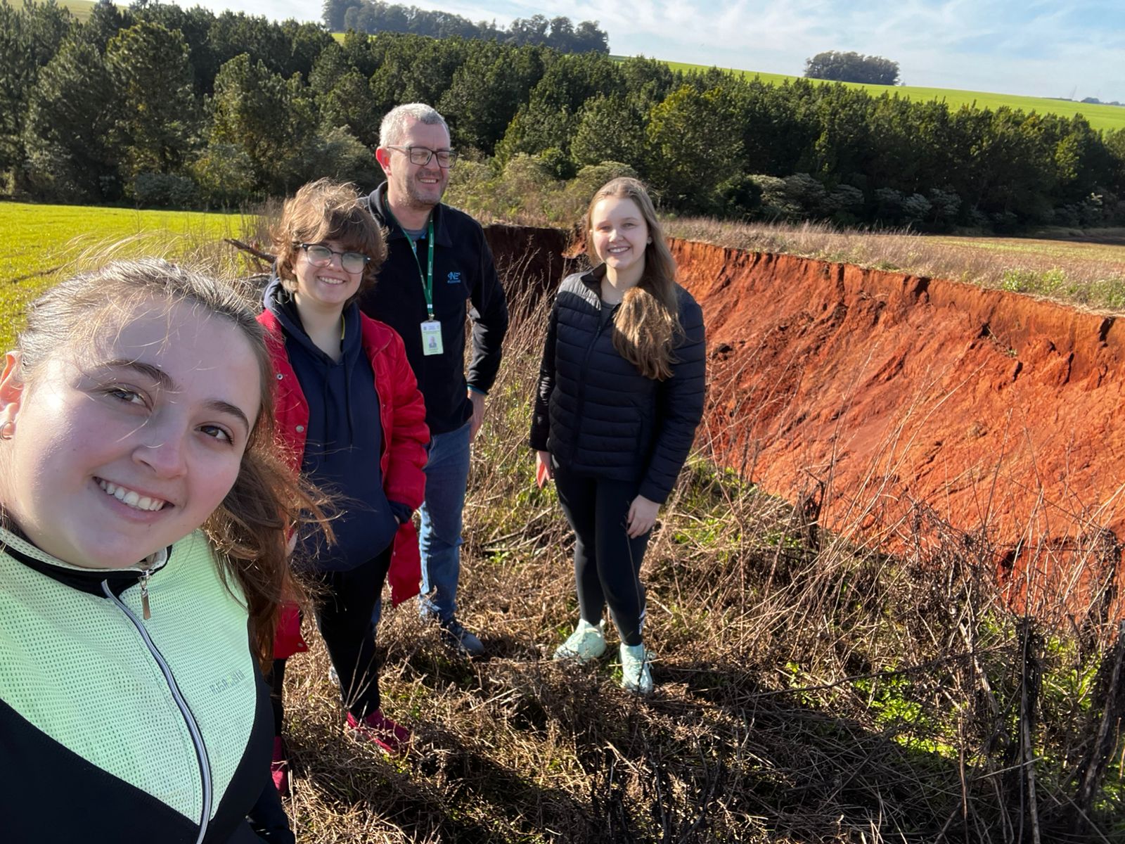 No dia 05 de julho de 2025, foi realizada uma atividade de campo com os alunos do curso de Licenciatura em Ciências Biológicas, vinculada ao componente curricular de Geologia, sob a orientação do professor Valdecir Schenkel. A ação teve como principal objetivo promover uma prática pedagógica in locus, conectando os conhecimentos teóricos abordados em sala de aula com a realidade concreta e cotidiana, proporcionando aos futuros professores uma experiência significativa.