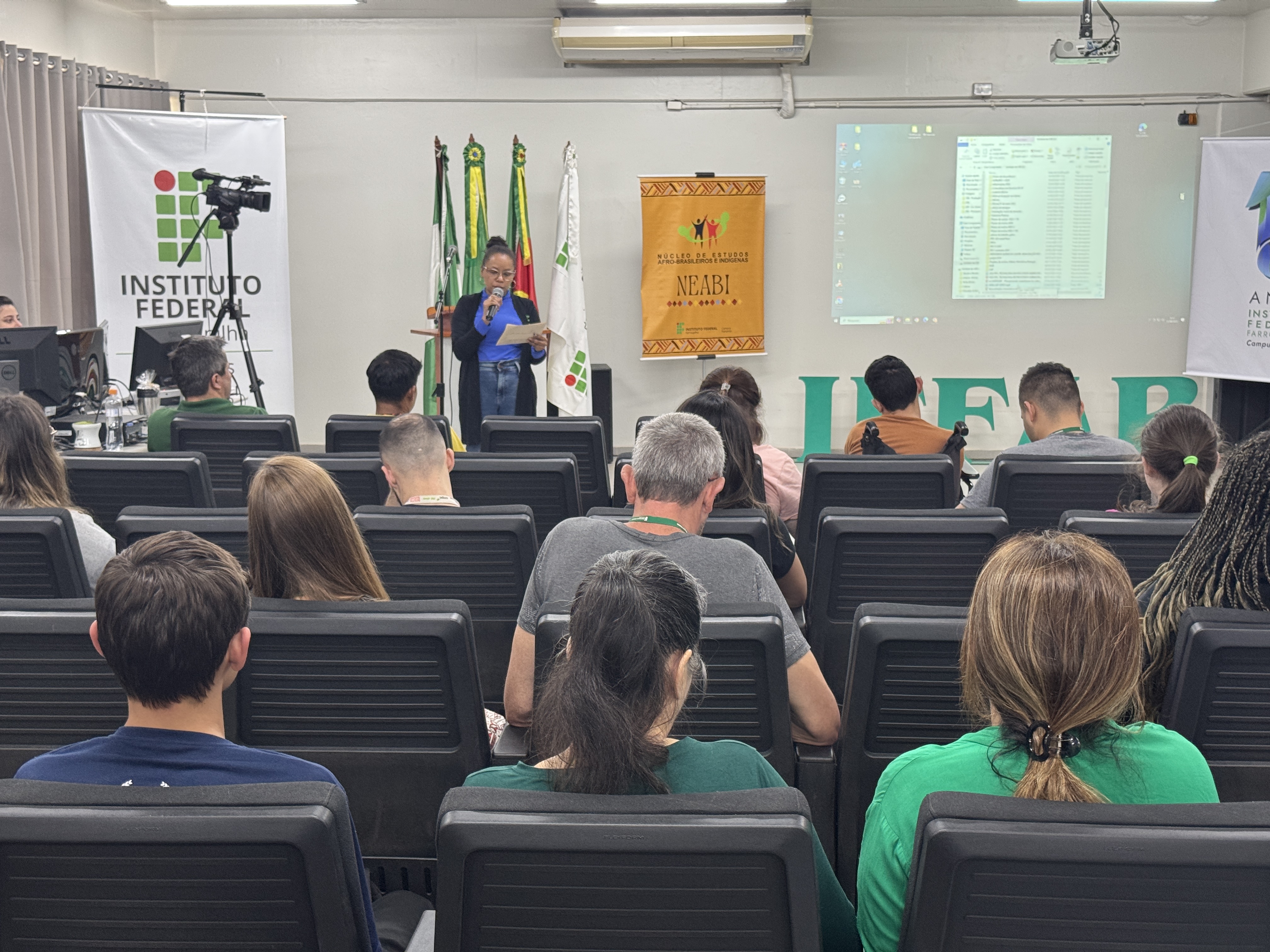 O evento contou com a presença de representantes da comunidade externa, entre eles: Cristiane Xavier Hagat e Rúbia Íterman, da SMEC; Cristiane Morche Giesel, assessora técnica do Conselho Municipal de Educação, e demais conselheiras; além de Amilcar Guidolim Vitor, presidente do NEABI do Campus Santo Ângelo.
