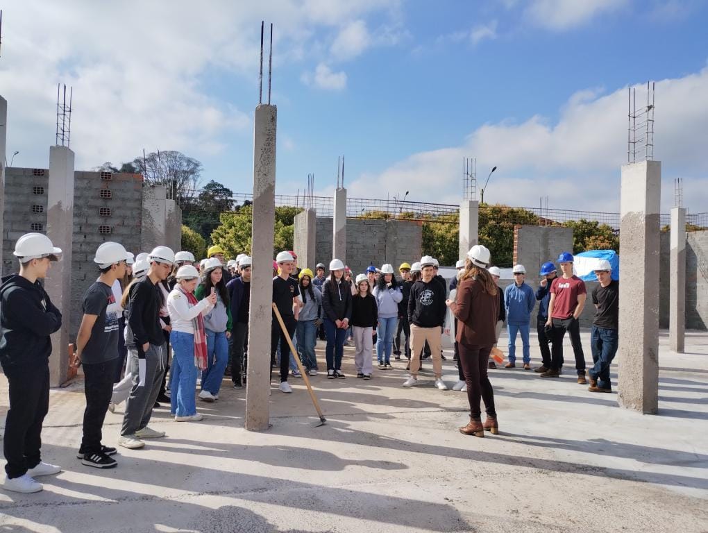 Na tarde de 14 de agosto, estudantes e professores do Curso Técnico em Edificações – Integrado ao Ensino Médio, acompanhados de servidores da biblioteca do Instituto Federal Farroupilha – Campus Panambi, participaram de um momento simbólico e histórico: o assentamento dos primeiros tijolos da nova edificação que abrigará a Biblioteca Moacyr Scliar.