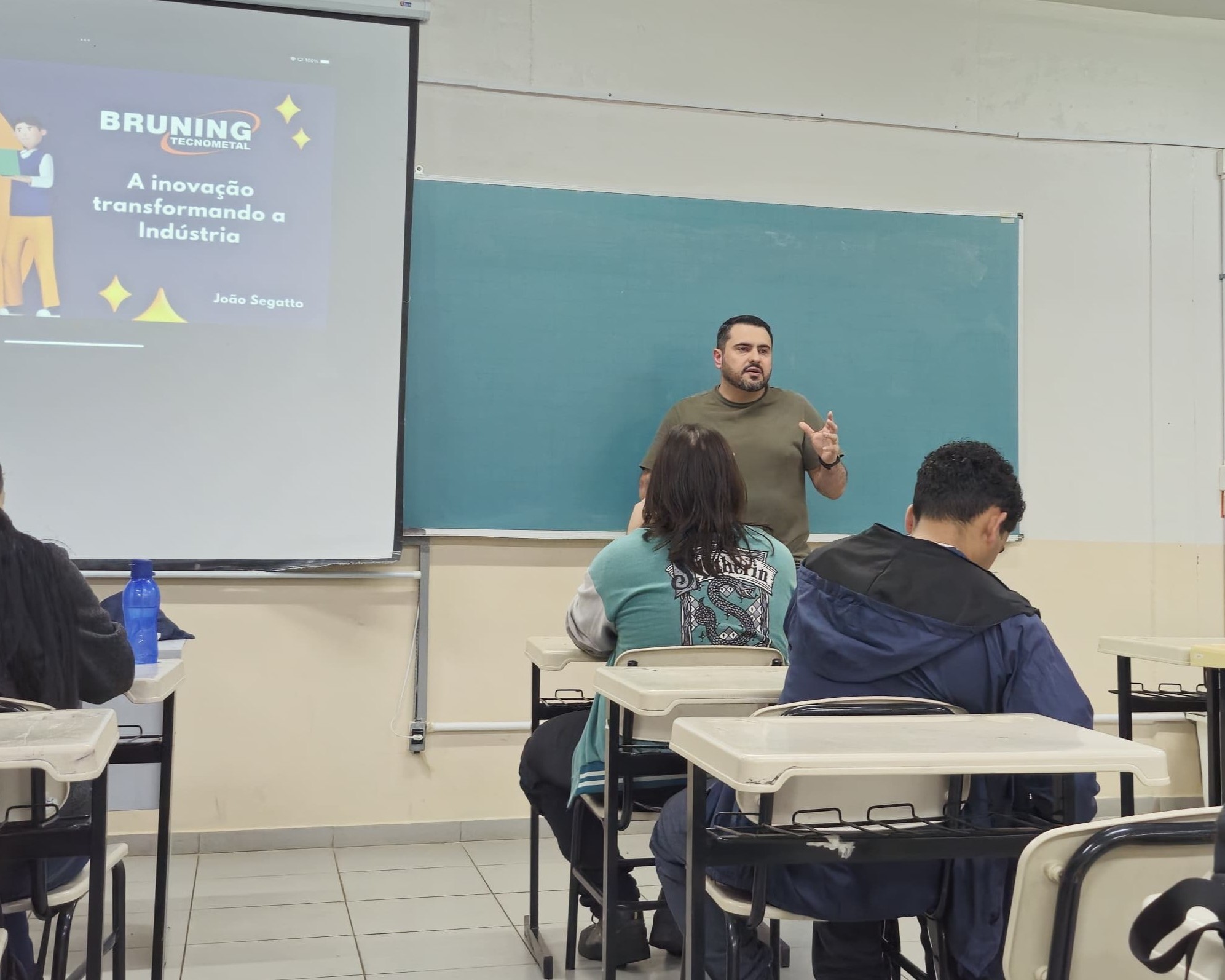 Na noite do dia 7 de maio, a turma do primeiro semestre do curso Bacharelado em Engenharia de Controle e Automação foi agraciada com a presença do Mestre Eng. Químico João Carlos Segatto Leite, Analista Sênior em Pesquisa, Desenvolvimento e Inovação, e professor de Engenharia Química para falar sobre a importância da Pesquisa e Inovação no ambiente industrial.