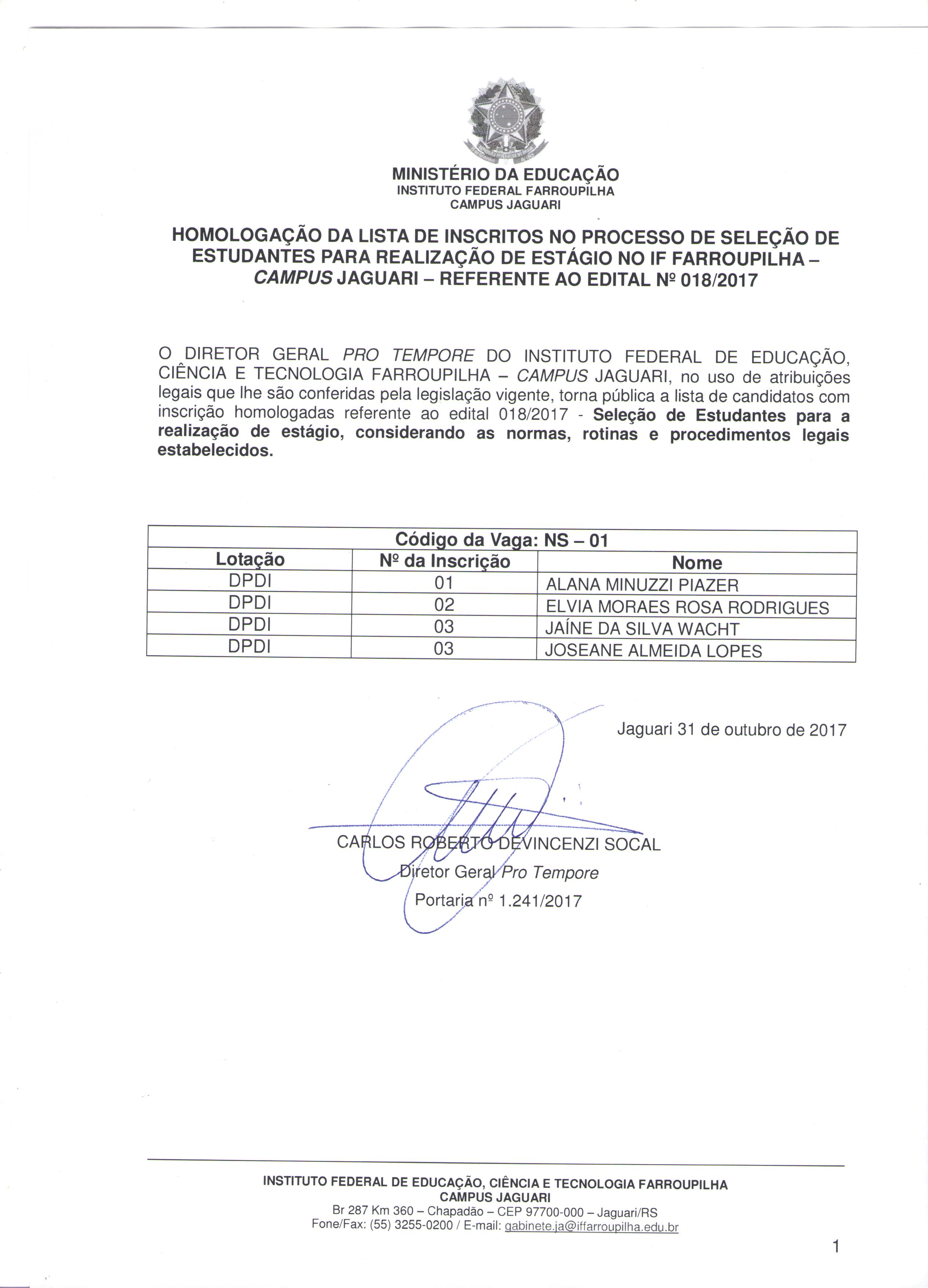 Edital 18/2017 - Seleção de estudantes para a realização de estágio no Instituto Federal Farroupilha - Campus Jaguari
