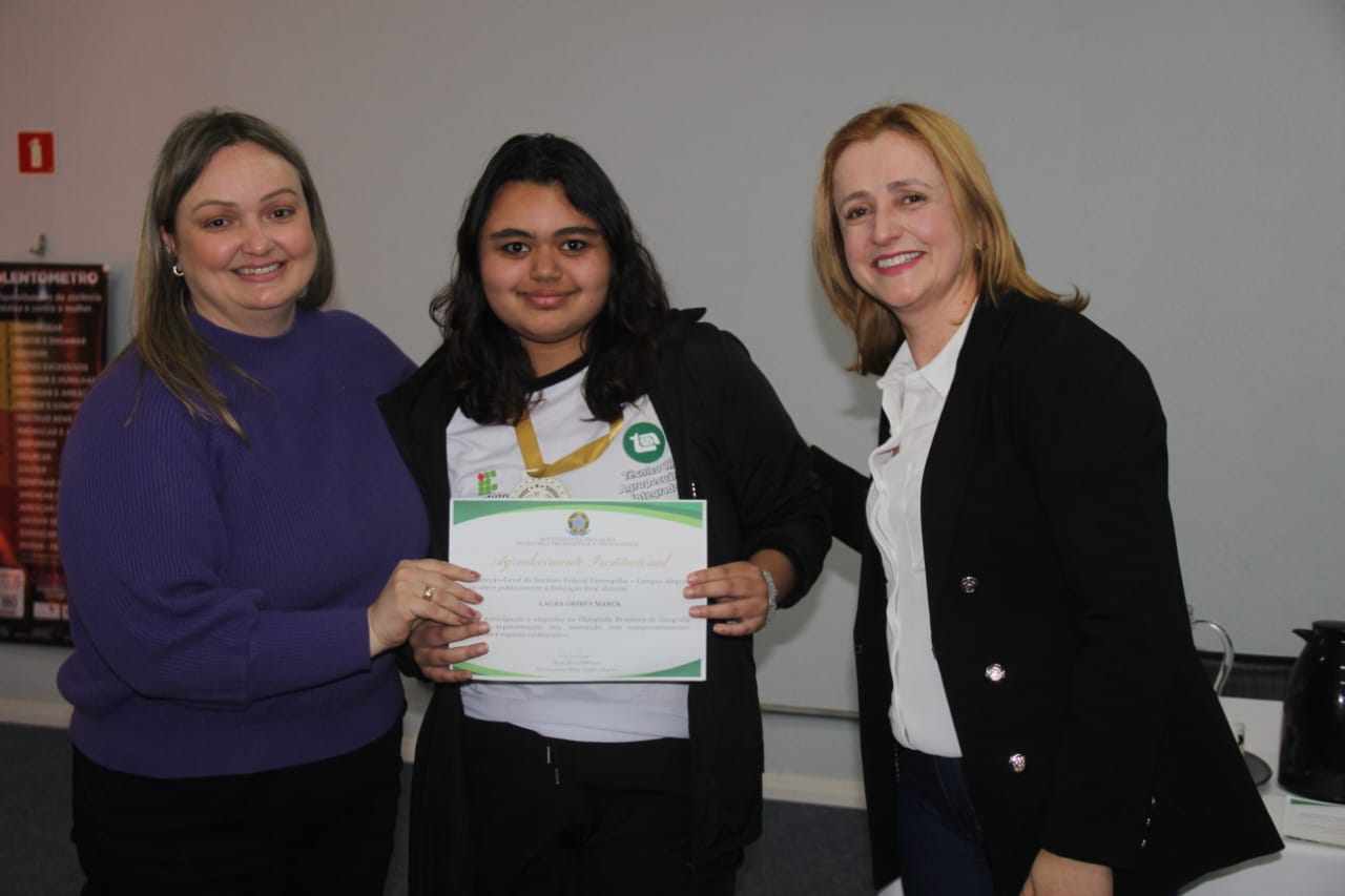 Entre as equipes premiadas, destaca-se a Geodisseia, formada por estudantes do curso Técnico em Química e orientada pela professora Suelen De Leal Rodrigues. O grupo se classificou entre os três melhores do Rio Grande do Sul e garantiu vaga na etapa nacional da OBG, que será realizada em Campinas-SP, de 25 a 29 de novembro.