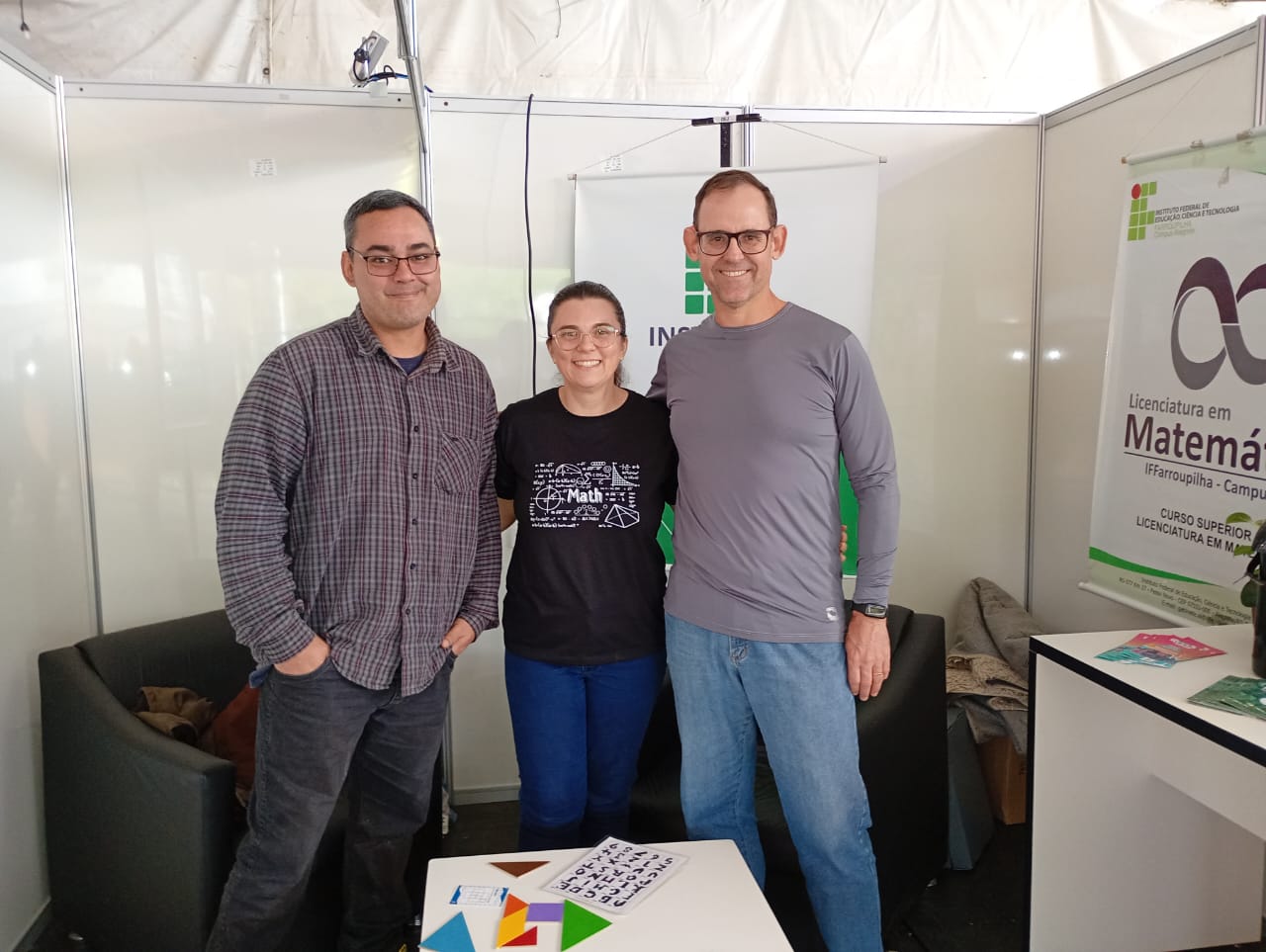 No sábado à tarde, acadêmicos da Licenciatura em Matemática também participaram da feira com atividades de divulgação do curso, apresentando suas experiências e dialogando com o público sobre a formação de professores na área.