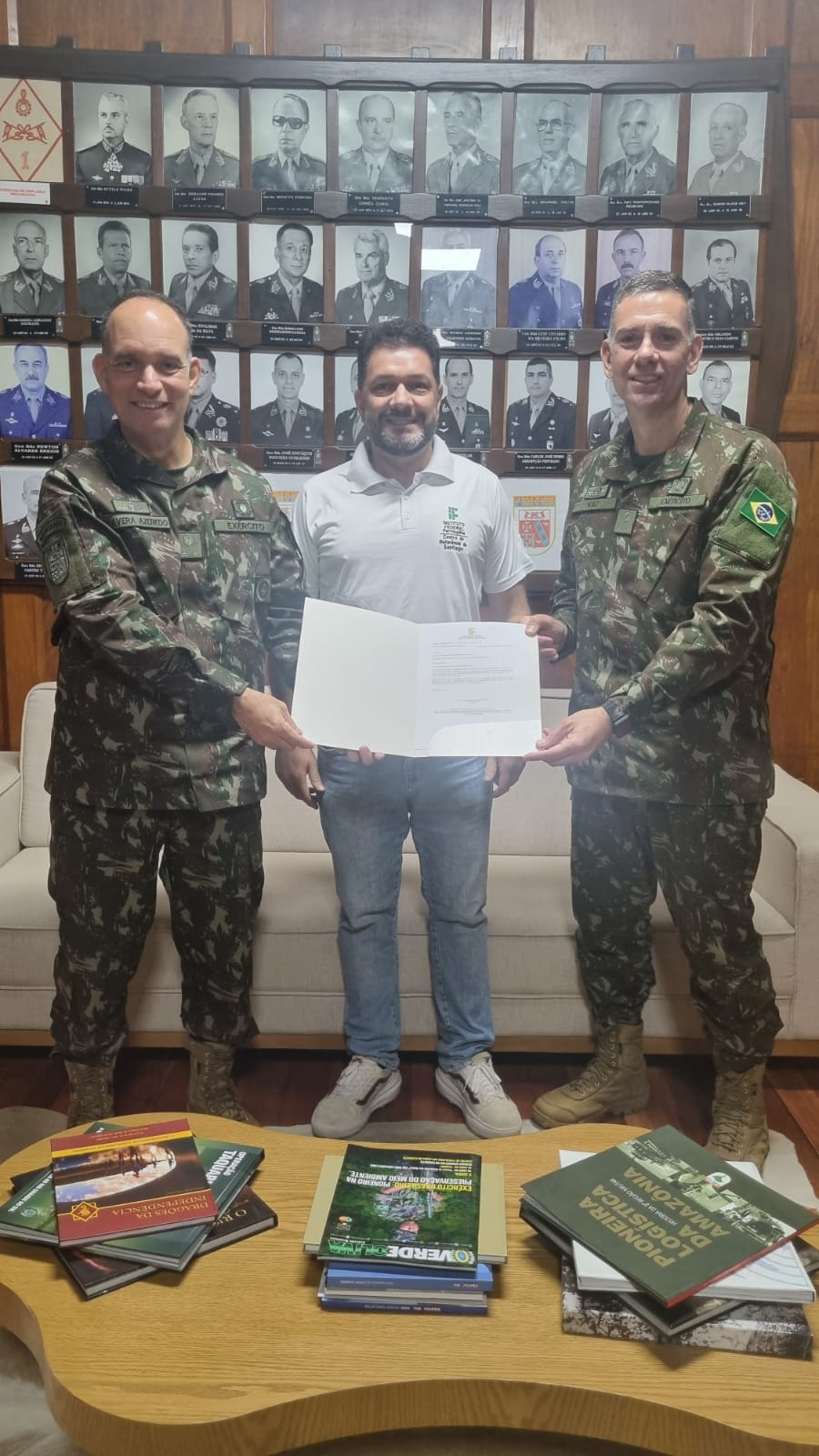 Professor Marco Malheiros representa o IFFar na entrega de Ofício de Congratulações aos generais Luiz Cláudio Talavera de Azeredo e Carlos Alberto Moutinho Vaz.