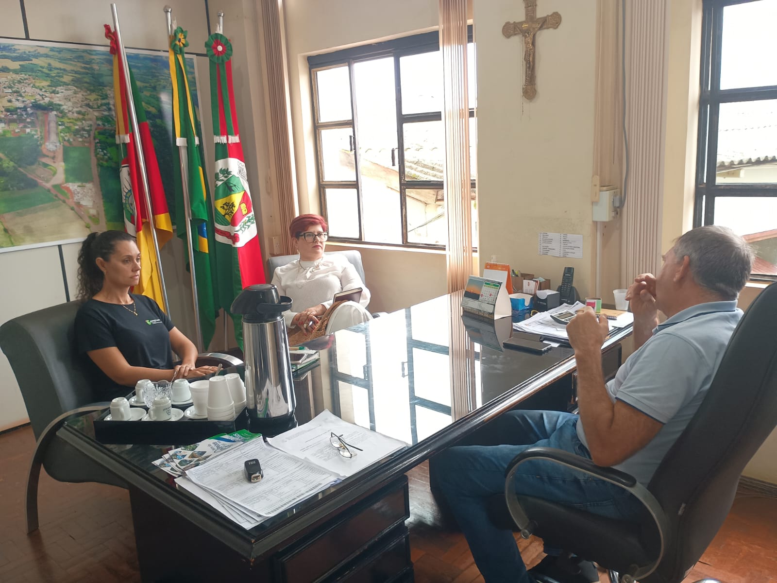 Na manhã desta terça-feira (01), a Diretora Geral do IFFar Campus Frederico Westphalen, Silvana Alves Pedrozo, e a Diretora de Planejamento e Desenvolvimento Institucional, Maíra Giovenardi, realizaram uma visita ao prefeito de Taquaruçu do Sul, Luiz Blanco Aves.