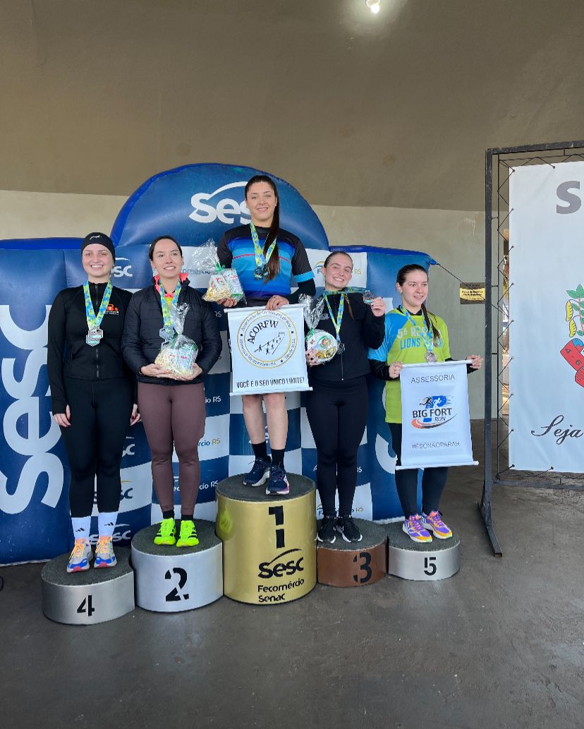 Já nos 5km, a liderança ficou por conta de Lauany Ulbriki Pozzobon, também do Técnico em Administração, que conquistou o 1º lugar na categoria até 25 anos. Completando a participação feminina, a atleta Tainara Turchetto obteve a 4ª colocação.
