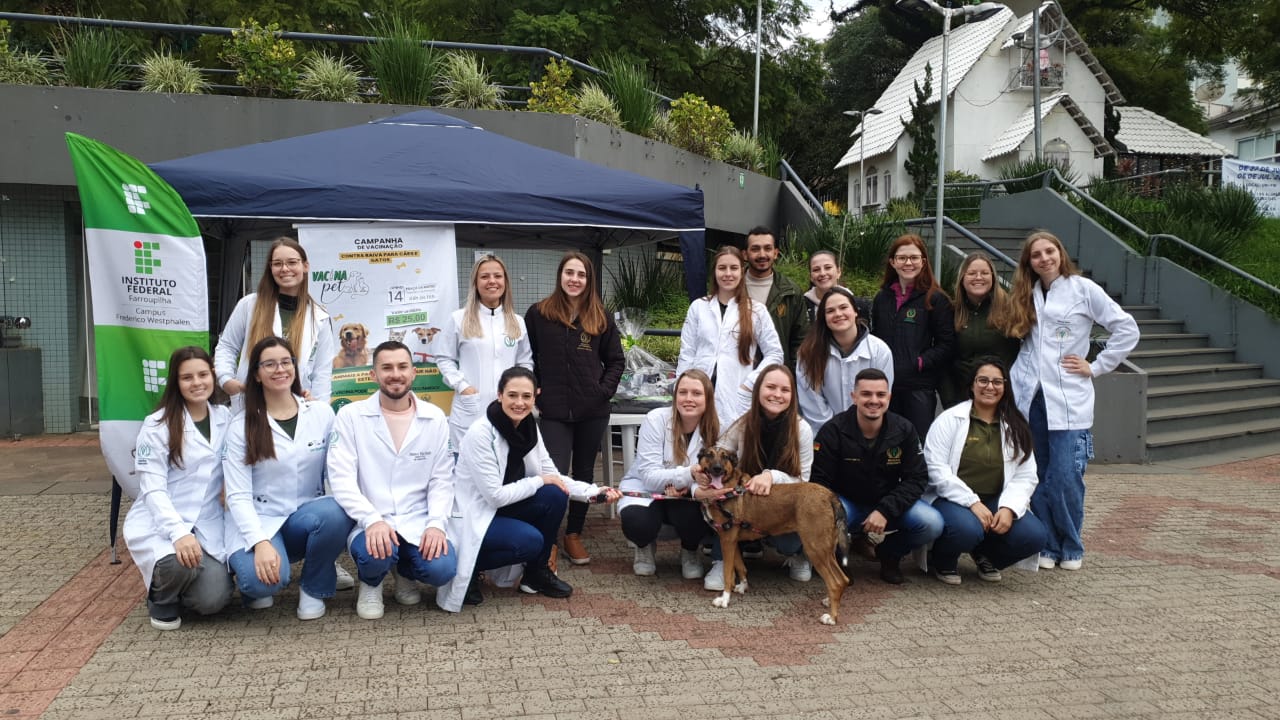 No sábado, 14 de junho, a quinta turma de Medicina Veterinária (ATMV-05) do IFFar Campus Frederico Westphalen realizou uma campanha de vacinação contra a raiva, voltada para cães e gatos, na Praça da Matriz. A ação teve como objetivo promover a saúde animal e conscientizar a comunidade sobre a importância da imunização.