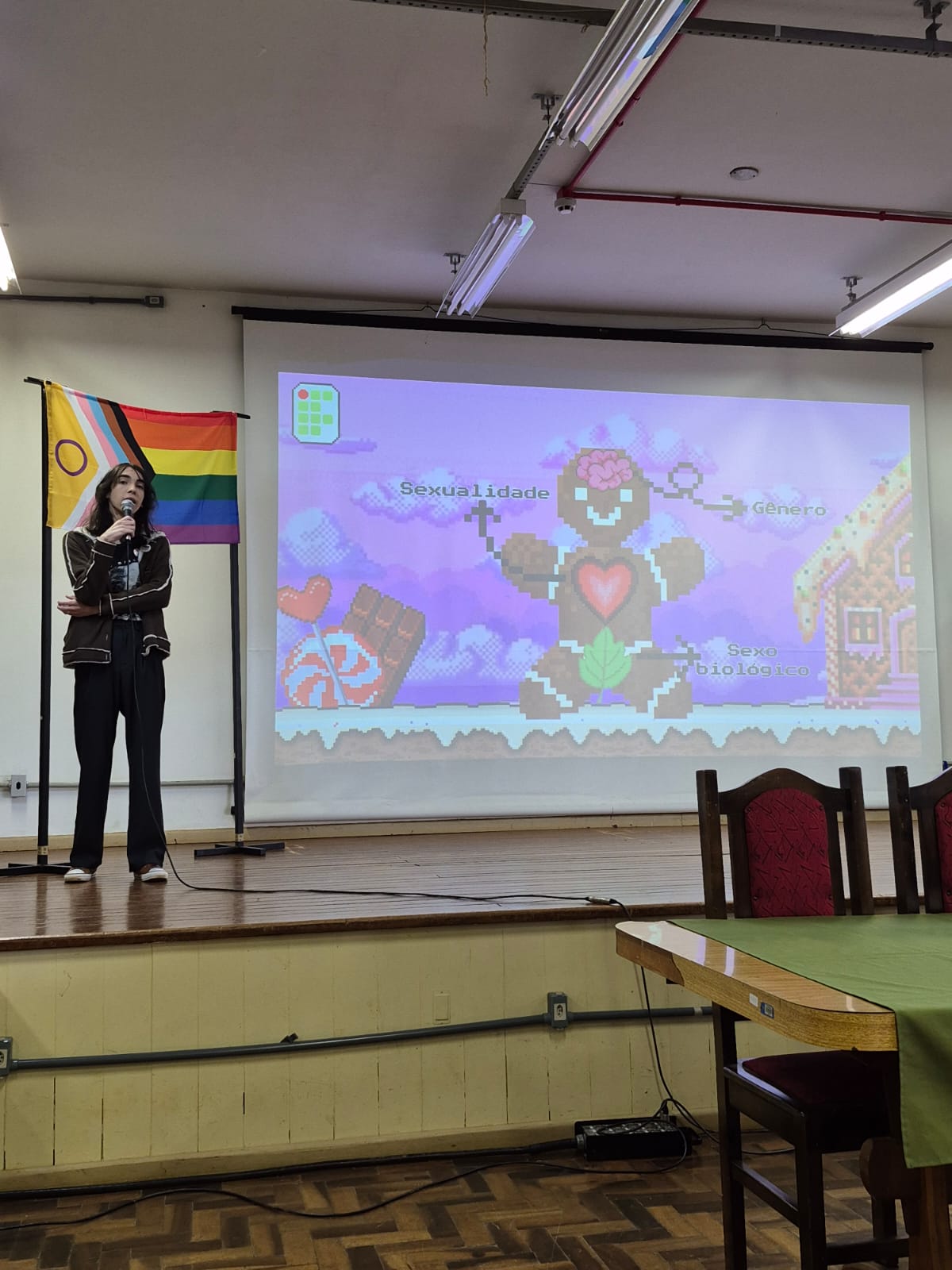 O encontro contou com a presença de Tainá Faligurski, representante da Associação da Diversidade de Frederico Westphalen, que compartilhou sua trajetória e falou sobre os desafios e avanços enfrentados pela comunidade LGBTQIAPN+ na região. A convidada reforçou a importância do apoio institucional e das políticas públicas voltadas à promoção de direitos e do respeito às diferentes identidades e expressões de gênero. Com falas potentes e acolhedoras, o evento reforçou o papel da escola como espaço de transformação social. A iniciativa do NUGEDIS evidencia o compromisso do campus FW com a equidade e a construção de uma educação mais inclusiva, na qual todas