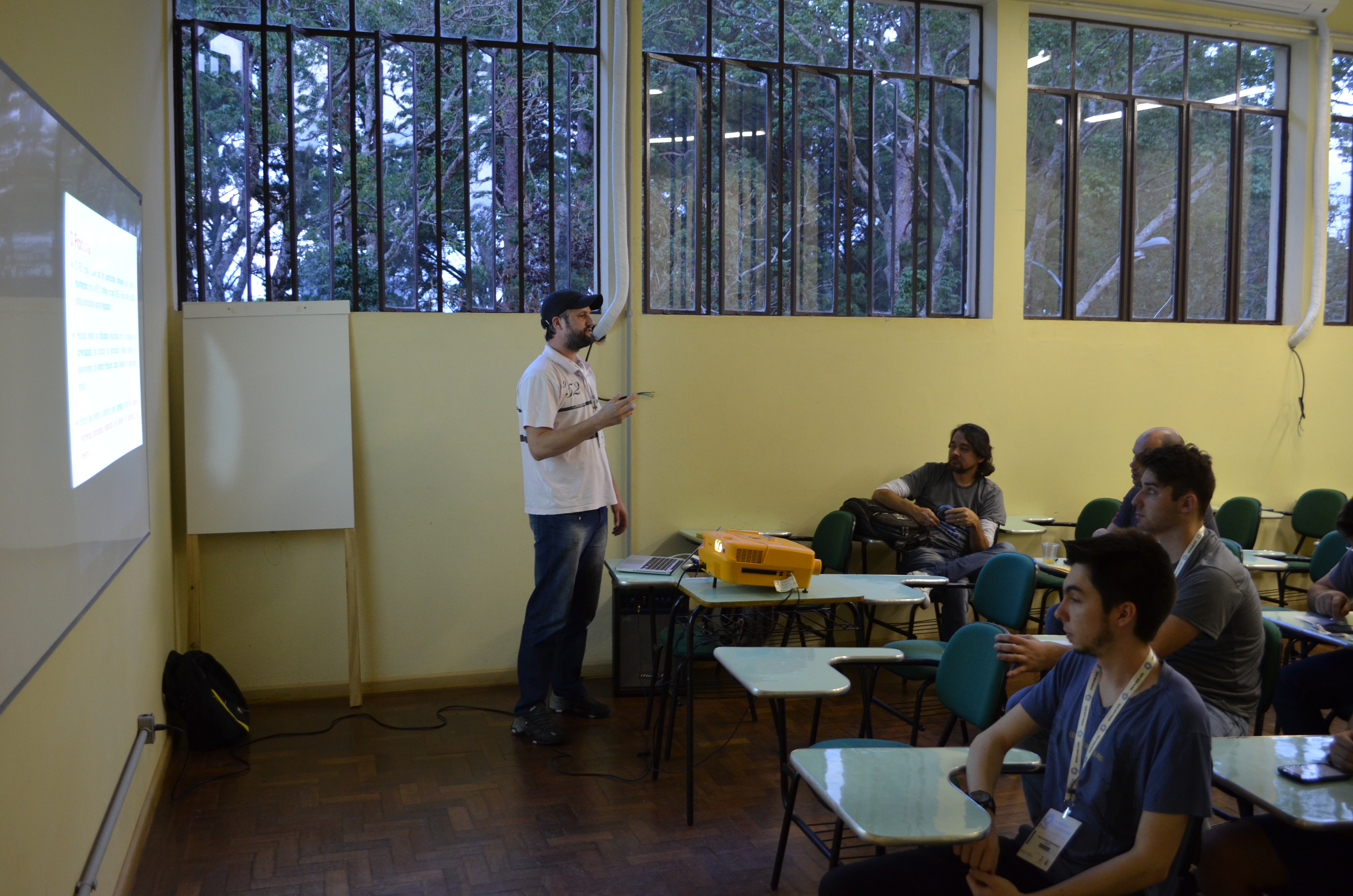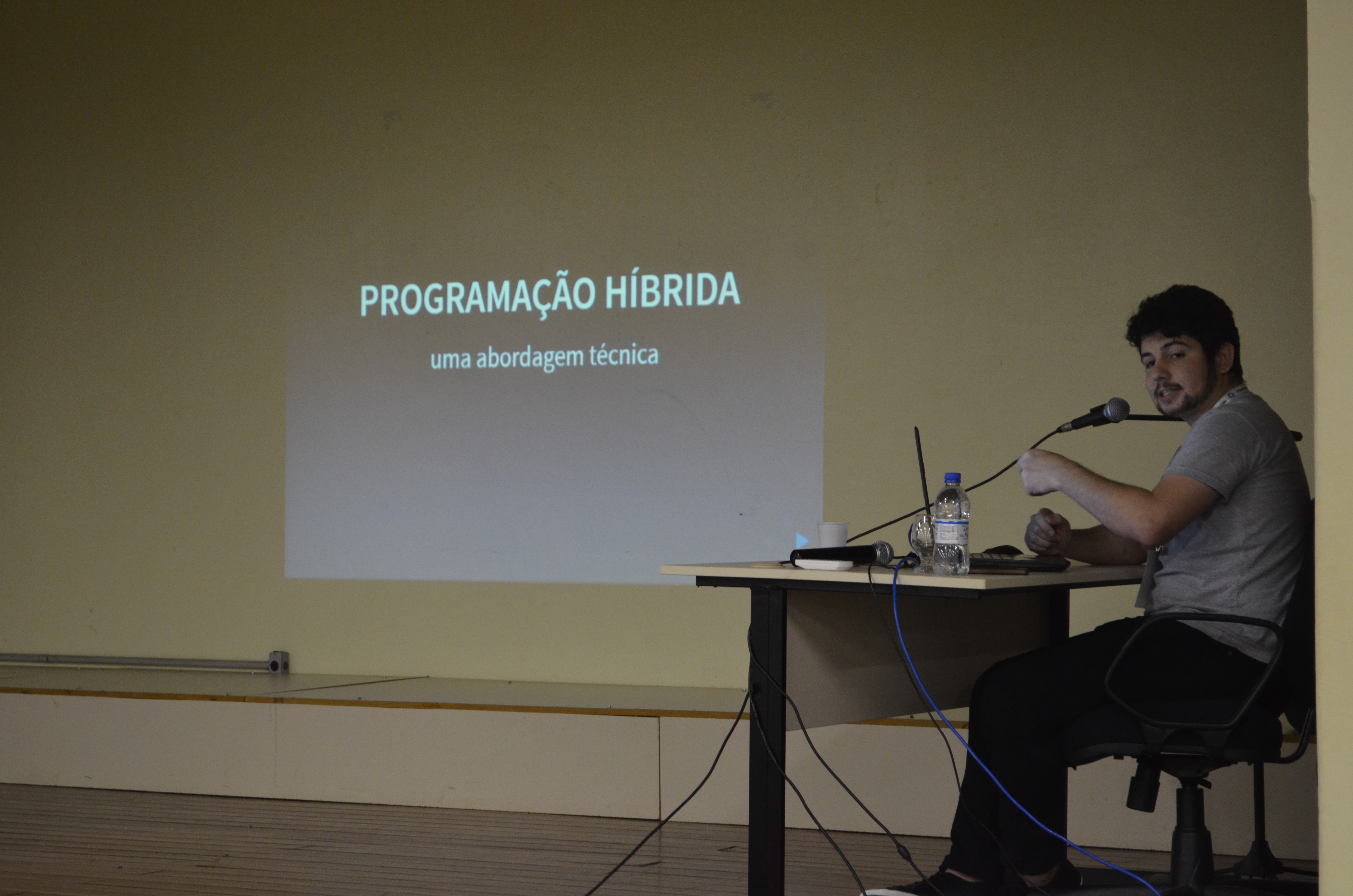 A palestra que movimentou a noite de terça-feira, 07, foi “Programação Híbrida” com o palestrante Frederico Guilherme Klüser de Oliveira, que falou sobre o desenvolvimento de aplicações para dispositivos móveis (smartphones e tablets em especial). Com uso de ferramentas que permitam ao desenvolvedor utilizar um único código para diferentes dispositivos: aparelhos Android, iPhone, Windows 10, etc. A chave para o desenvolvimento híbrido são as tecnologias web, como HTML, CSS e JavaScript.