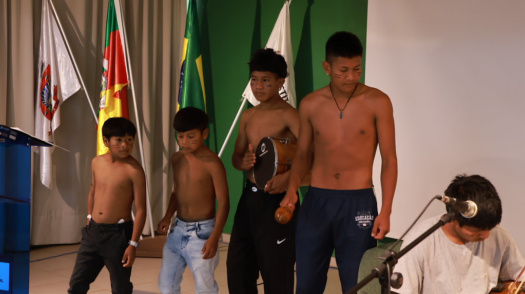 A abertura contou ainda com a apresentação do Coral Indígena Guarani da Aldeia Tekoá Pyau de Santo Ângelo, que trouxe ao público cantos tradicionais da cultura Guarani. A apresentação foi um dos momentos mais marcantes da manhã, pela força simbólica atribuída à espiritualidade e à relação com a natureza presentes no repertório.