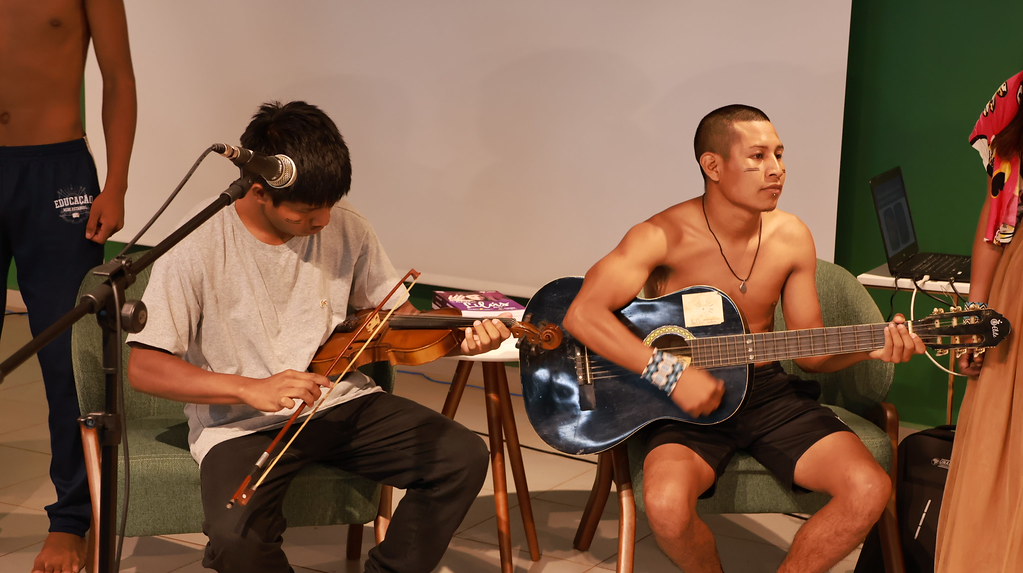 Encerrando a programação, a mesa dedicada às cosmovisões Guarani Mbya reuniu o professor e líder comunitário Anildo Romeu, da Aldeia Tekoá Pyau, e os artistas e intelectuais indígenas Ariel Kuaray Ortega e Patrícia Pará Yxapy, da Aldeia Tekoá Koenju de de São Miguel das Missõe. As lideranças destacaram a centralidade da oralidade na transmissão da história, refletiram sobre os desafios da autonomia territorial e denunciaram o silenciamento histórico que ainda marca a relação entre Estado, sociedade e povos indígenas. Também lembraram que todo o Rio Grande do Sul é território ancestral Guarani e que as comunidades enfrentam dificuldades para manter vivas suas práticas culturais diante da disputa por pequenos fragmentos desse espaço.
