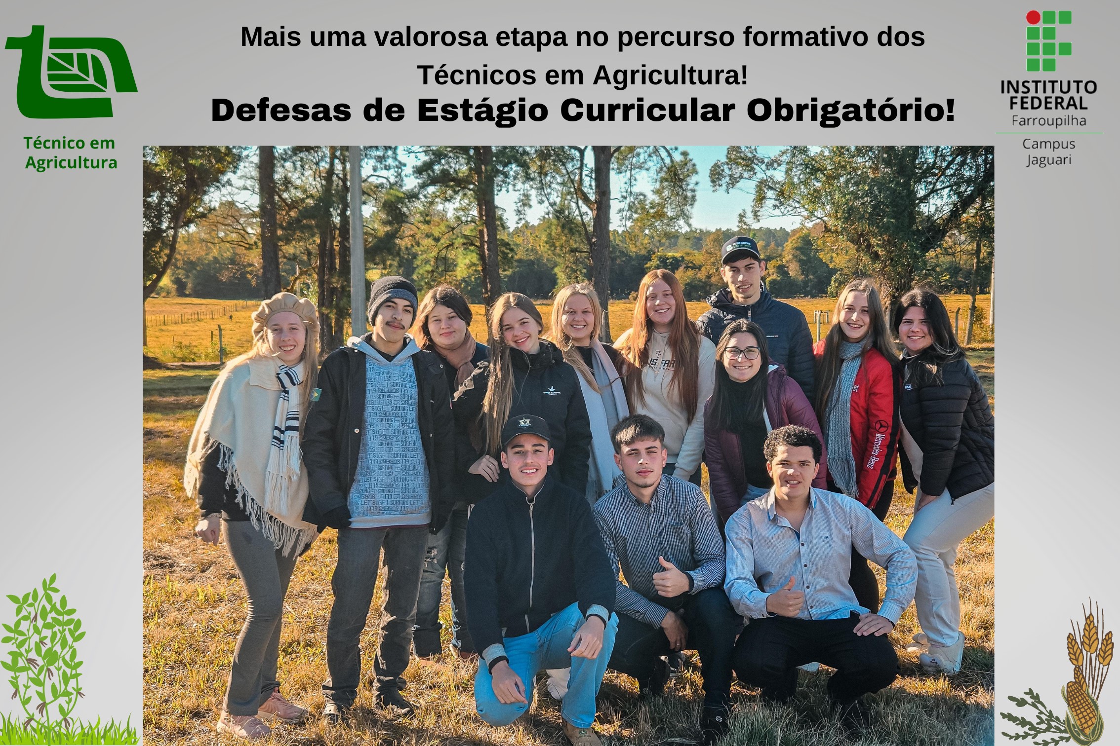Parabenizamos todos os estudantes pelo comprometimento demonstrado e agradecemos às instituições e propriedades parceiras que acolheram os estagiários, colaborando com a formação de profissionais éticos, qualificados e preparados para os desafios do mundo do trabalho no campo.