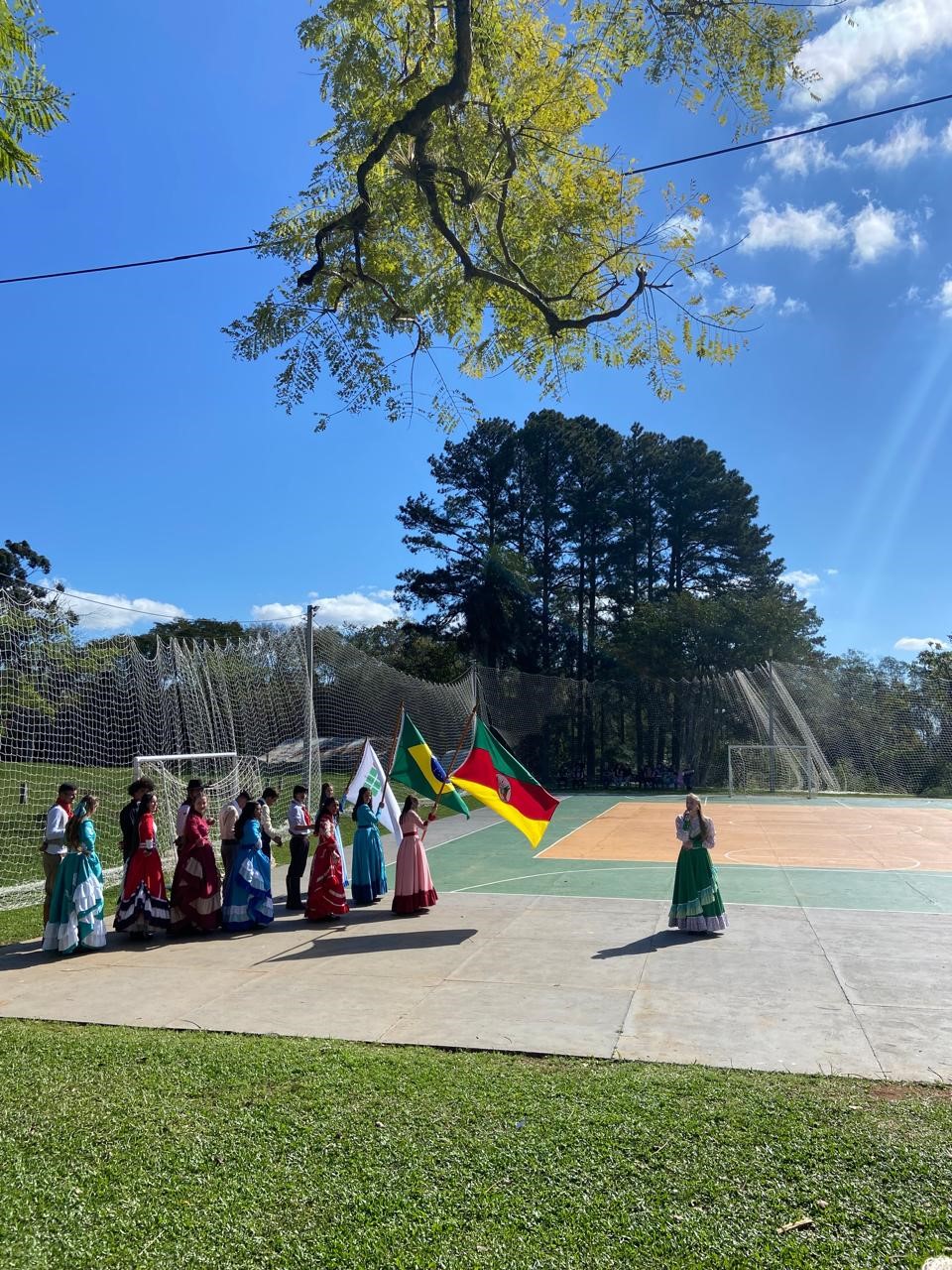 No dia 11 de setembro de 2025, o IF Farroupilha – Campus Jaguari celebrou a 2ª edição da Mateada Farroupilha e a X Mostra Cultural Interna do Campus Jaguari, evento organizado por uma comissão composta por servidores e estudantes. A iniciativa visou fortalecer os laços entre a comunidade acadêmica e promover a cultura e a arte, com apresentações artísticas, música e convivência. A Mostra Cultural Interna foi um dos destaques da tarde, com a participação de mais de 60 estudantes que se apresentaram em diversas modalidades artísticas, incluindo dança, música, poesia, fotografia e exposições. O evento também contou com a colaboração do Núcleo de Arte e Cultura, além da participação especial da Banda e da Invernada Artística do IFFAR Campus São Vicente do Sul, que enriqueceram a programação com suas apresentações culturais. A Mateada Farroupilha faz parte do Projeto de Ensino Roda de Saúde e Qualidade de Vida da Assistência Estudantil, e teve como objetivo proporcionar um ambiente de integração, cuidado e lazer. Durante a tarde, os participantes puderam desfrutar de uma boa roda de chimarrão com a erva-mate Santiago, acompanhada de salgados e doces preparados pelos próprios estudantes. A oficina de chimarrão com a competição do melhor mate também marcou o evento, que foi finalizado, ainda, com o futebol de bombacha. A ação foi uma verdadeira celebração da cultura, de partilha das diversas manifestações culturais, dos talentos estudantis e do espírito de comunidade.