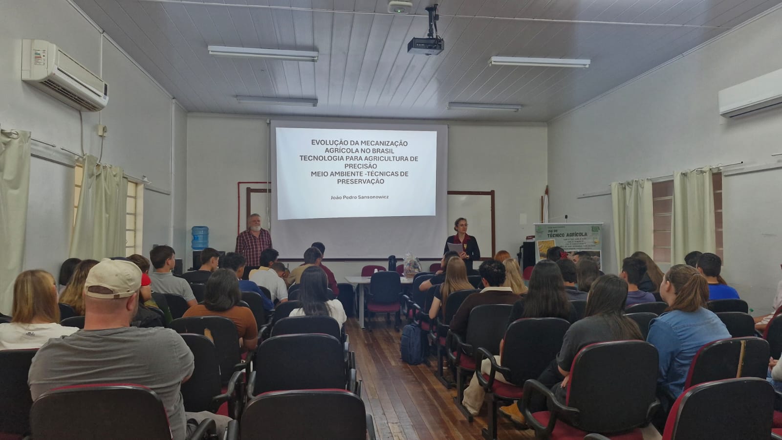 A turma do 3º ano do curso Técnico em Agricultura Integrado do IFFar Campus Jaguari concretizou, na data de 05/11/2025, a sua Prática Profissional Integrada (PPI). A ação consistiu em promover um Dia de Campo voltado para a comunidade acadêmica do IFFar campus Jaguari, com uma programação que envolveu palestras e visitas a unidades demonstrativas com cultivos agrícolas, fontes de energia renovável, defensivos agrícolas convencionais e biológicos. O evento foi promovido em comemoração ao Dia do Técnico Agrícola, organizado e conduzido pelos estudantes da turma do 3º ano, coordenação do curso, professores e demais servidores envolvidos.