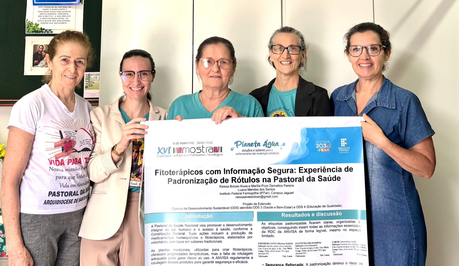 O trabalho intitulado: Fitoterápicos com Informação Segura: Experiência de Padronização de Rótulos na Pastoral da Saúde, também foi selecionado para a MEPT – Mostra de Educação Profissional e Tecnológica, ocorrida no Campus Santa Rosa em novembro.