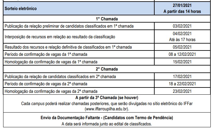 CRONOGRAMA DO PROCESSO SELETIVO 2021- CURSOS TÉCNICOS INTEGRADOS AO ENSINO MÉDIO