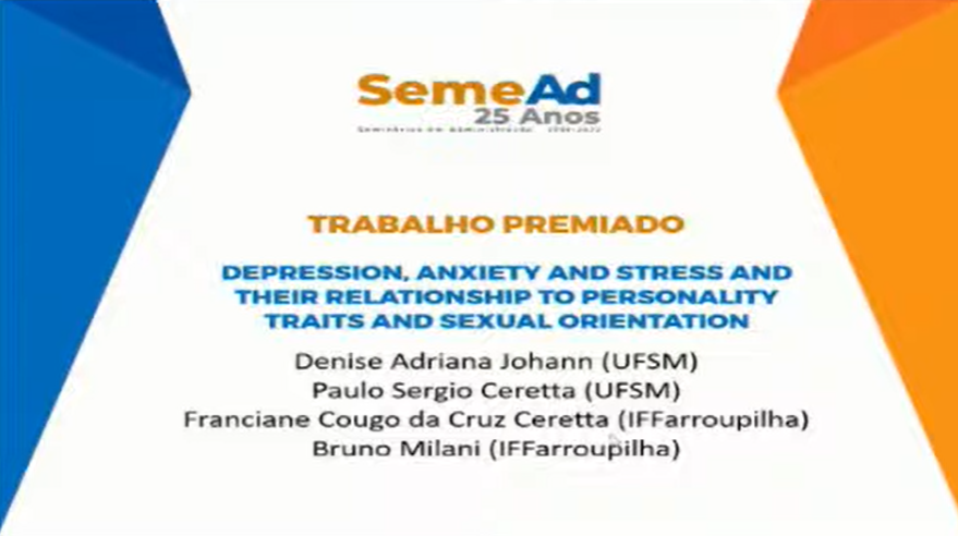 No dia 10/11/2022 foi apresentado no XXV SEMEAD o estudo científico intitulado como "Depression, Anxiety and Stress and their relationship to Personality Traits and Sexual Orientation". A pesquisa foi premiada na área de Gestão de Pessoas, concorrendo com mais cem trabalhos.