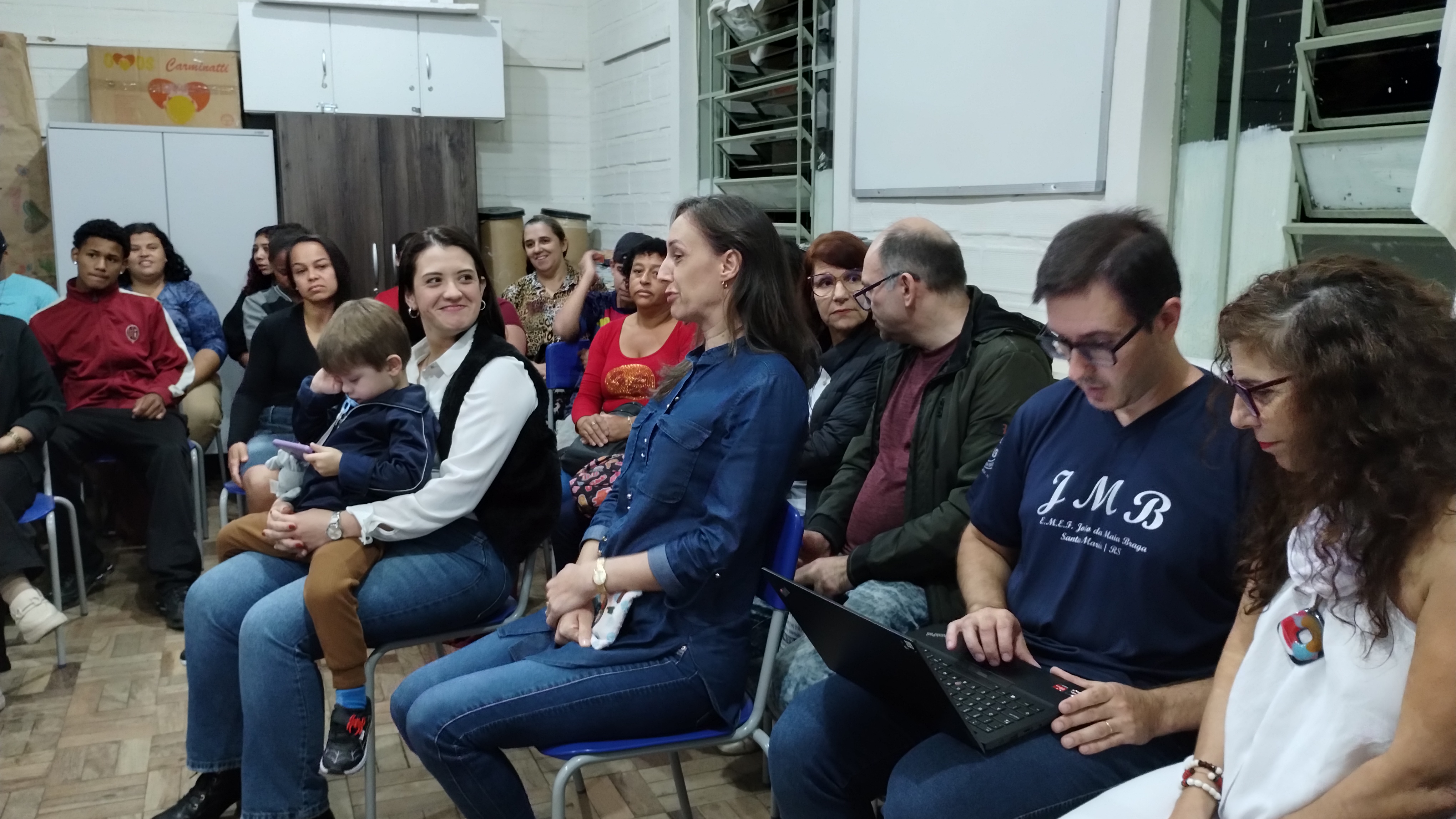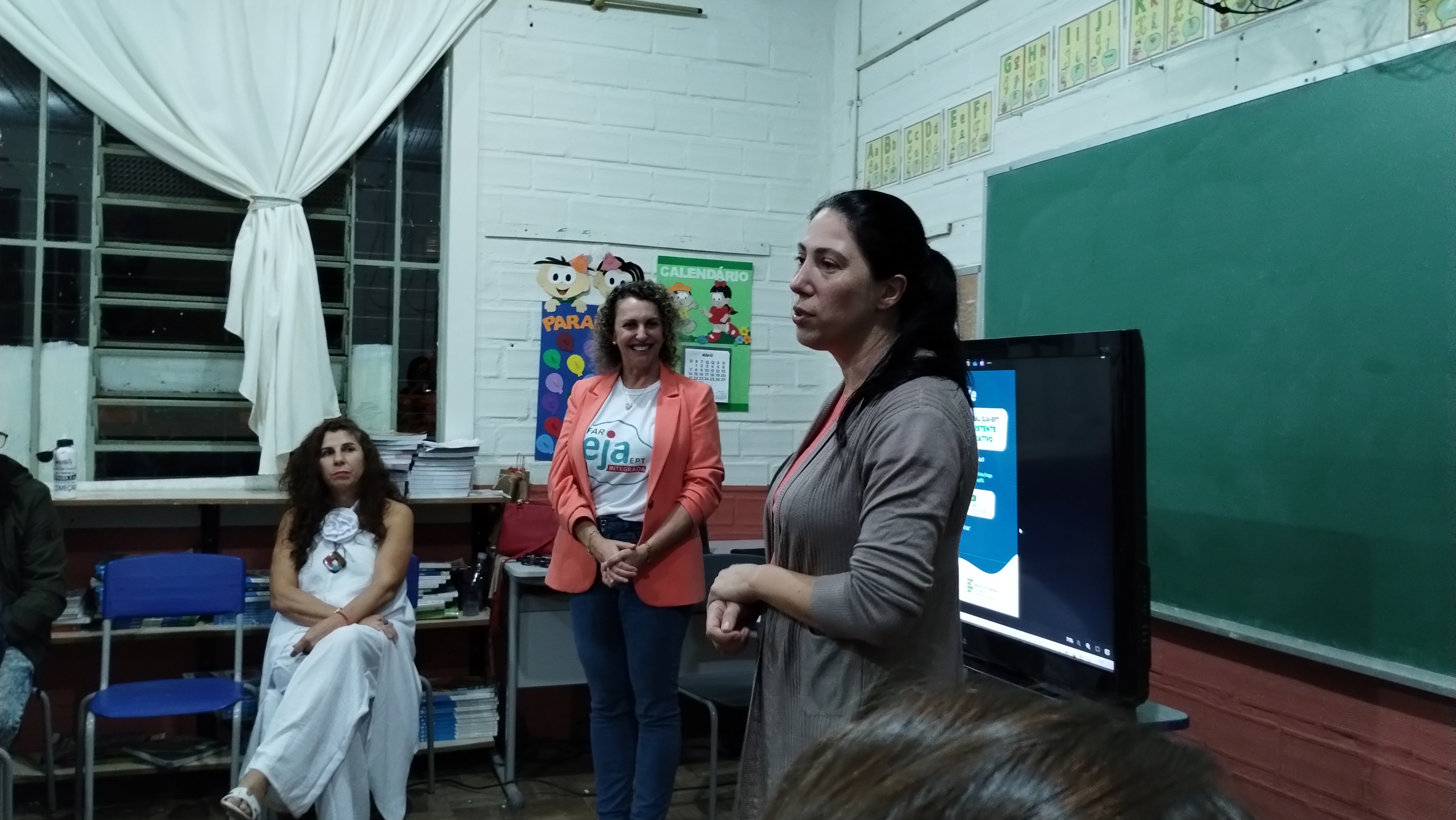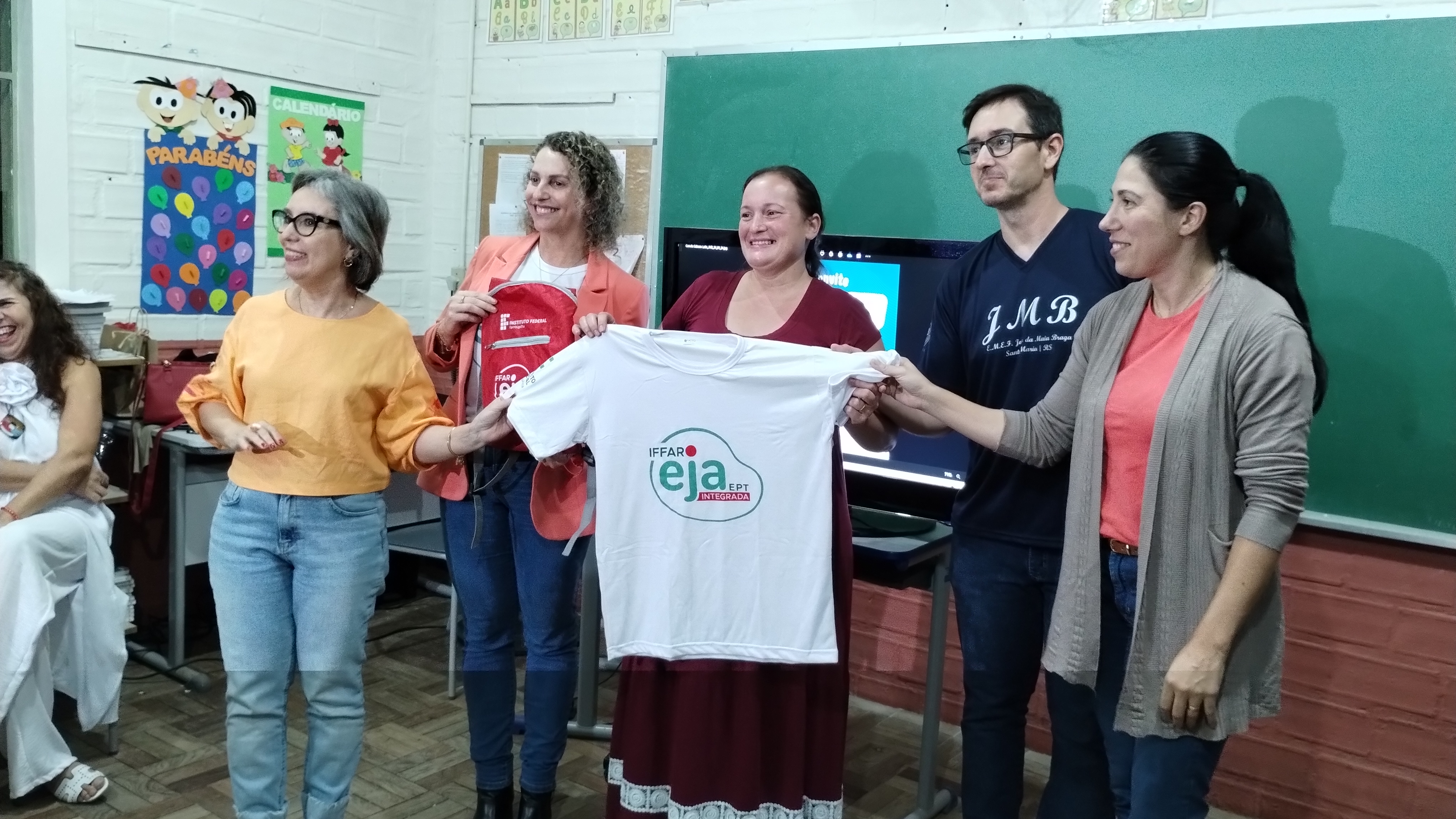 Cristina lembrou que a EJA já existe há bastante tempo, mas nesse formato era um sonho, que demorou a sair do papel. Mas agora é uma realidade, em 2023 formamos 99 estudantes e recebemos feedbacks de alunos/as que foram promovidos/as ou arrumaram um emprego ou empreenderam. “São muitas pessoas aqui na escola, na prefeitura e no IFFar trabalhando por cada um de vocês, para que se qualifiquem” disse a professora que fechou falando que a escola João da Maia Braga é destaque, pois tem uma aluna que representa a EJA do município no fórum estadual da EJA e vai para um encontro nacional, representando o estado: Eliliane.