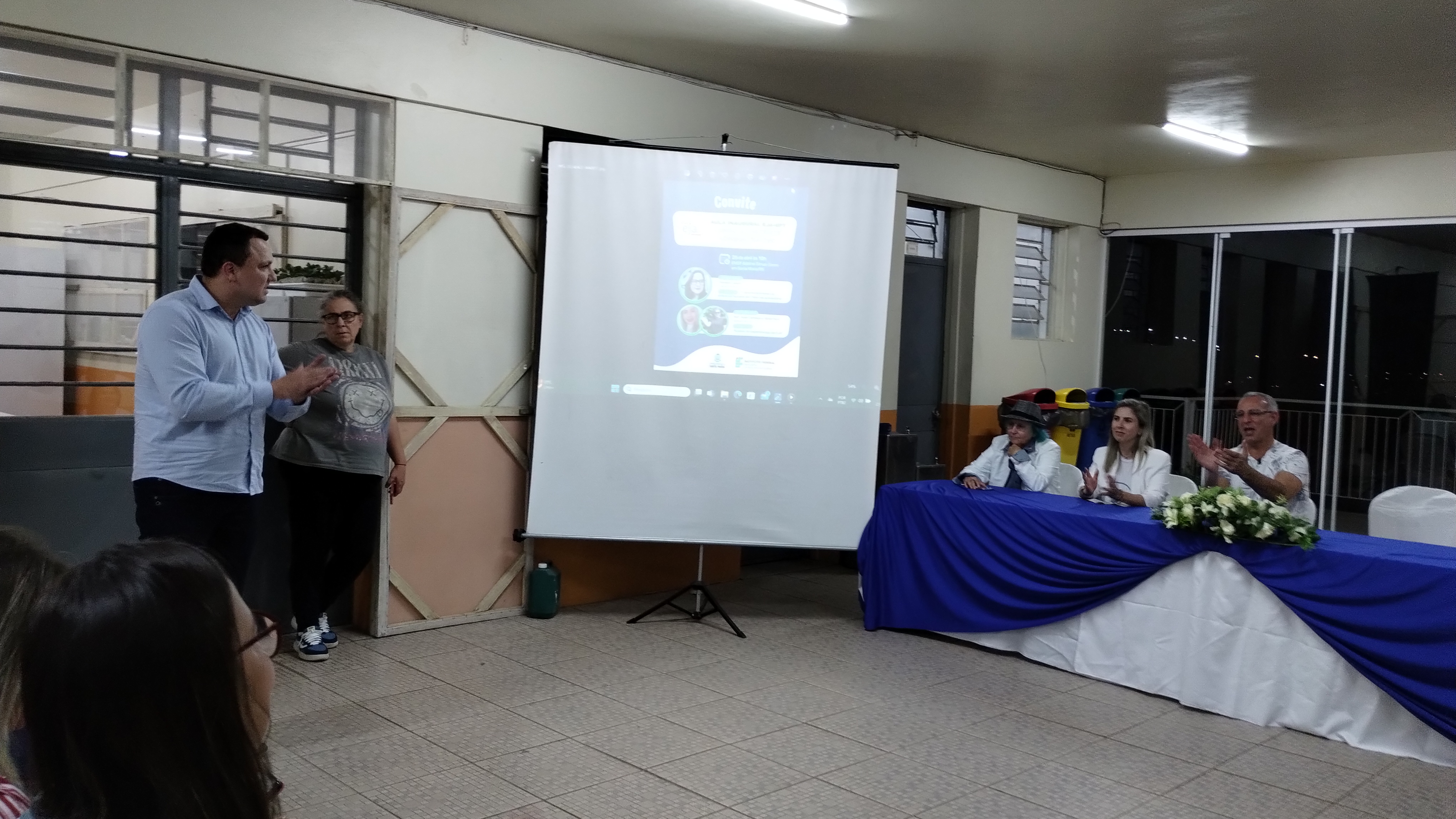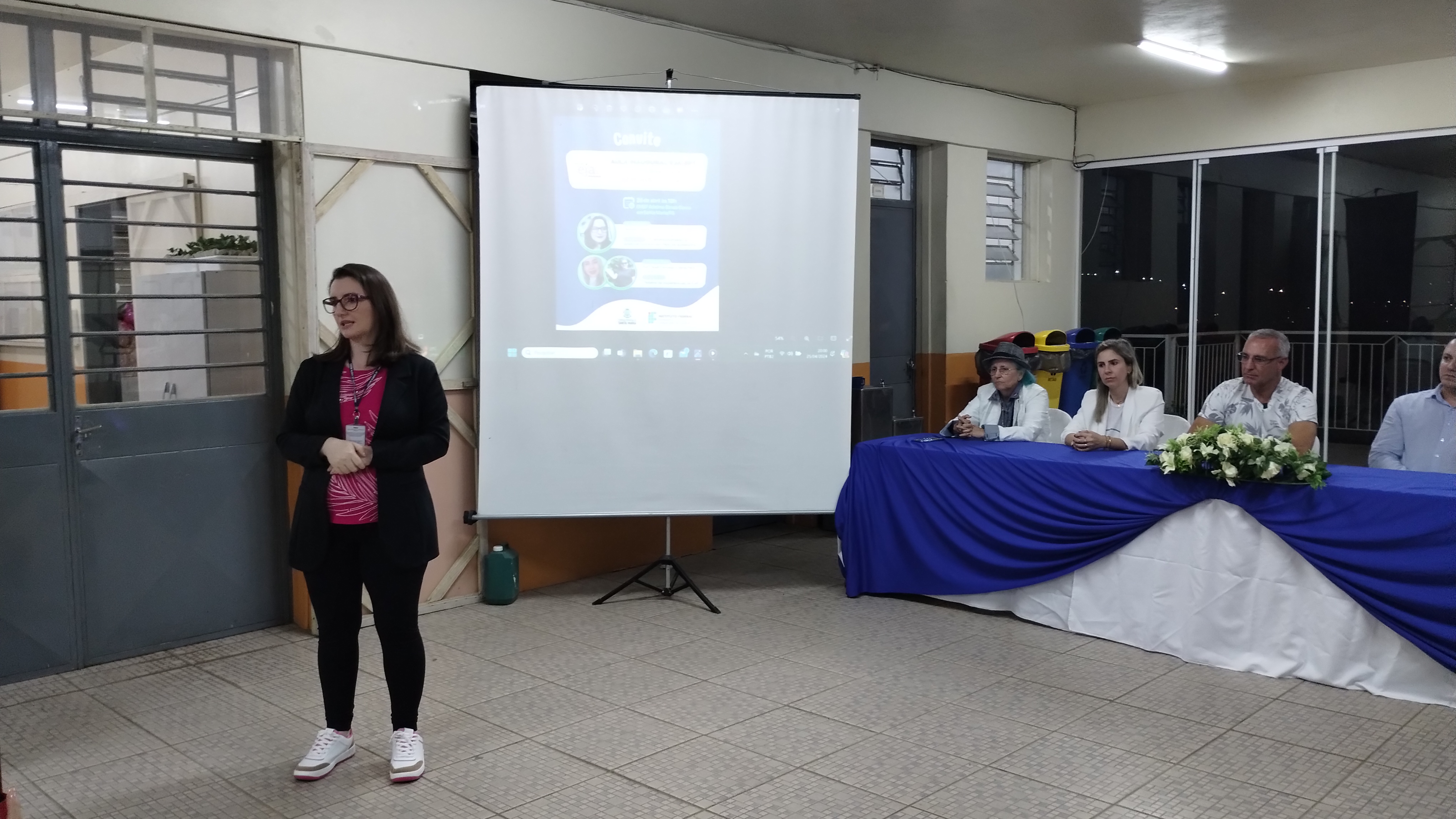 Na noite da quarta-feira (25/04) aconteceu a aula inaugural “O desenvolvimento do potencial humano por meio da autoestima”, com Cleonice Casarin” e “Relatos da EJA”, com Vânia Fleck e Noeli Camargo. Estiveram presentes o prefeito de Santa Maria, Jorge Pozzobom, a coordenadora da EJA da Secretaria de Educação, professora Deise Facco, a vereadora Luci Duarte “tia da moto”, a coordenadora da EJA no IFFar, Cleia Tonin, o diretor geral do campus Júlio de Castilhos, Rodrigo Carvalho Carlotto e a diretora da escola Adelmo Simas Genro, Bruna Zorzi da Costa.