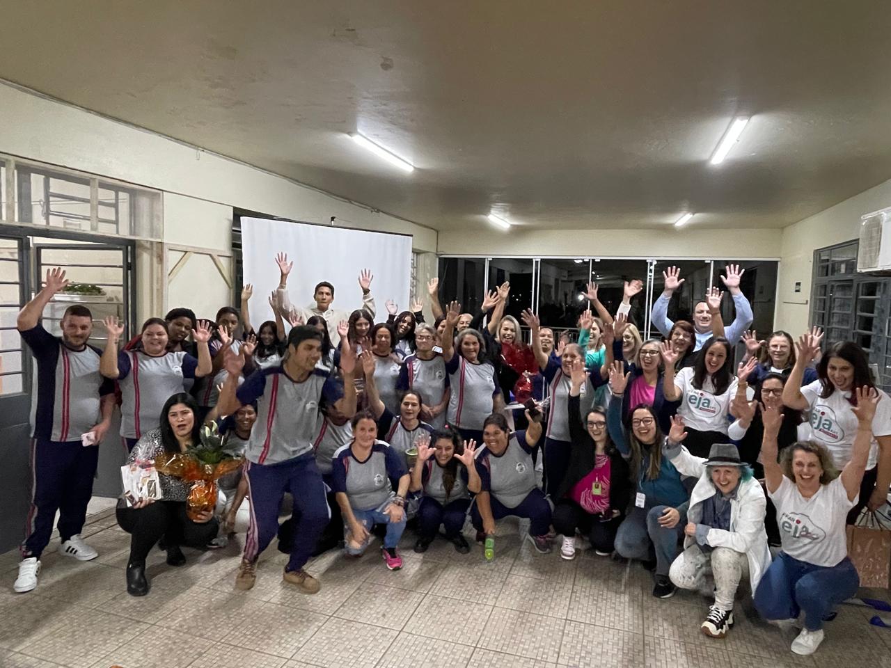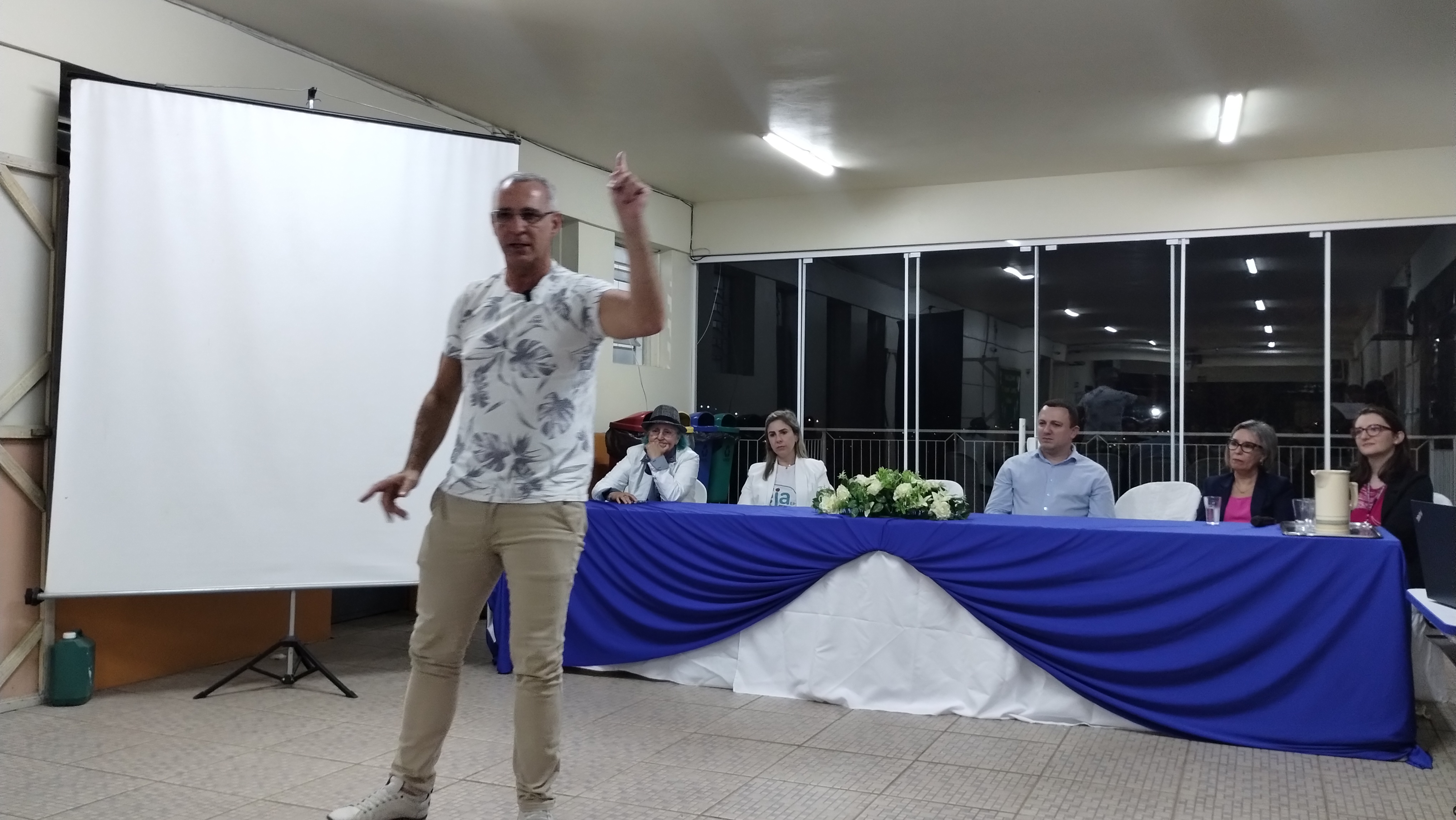 Deise enunciou que era uma satisfação imensa estar na escola, pois foi professora desta escola antes de ir trabalhar na secretaria. Após se dirigiu diretamente aos/as alunos/as: turma 4 vejo vocês em dezembro deste ano na formatura; turma 3 vejo vocês ano que vem e turma da alfabetização, espero que entrem no técnico e logo, logo, também terminarão. “O tempo passa rápido, enfrentem o desafio porque vale a pena!” finalizou. A vereadora Luci relembrou que sempre quis fazer um projeto no noturno e agradeceu a Bruna e Fernanda, da escola, por terem aceito o desafio. “Sonho que se sonha sozinho é apenas um sonho, mas um sonho que se sonha em coletivo, se transforma em realidade!” disse a vereadora.