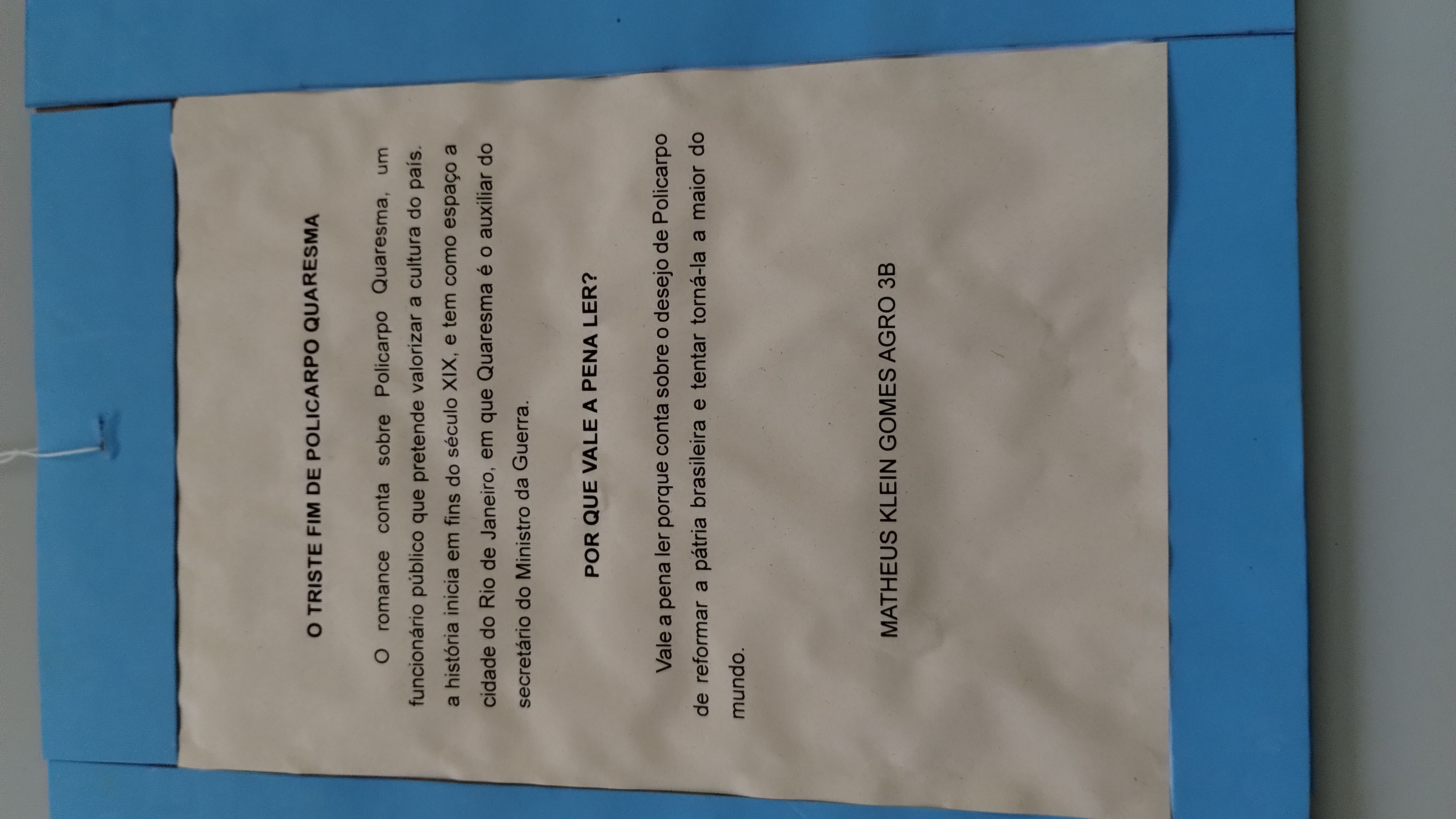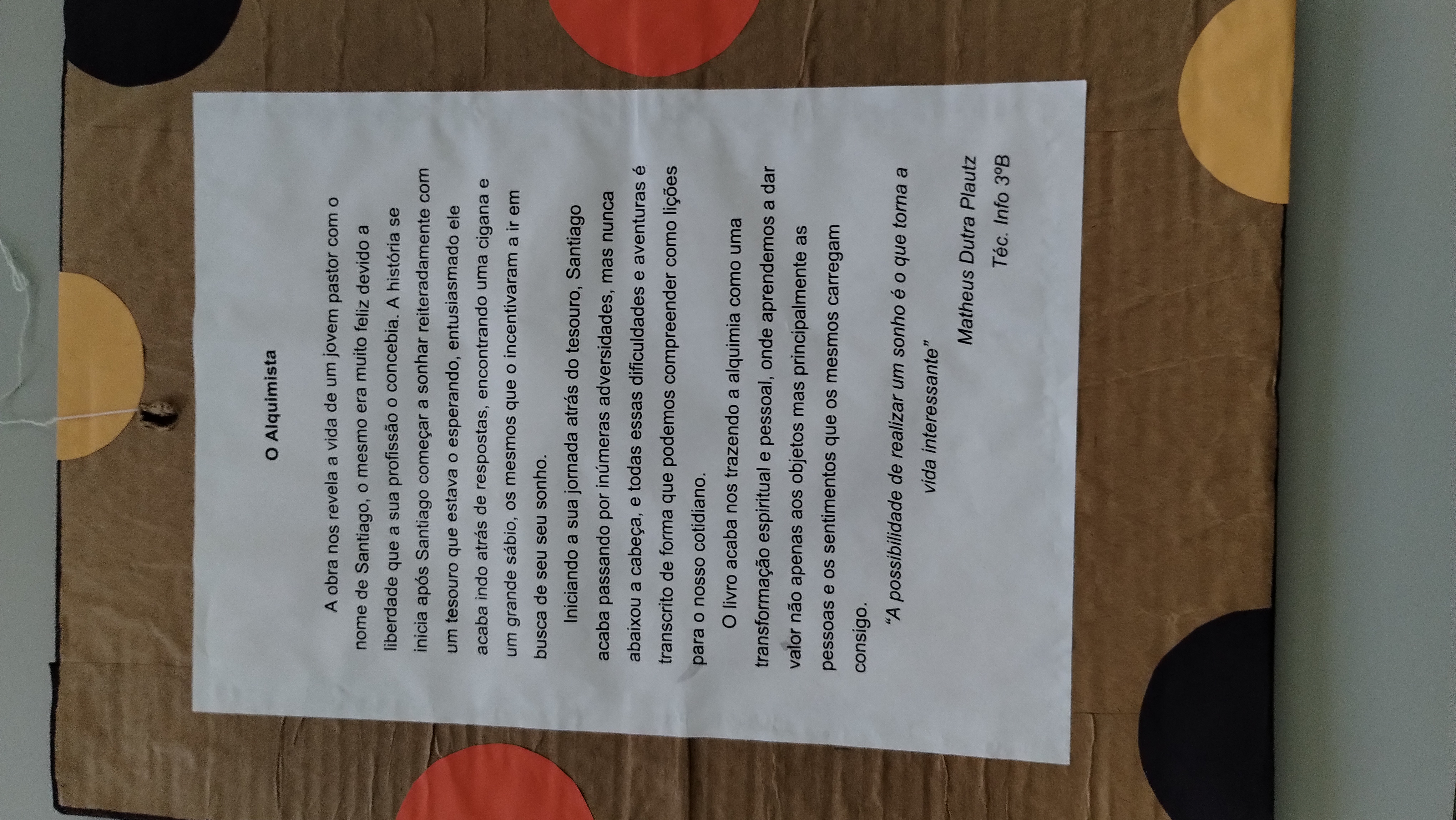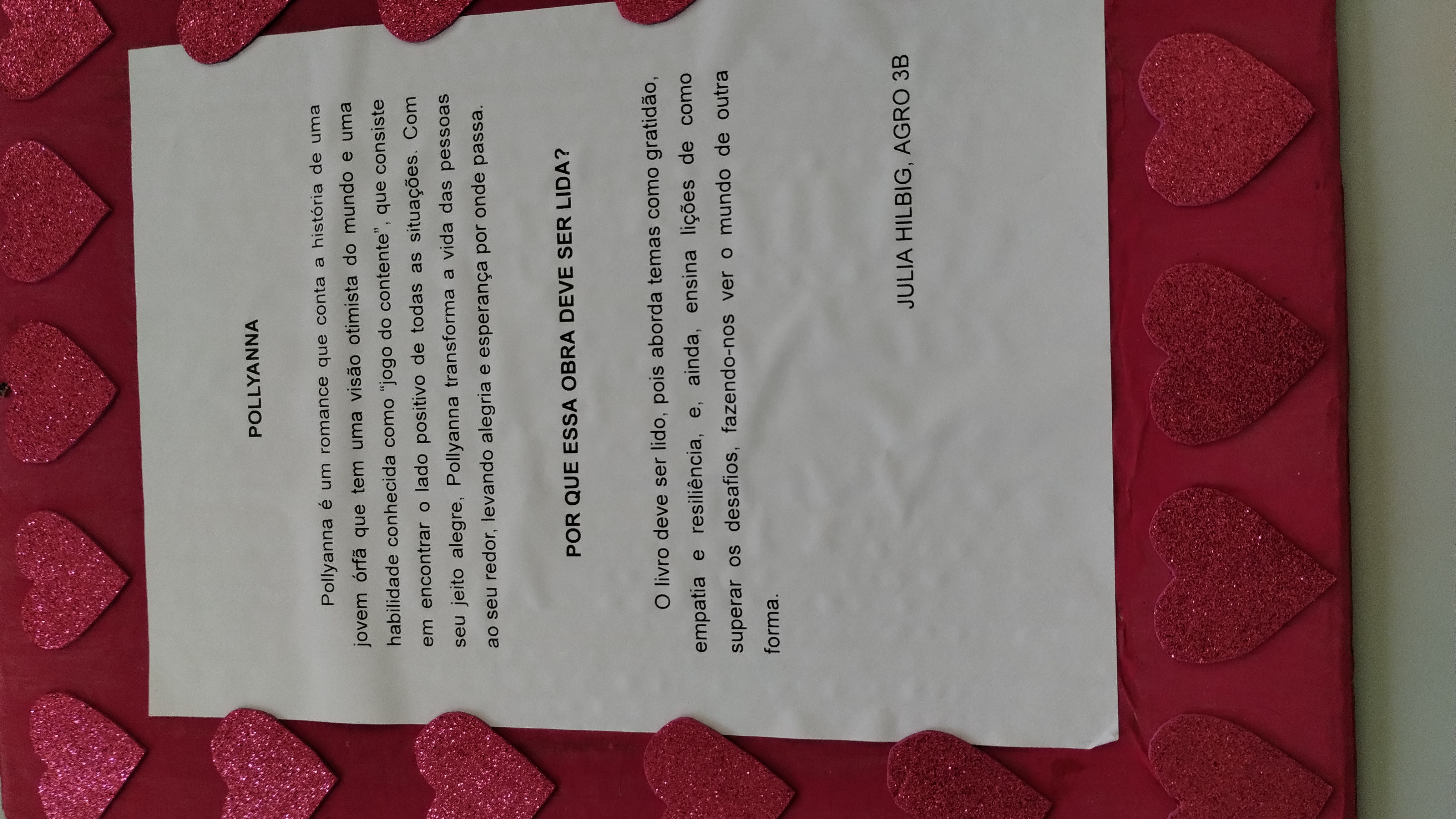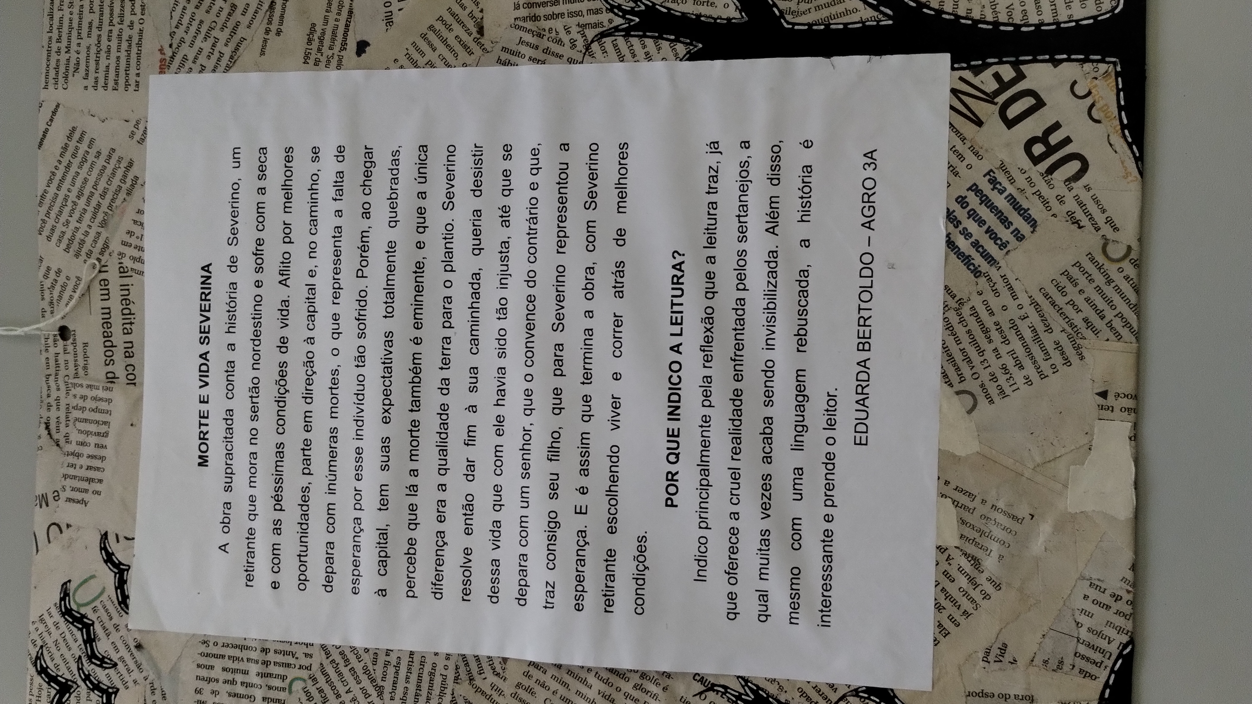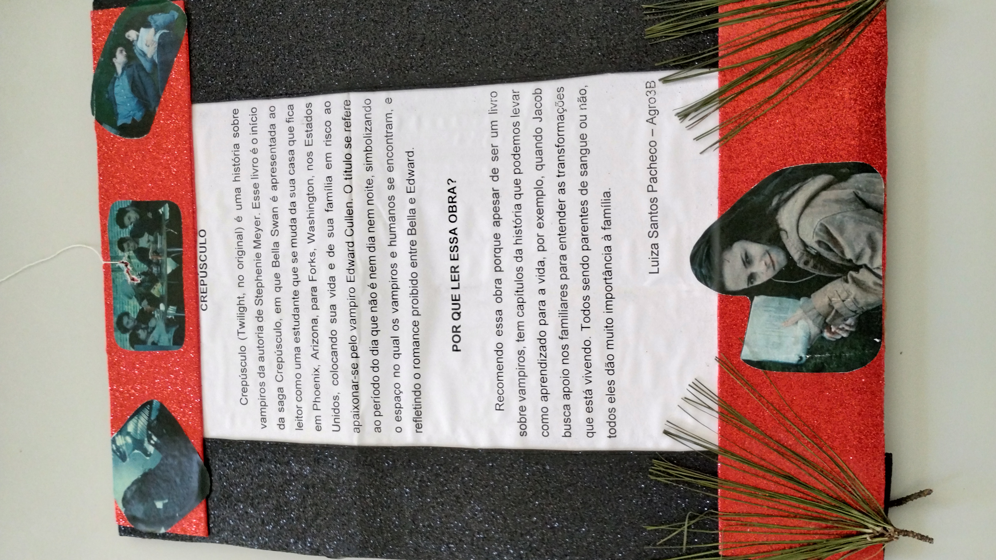 Nas aulas da última semana de junho durante as aulas da professora Sandra Oliveira, os/as estudantes da Informática apresentaram obras lidas por eles/as e fizeram pequenos "banners", com um resumo sobre o tema do livro e porque os/as outros/as também devem ler. Já os/as estudantes da Agropecuária apresentaram seus livros no mês de julho e também produziram “banners”.