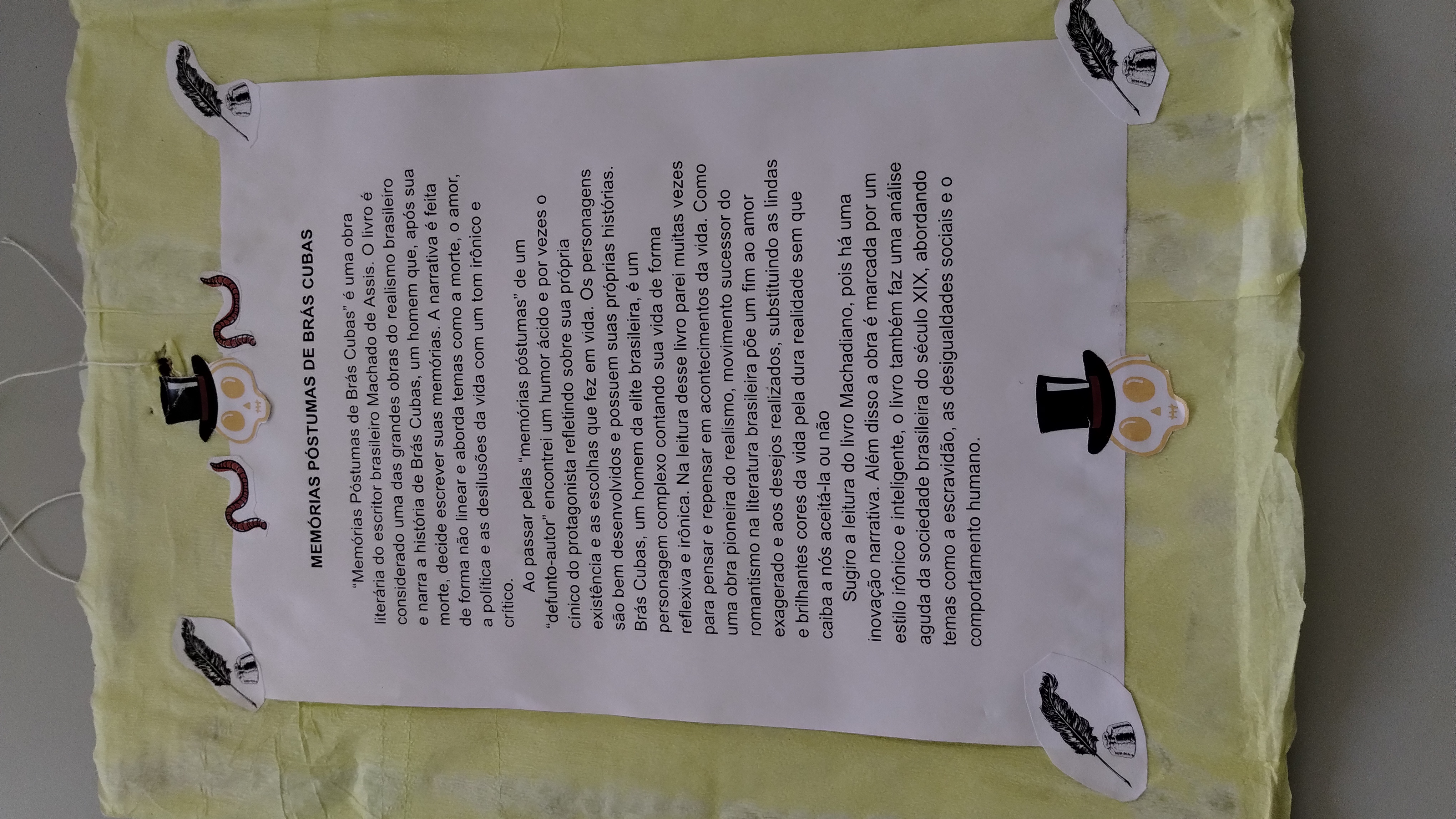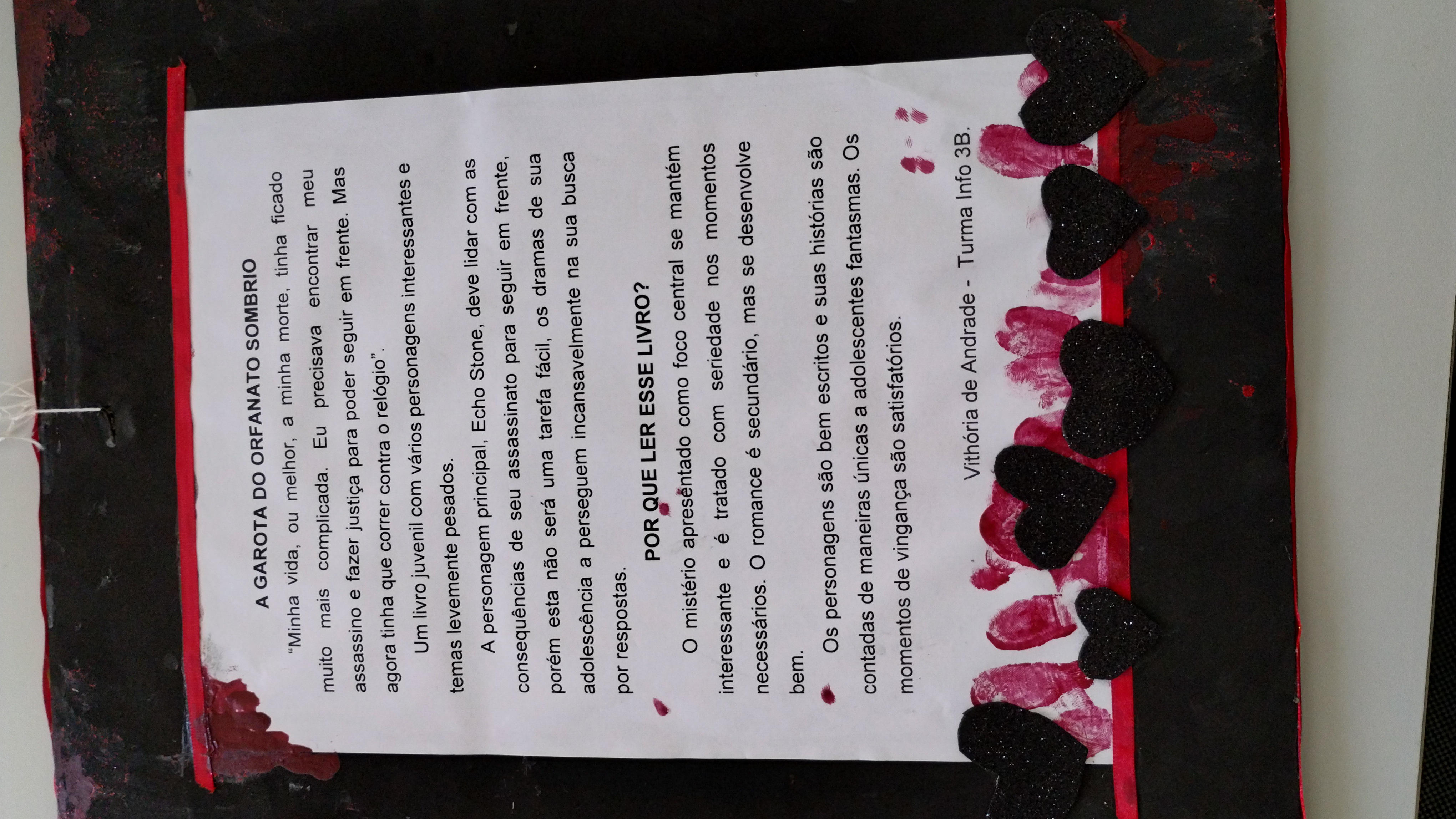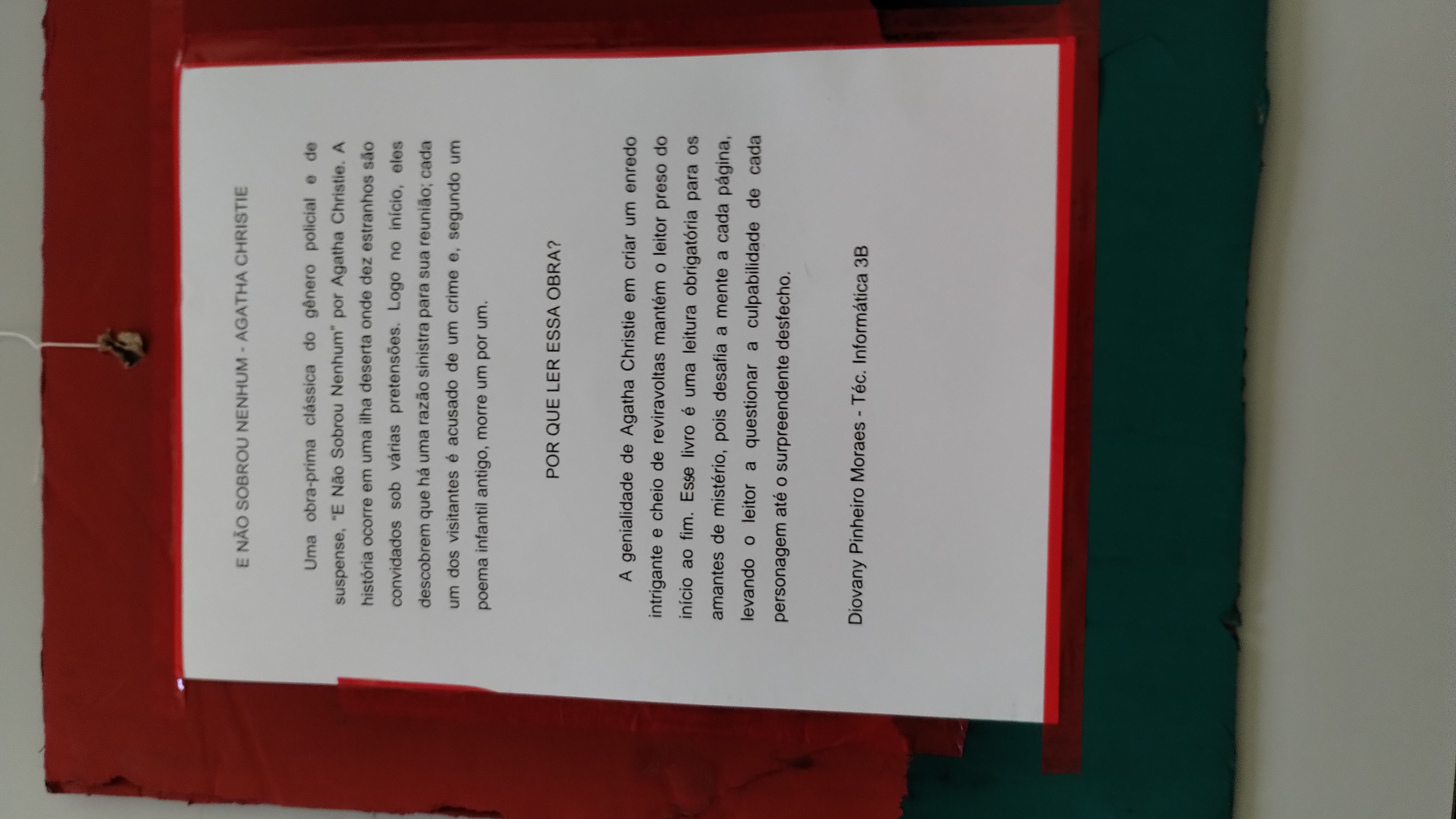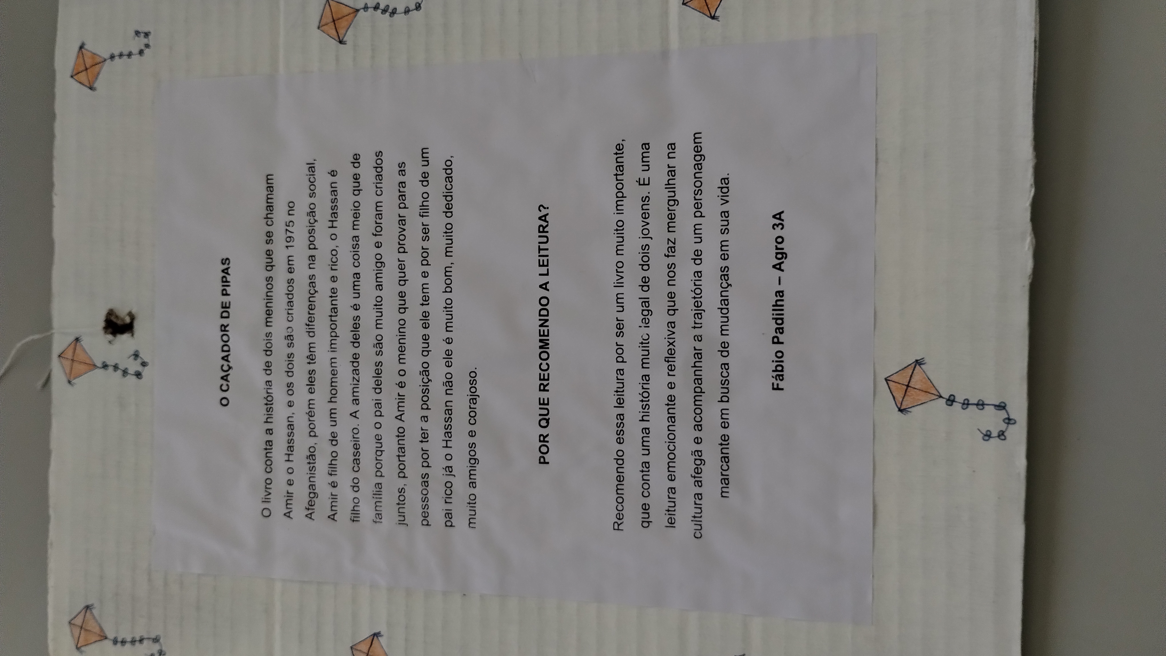 Nas aulas da última semana de junho durante as aulas da professora Sandra Oliveira, os/as estudantes da Informática apresentaram obras lidas por eles/as e fizeram pequenos "banners", com um resumo sobre o tema do livro e porque os/as outros/as também devem ler. Já os/as estudantes da Agropecuária apresentaram seus livros no mês de julho e também produziram “banners”.