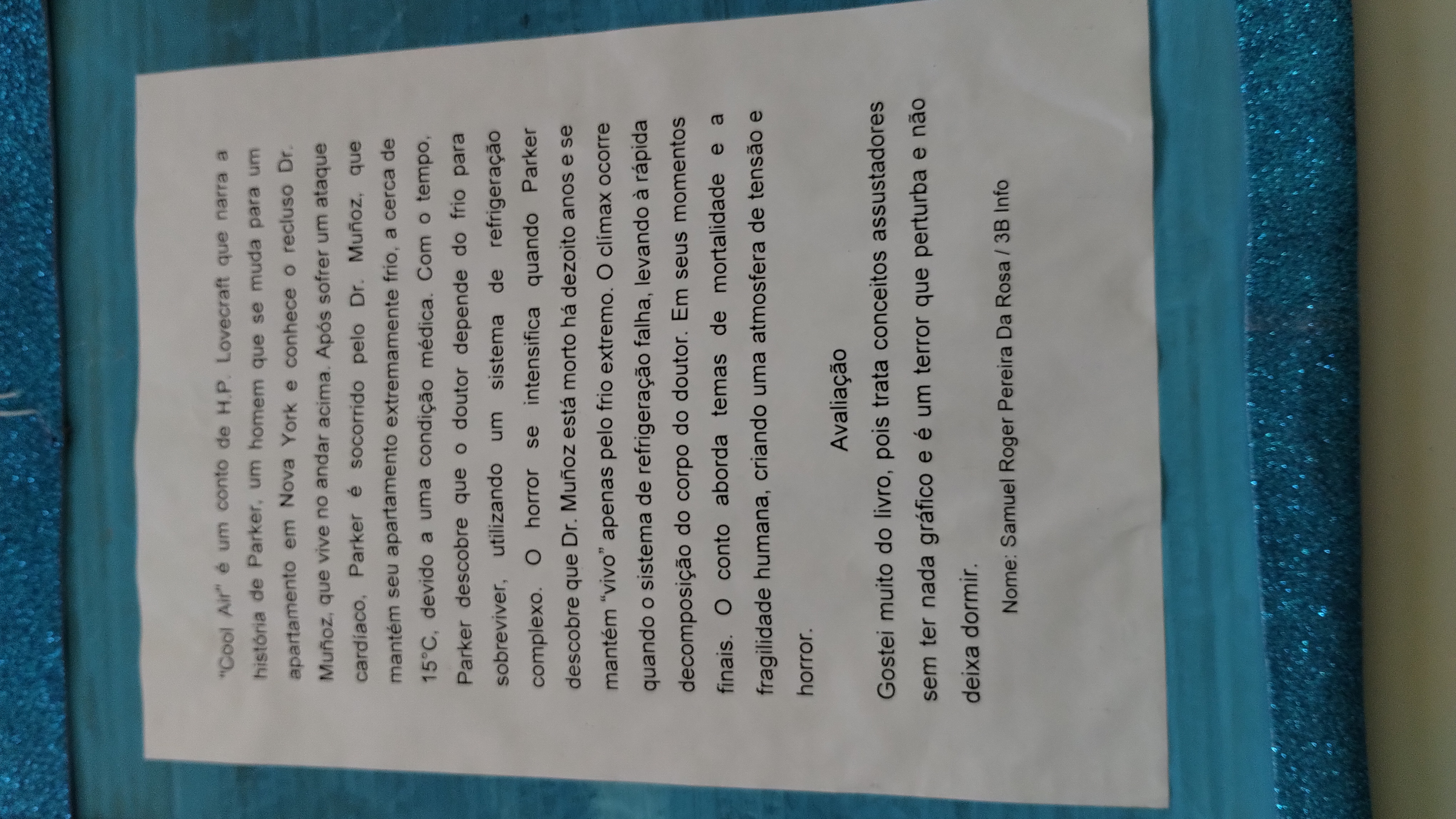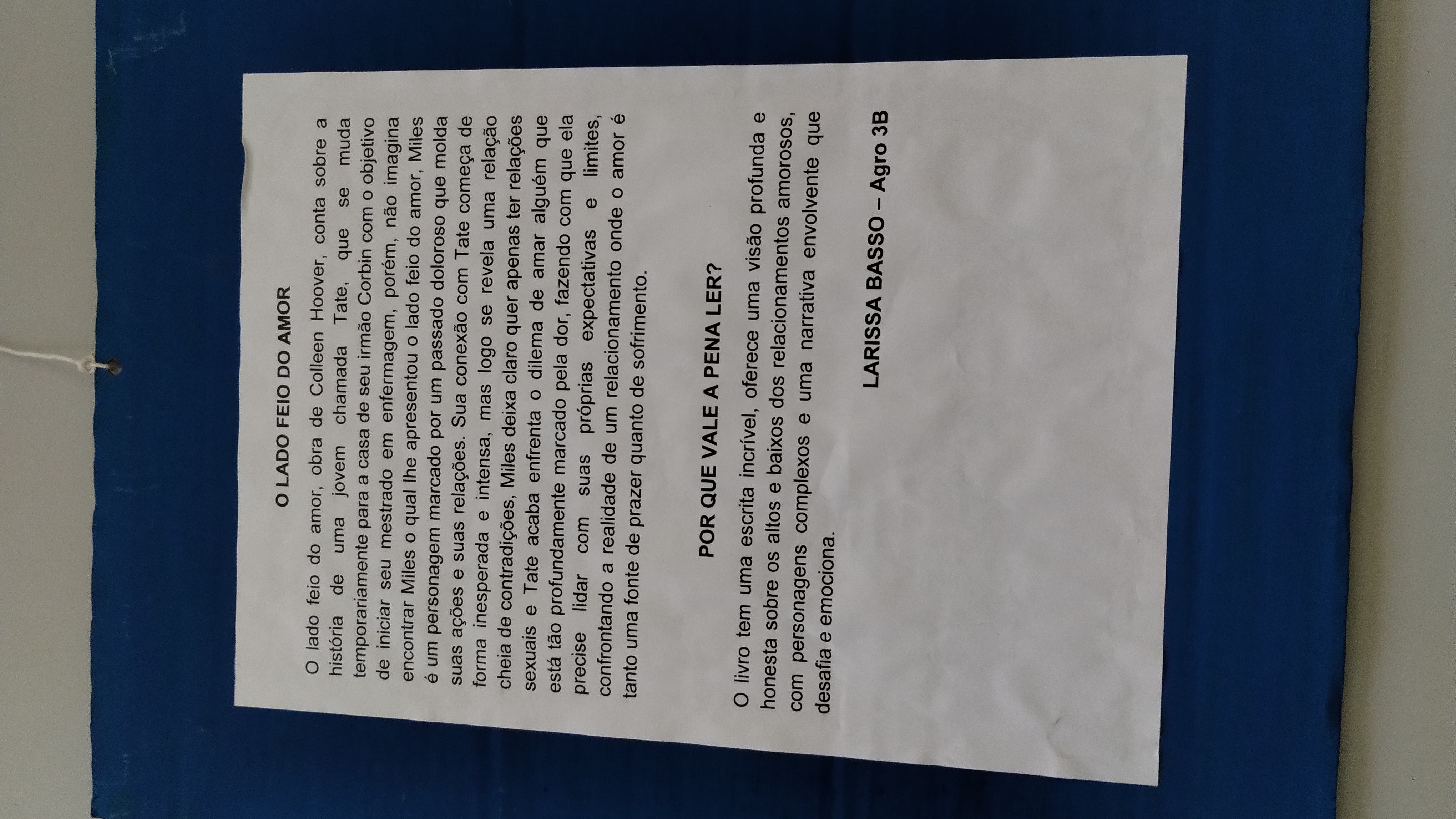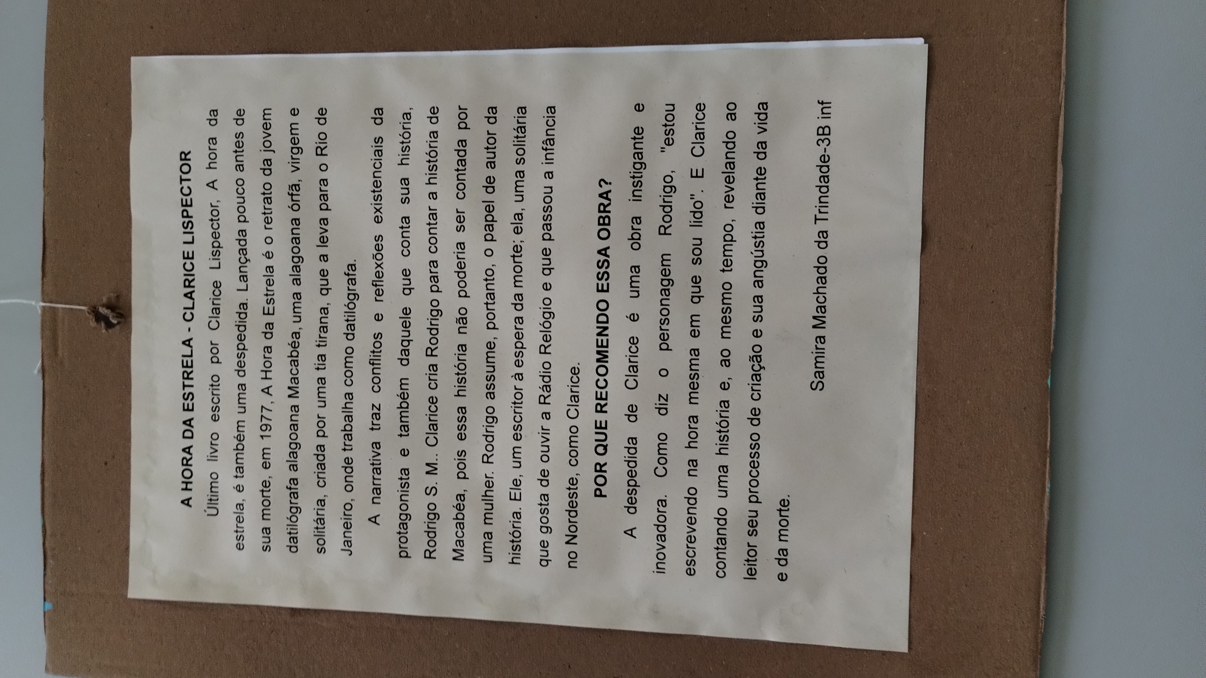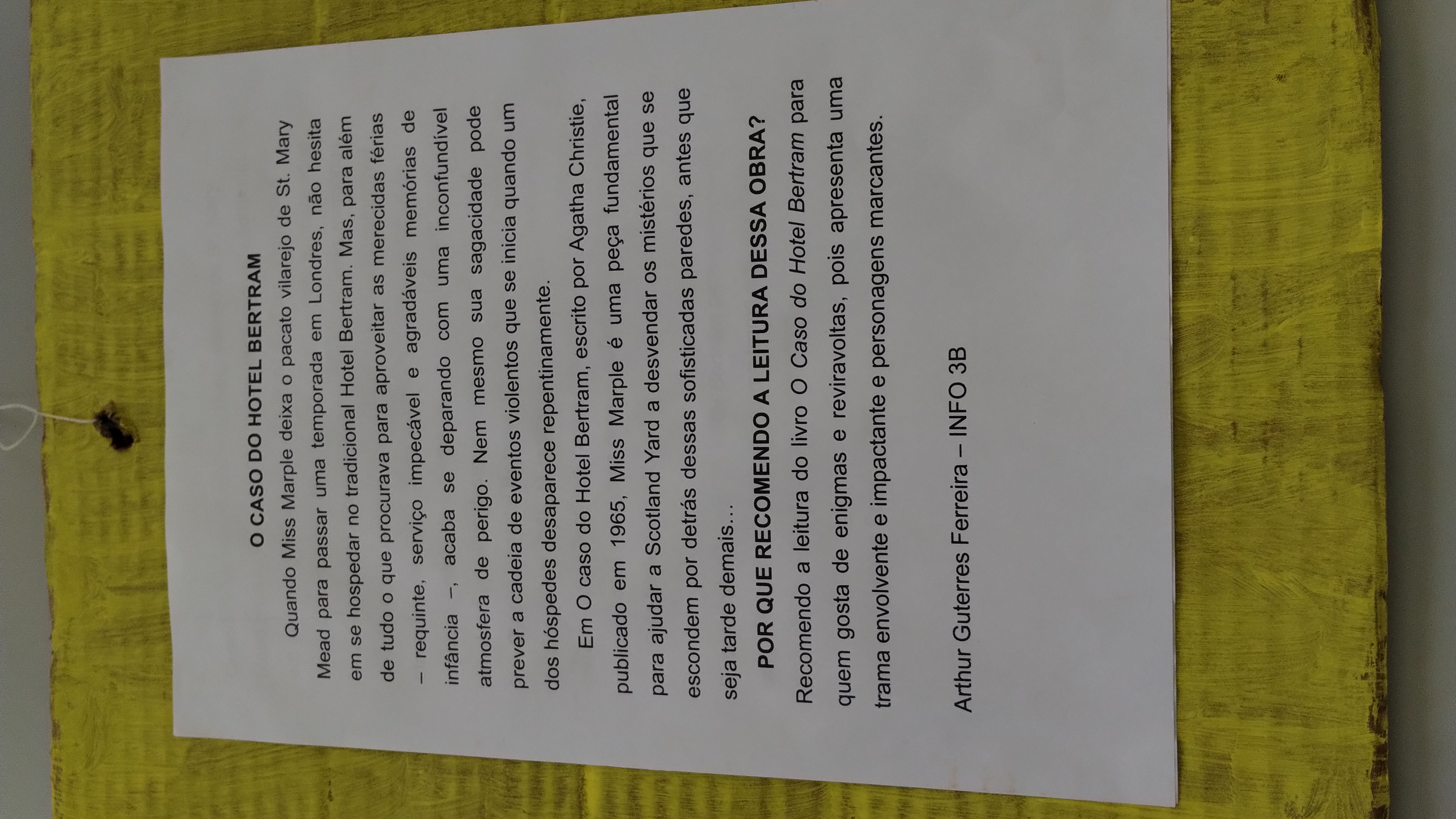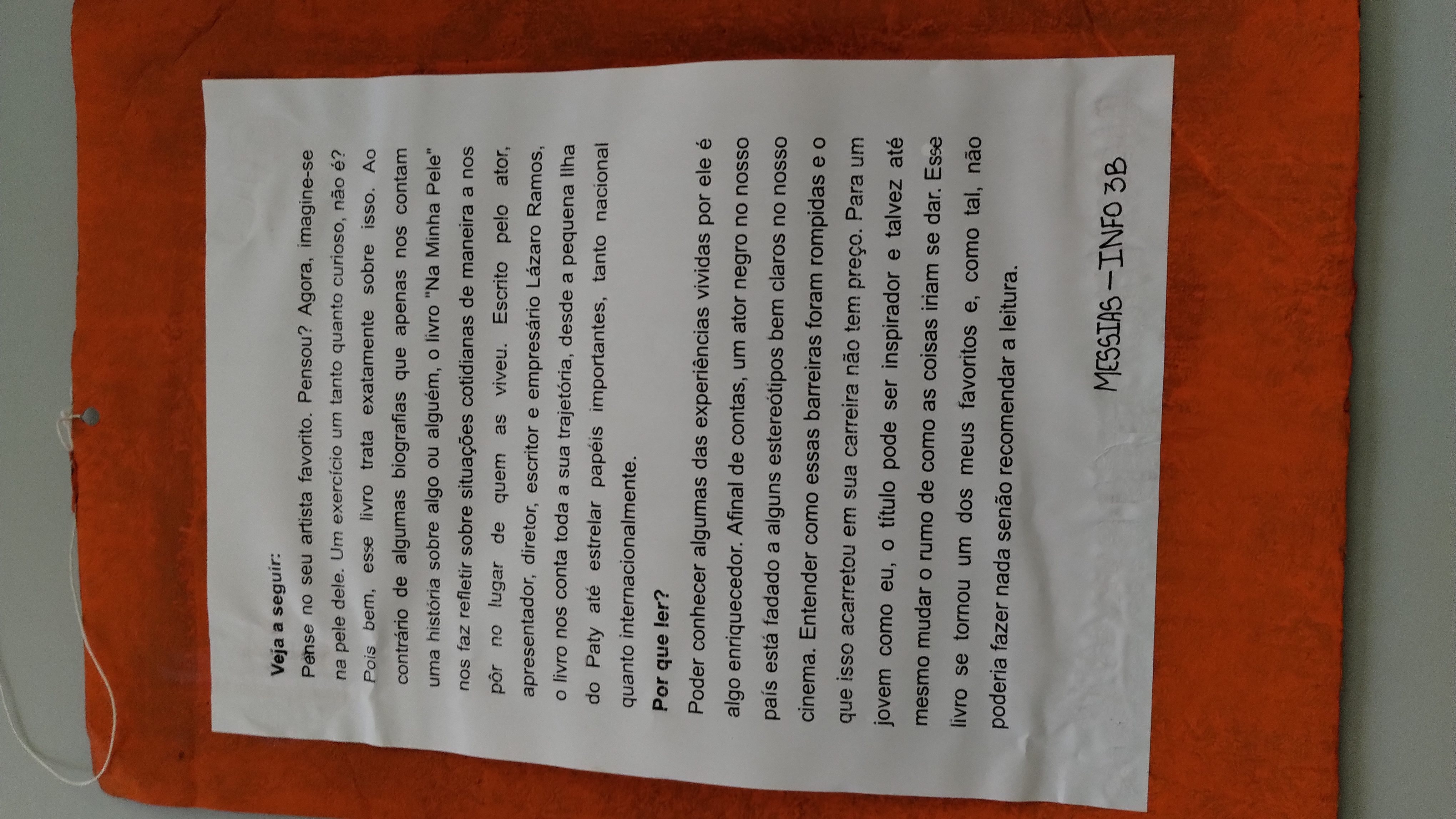 Nas aulas da última semana de junho durante as aulas da professora Sandra Oliveira, os/as estudantes da Informática apresentaram obras lidas por eles/as e fizeram pequenos "banners", com um resumo sobre o tema do livro e porque os/as outros/as também devem ler. Já os/as estudantes da Agropecuária apresentaram seus livros no mês de julho e também produziram “banners”.