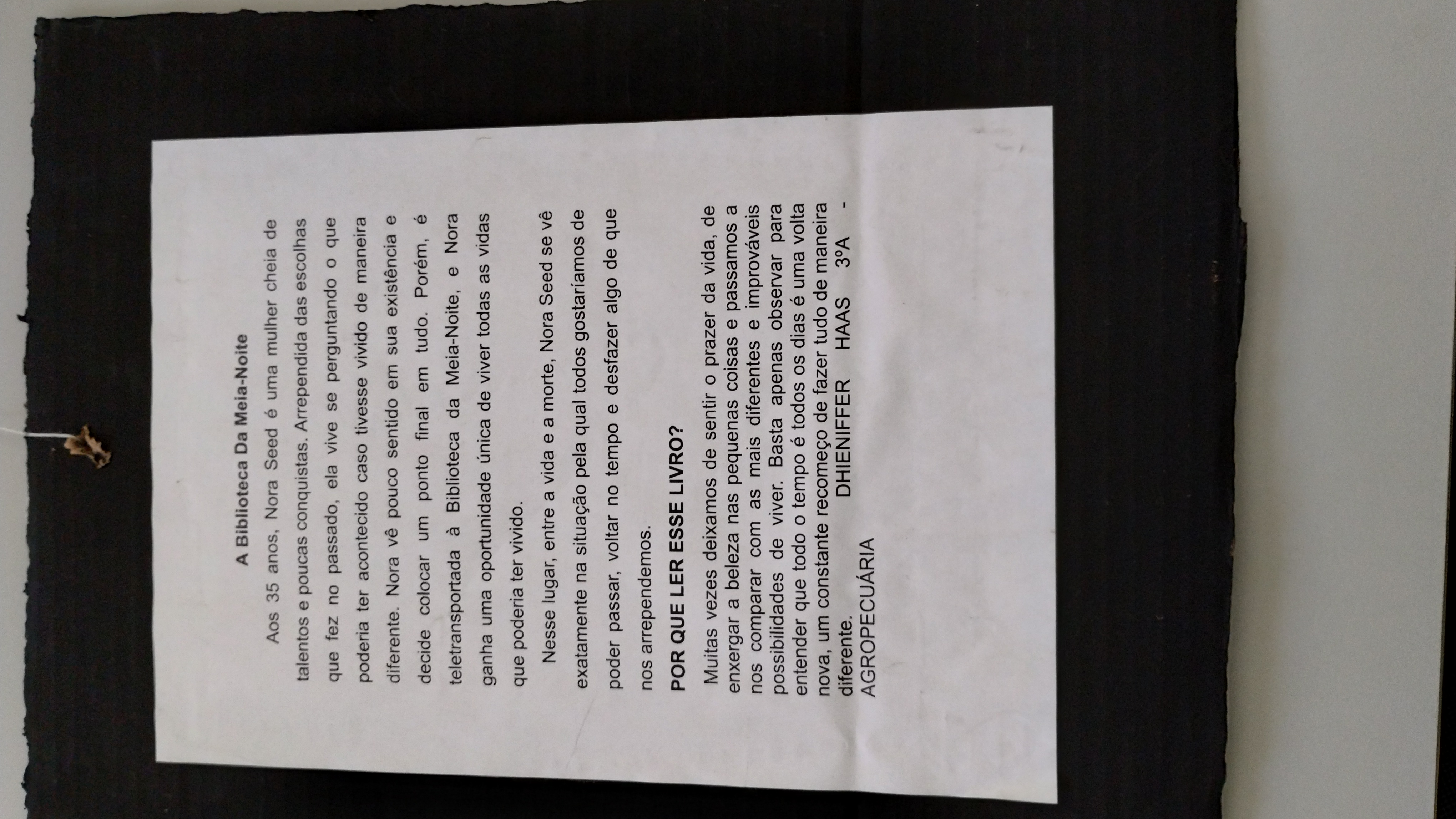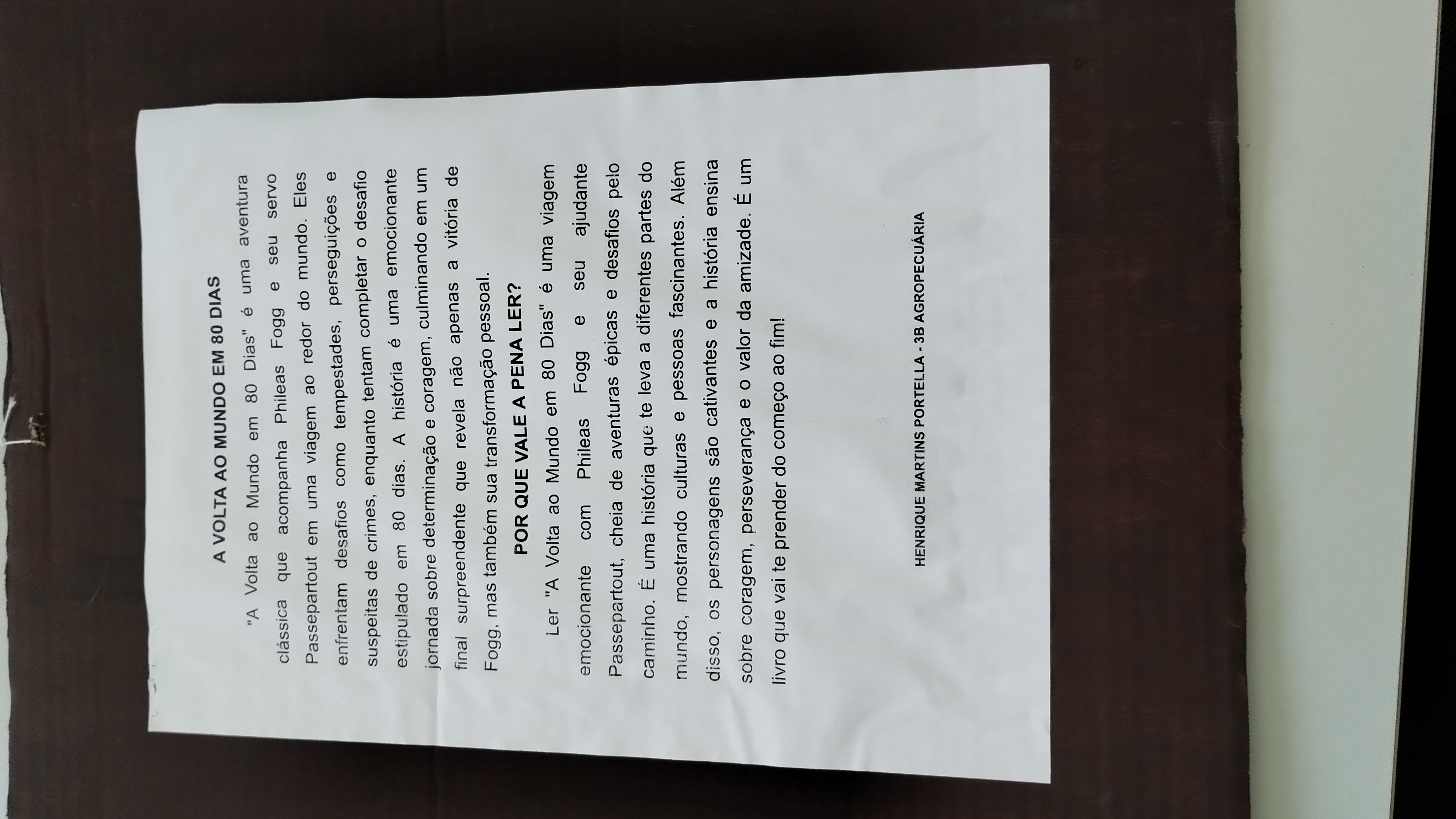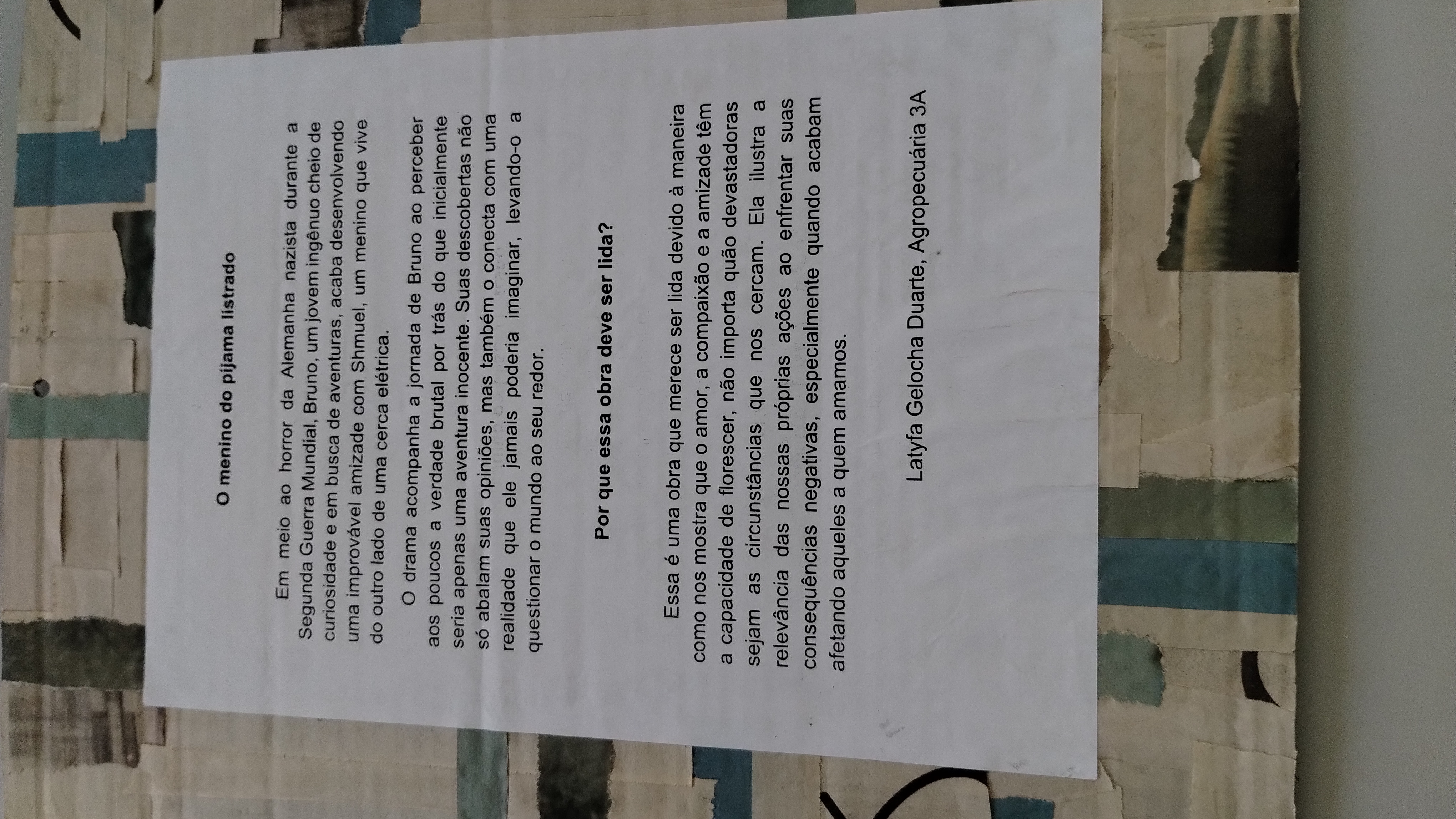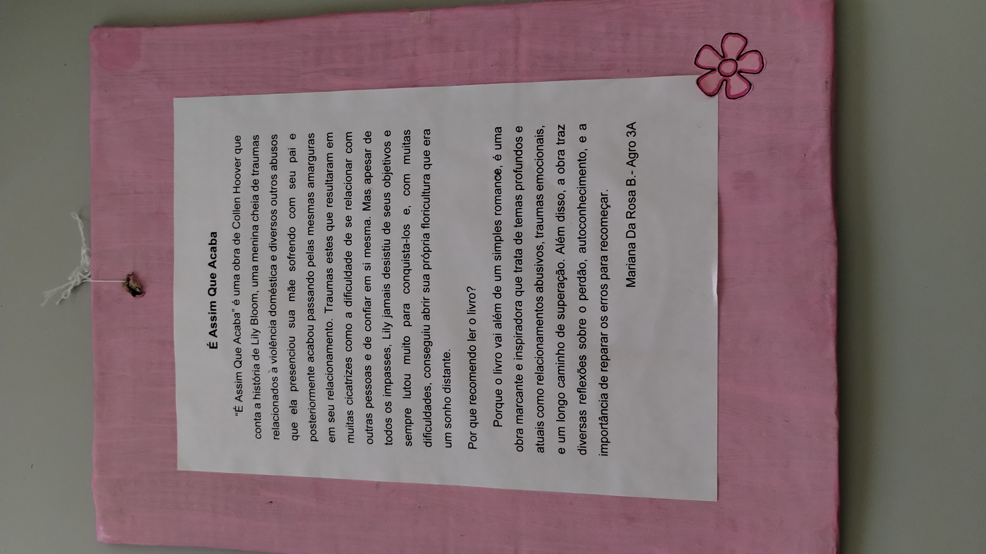 Nas aulas da última semana de junho durante as aulas da professora Sandra Oliveira, os/as estudantes da Informática apresentaram obras lidas por eles/as e fizeram pequenos "banners", com um resumo sobre o tema do livro e porque os/as outros/as também devem ler. Já os/as estudantes da Agropecuária apresentaram seus livros no mês de julho e também produziram “banners”.