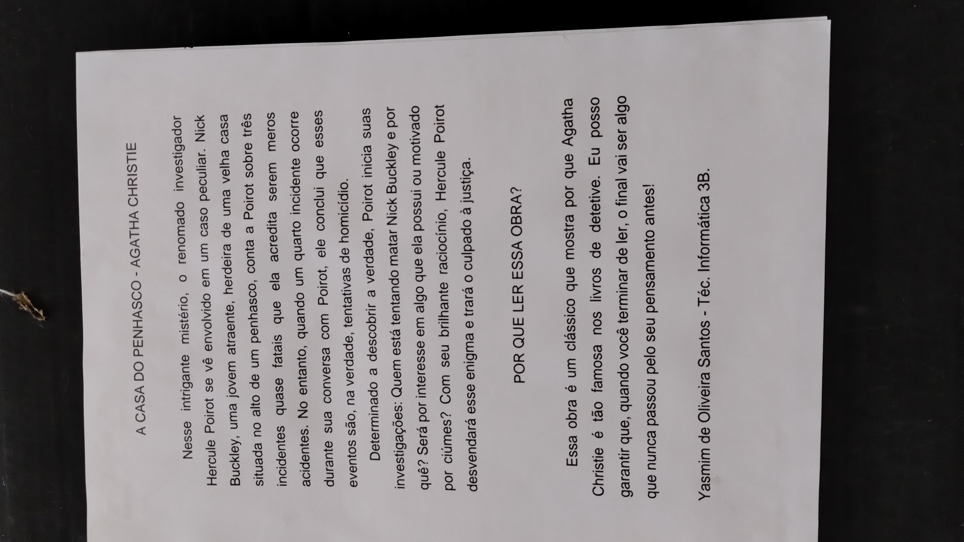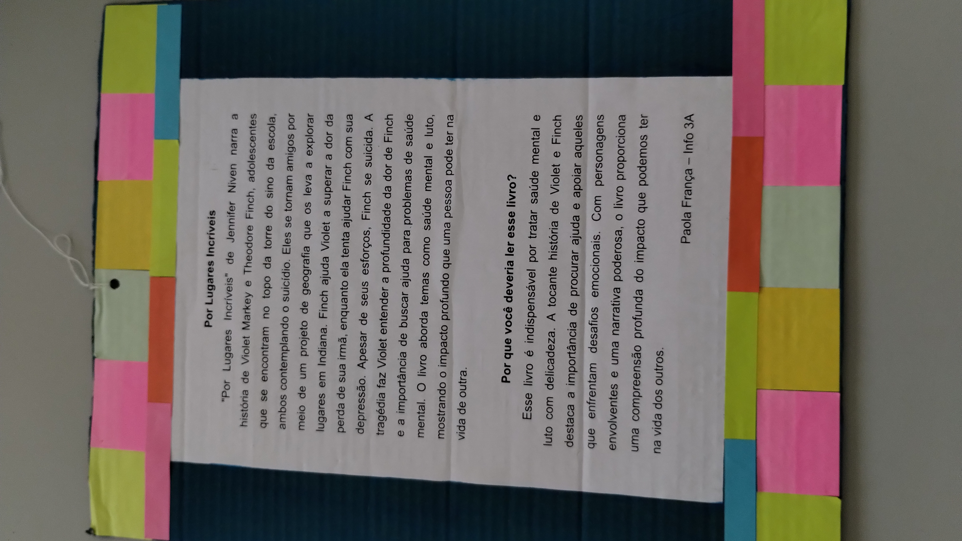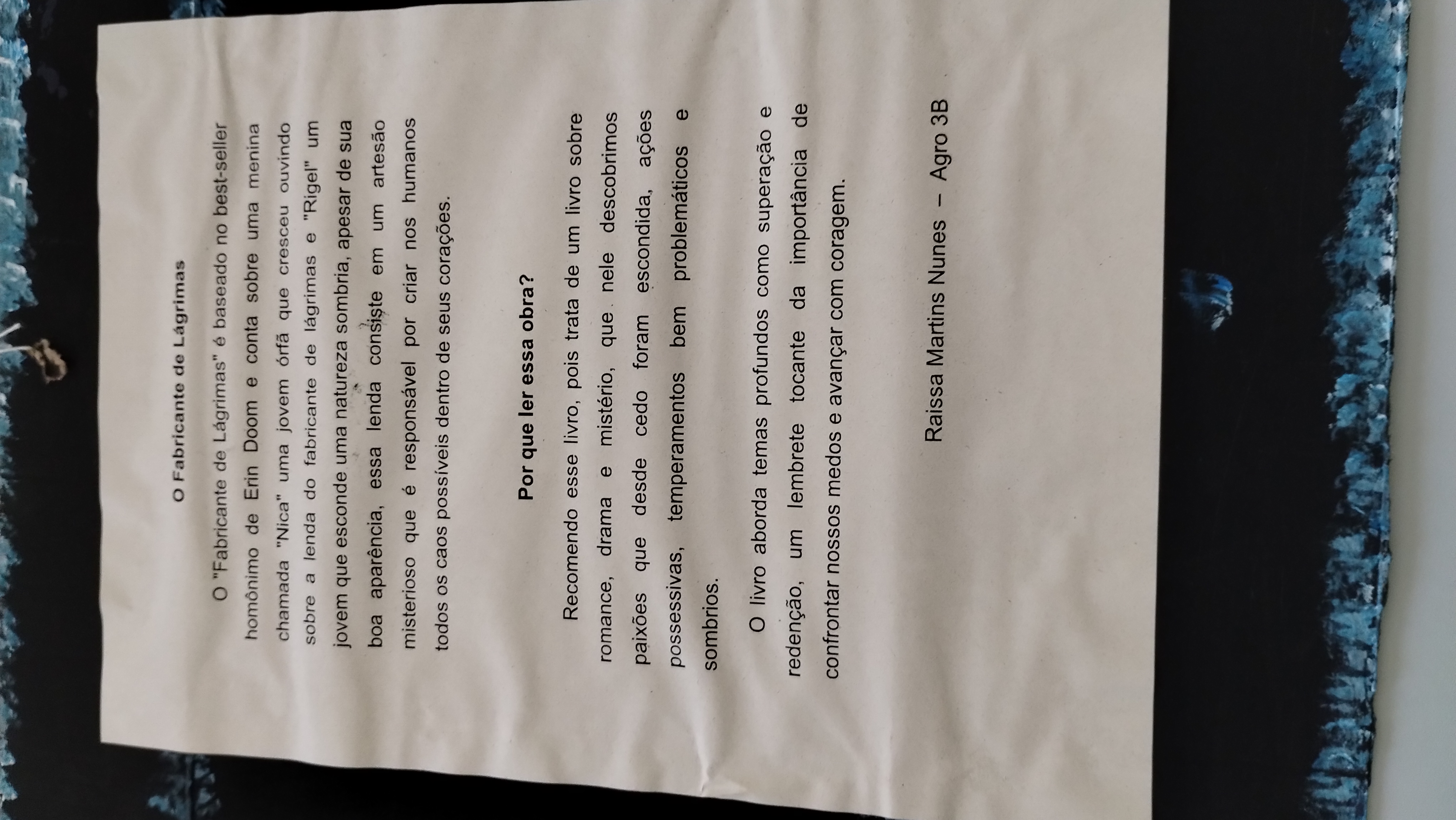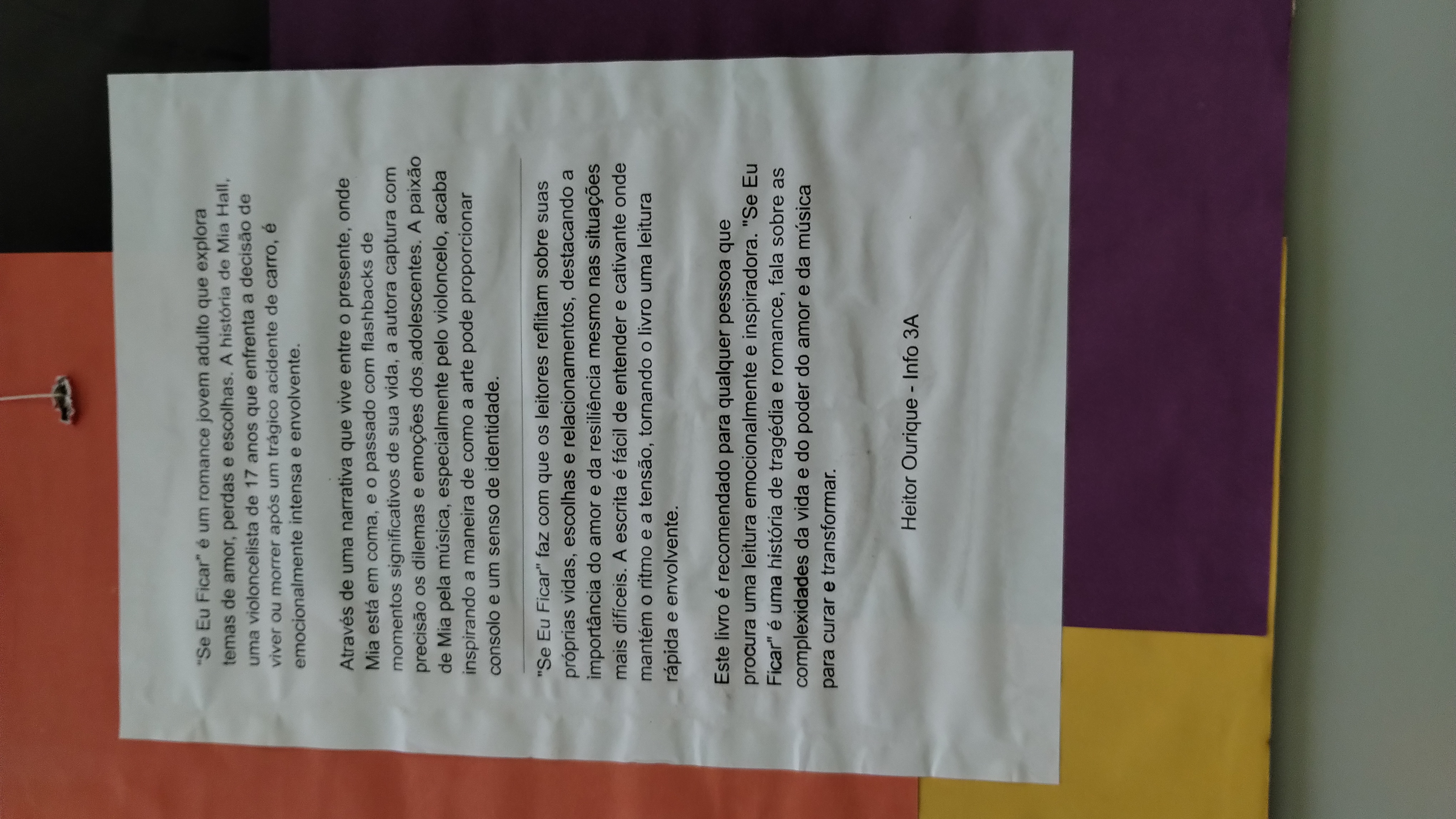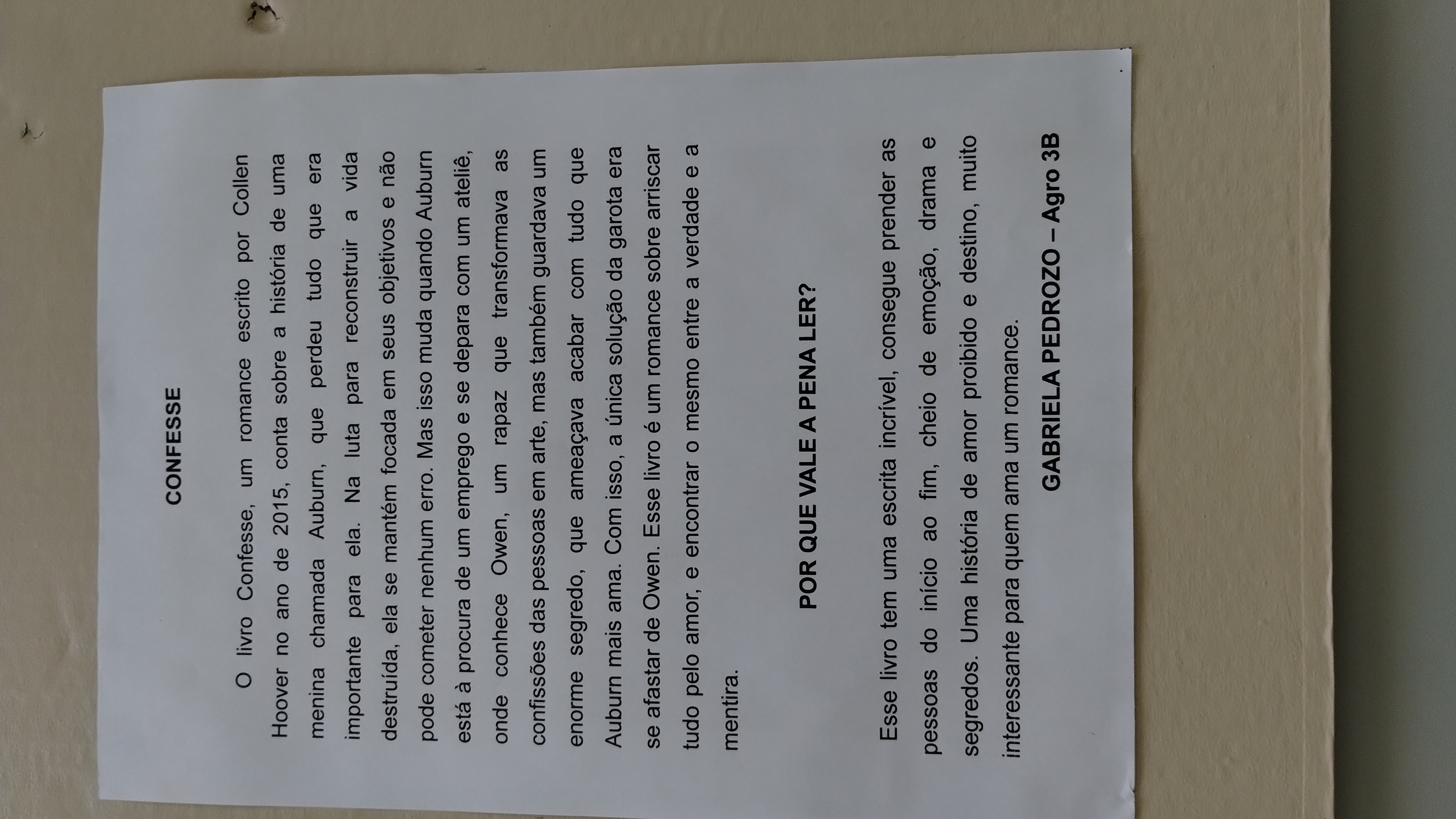 Nas aulas da última semana de junho durante as aulas da professora Sandra Oliveira, os/as estudantes da Informática apresentaram obras lidas por eles/as e fizeram pequenos "banners", com um resumo sobre o tema do livro e porque os/as outros/as também devem ler. Já os/as estudantes da Agropecuária apresentaram seus livros no mês de julho e também produziram “banners”.