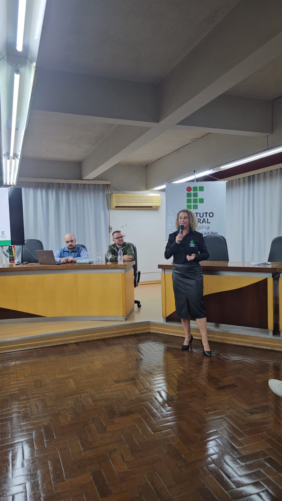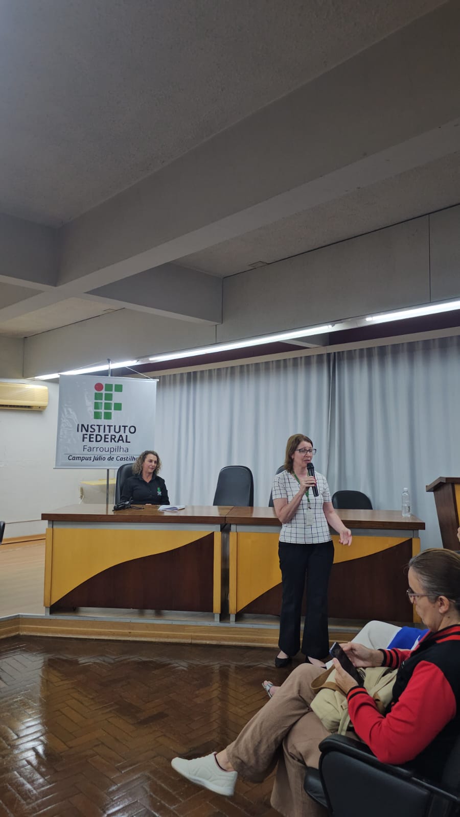 O pró-reitor começou apresentando um contexto da rede federal e do IFFar como um todo, destacando a criação de novos campi. Após Silvia falou mais sobre o contexto do Campus Júlio de Castilhos, número de estudantes, servidores/as e terceirizados/as e convidou as professoras Camila Coletto e Mariane Ugalde para fazerem apresentação dos novos cursos.