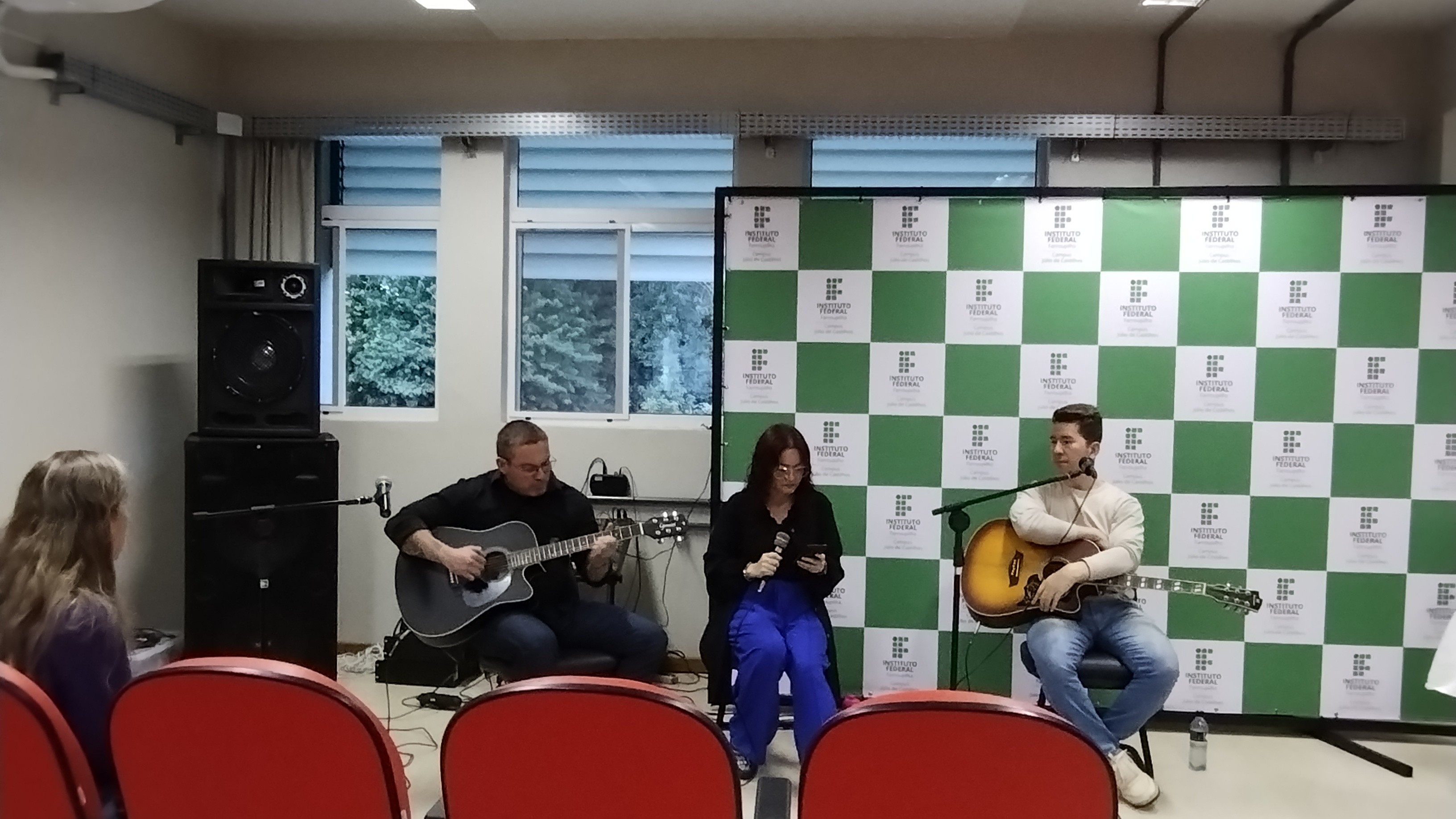 Depois da apresentação os/as convidados/as participaram de um lanche coletivo, no qual puderam trocar ideias com servidores/as da instituição expressando suas opiniões e também conhecendo um pouco da realidade do campus.