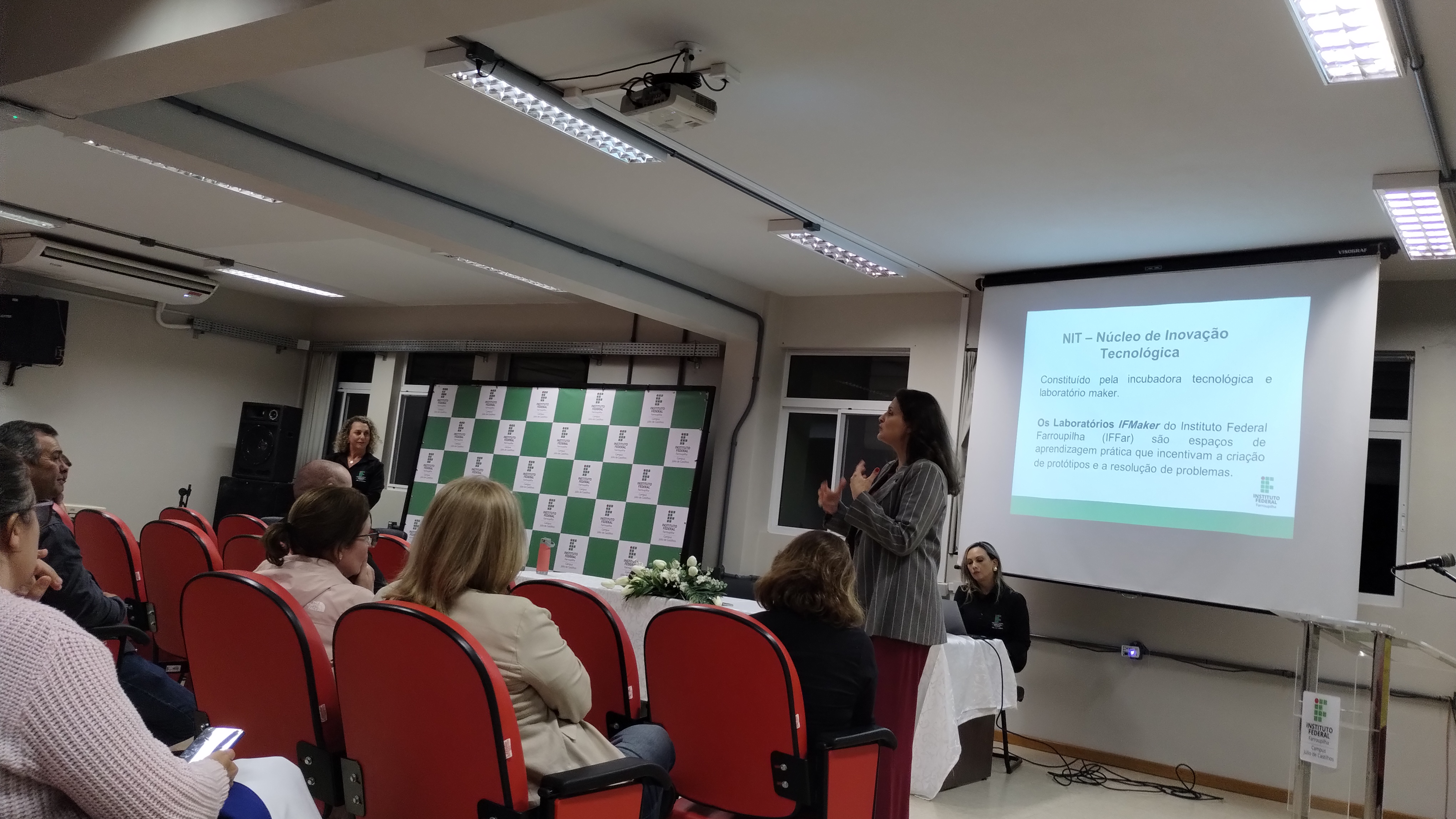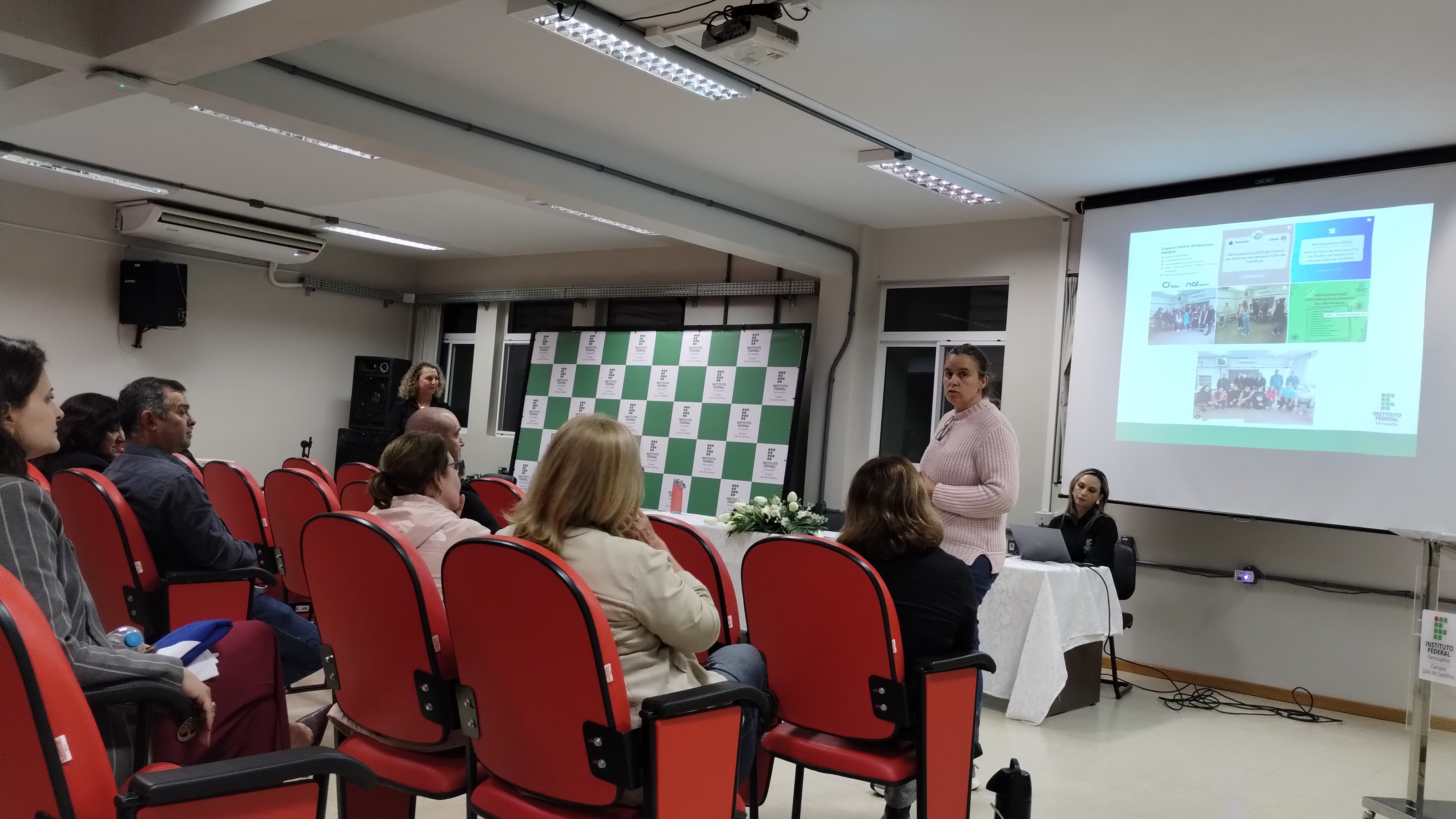 O evento teve três momentos uma apresentação, um lanche e uma visita guiada. A apresentação mostrou a proposta dos novos cursos como ocorreu na câmara, mas dessa vez também mostraram os projetos de extensão desenvolvidos pelos eixos de gestão e negócios e produção alimentícia. As professoras Camila e Mariane algumas ações bem conhecidas no município como o curso de boas práticas de manipulação de alimentos, que é voltado para as merendeiras enquanto a professora Camila destacou a formação “Ela pode”, que integra a Capacitação e Fortalecimento Feminino nas áreas de gestão e negócios. Durante a apresentação, Camila pediu que a professora Mariane Denardin se juntasse a ela, pois a mesma contribuiu desde o início para a proposta do curso técnico em administação integrado ao ensino médio.