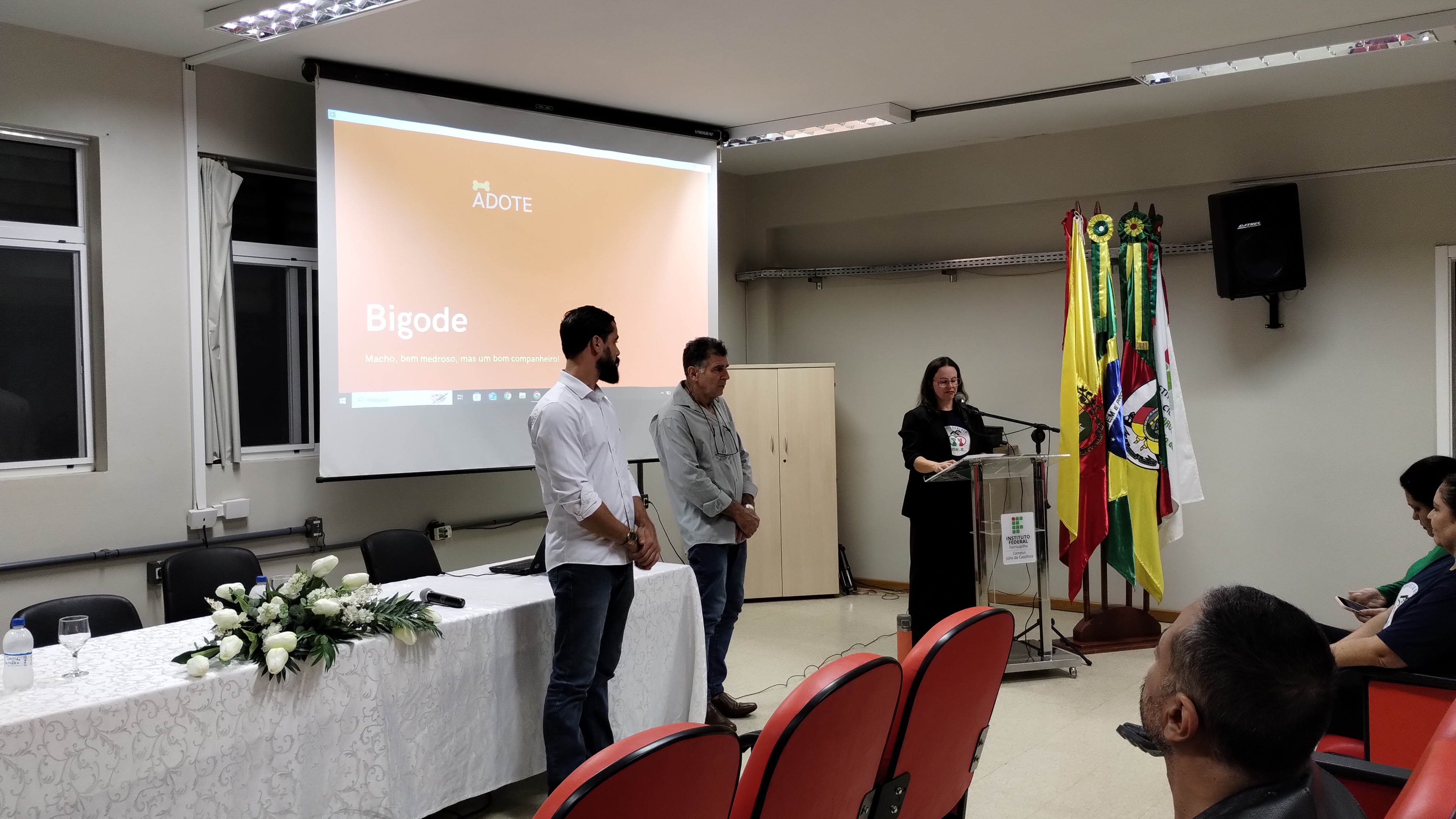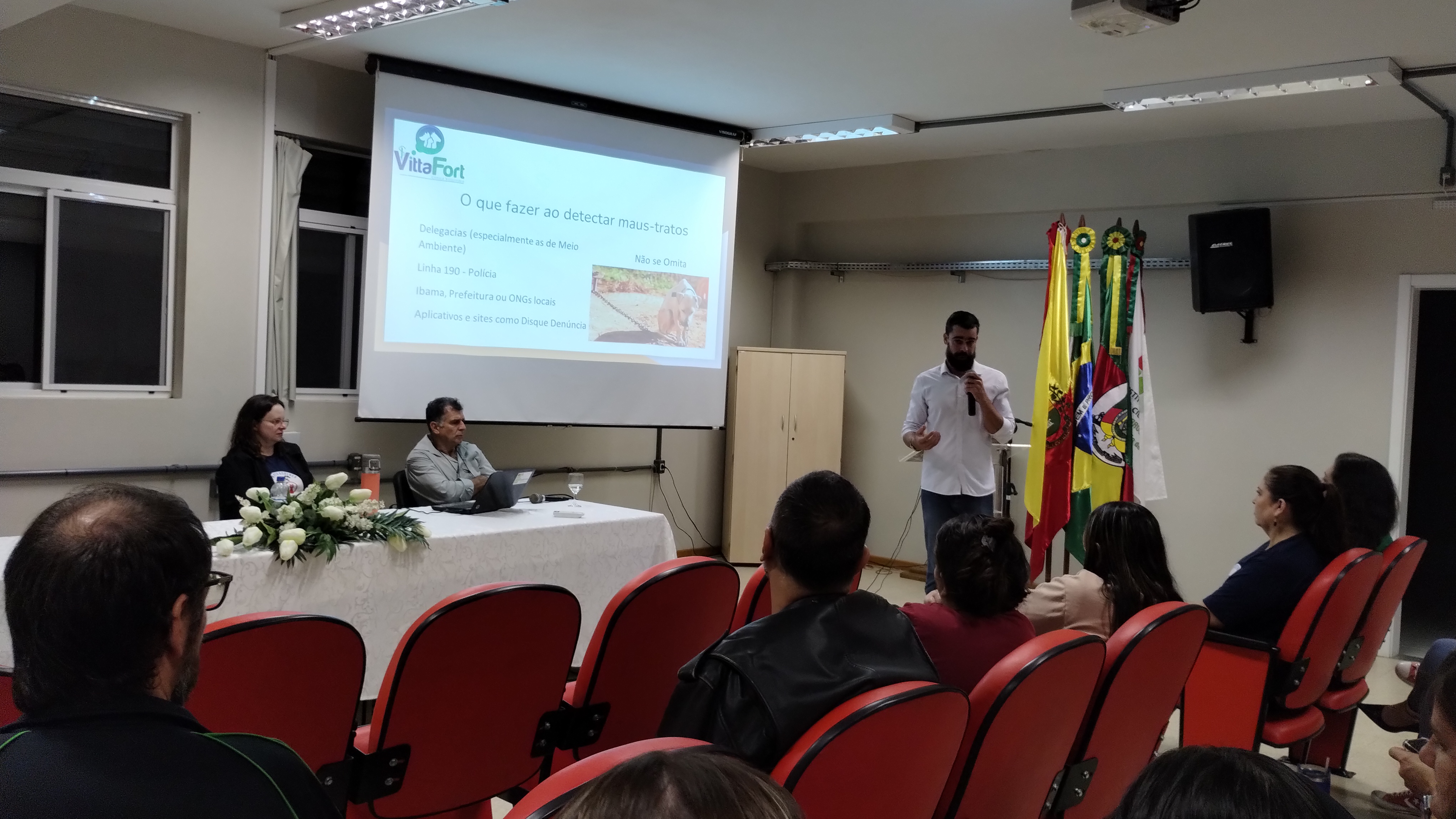 Na noite de terça-feira (15/04) aconteceu uma palestra sobre o mês de prevenção à crueldade animal – Abril Laranja, no auditório do prédio administrativo. O evento foi organizado pelo projeto Acolher. Os palestrantes abordaram o tema dos maus-tratos e ao final responderam perguntas sobre a causa animal e como proceder em determinadas situações envolvendo cães, gatos e cavalos.