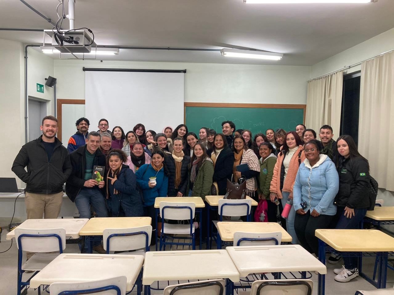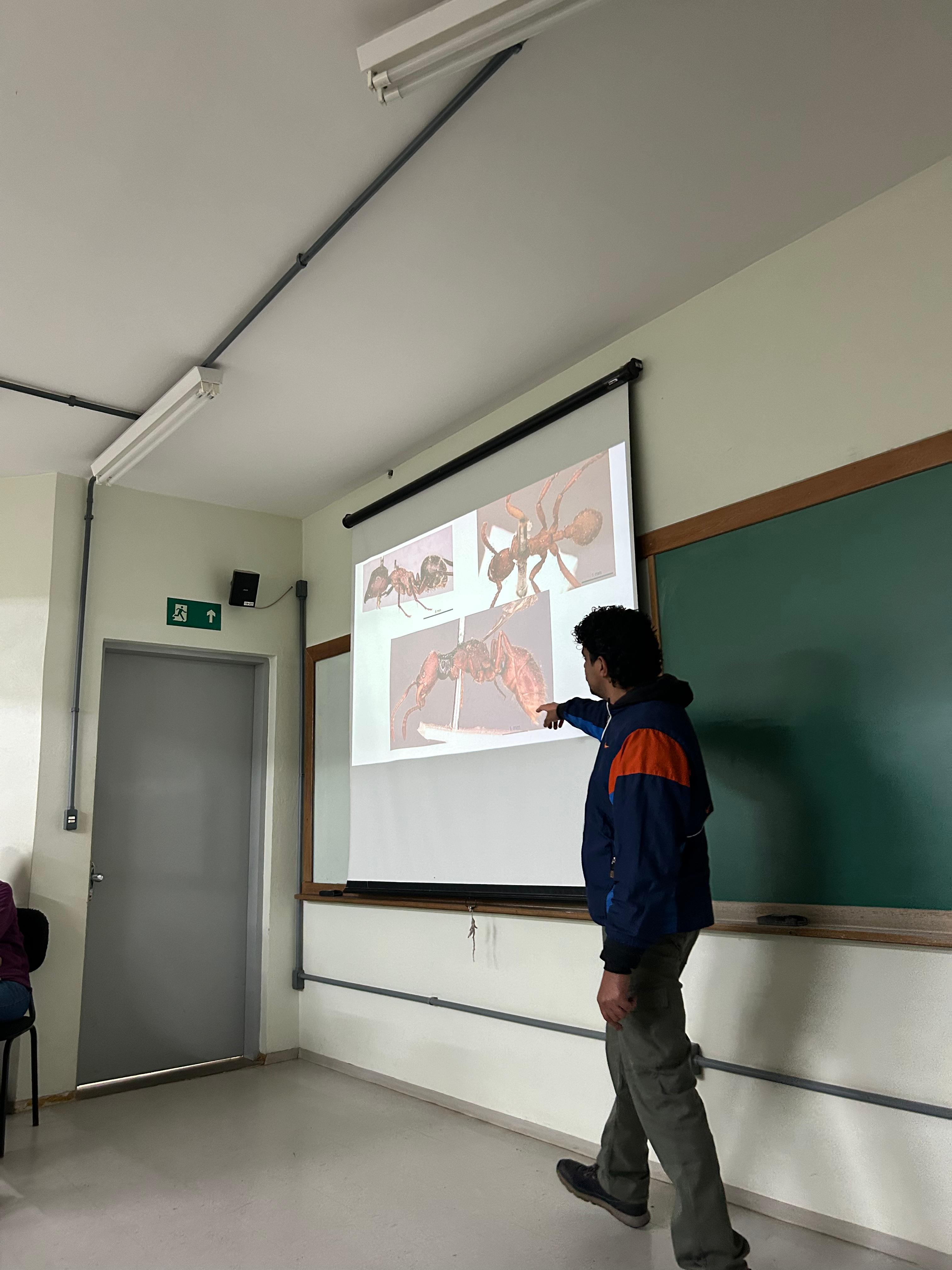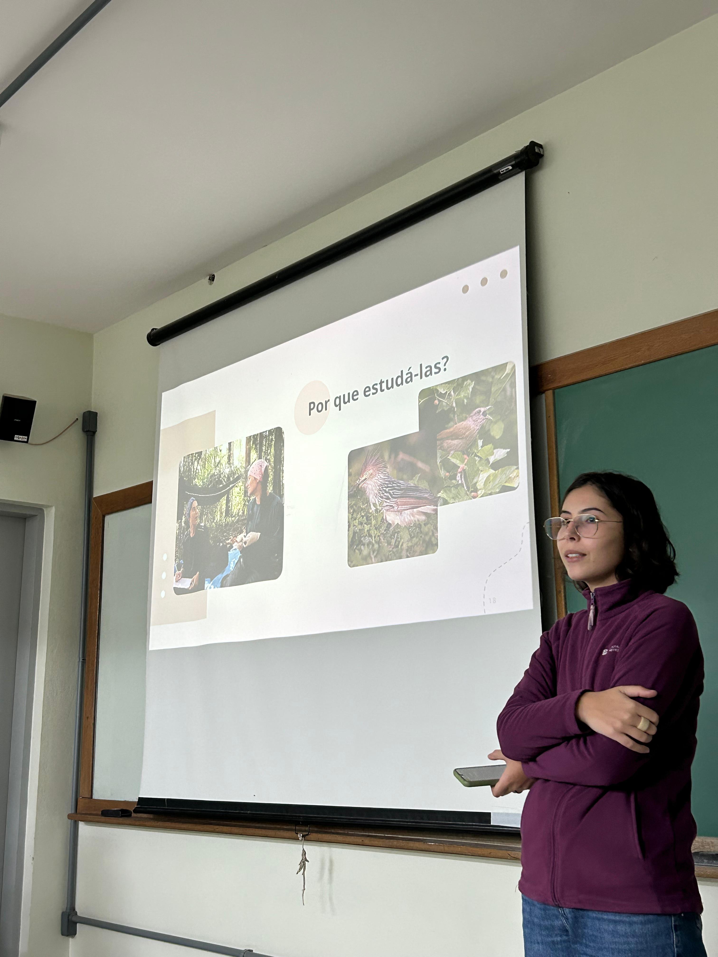 No primeiro dia, as atividades aconteceram em sala de aula, com introduções teóricas sobre morfologia, ecologia, curiosidades e métodos de amostragem de aves e formigas. Essas discussões prepararam os/as participantes para os trabalhos de campo.