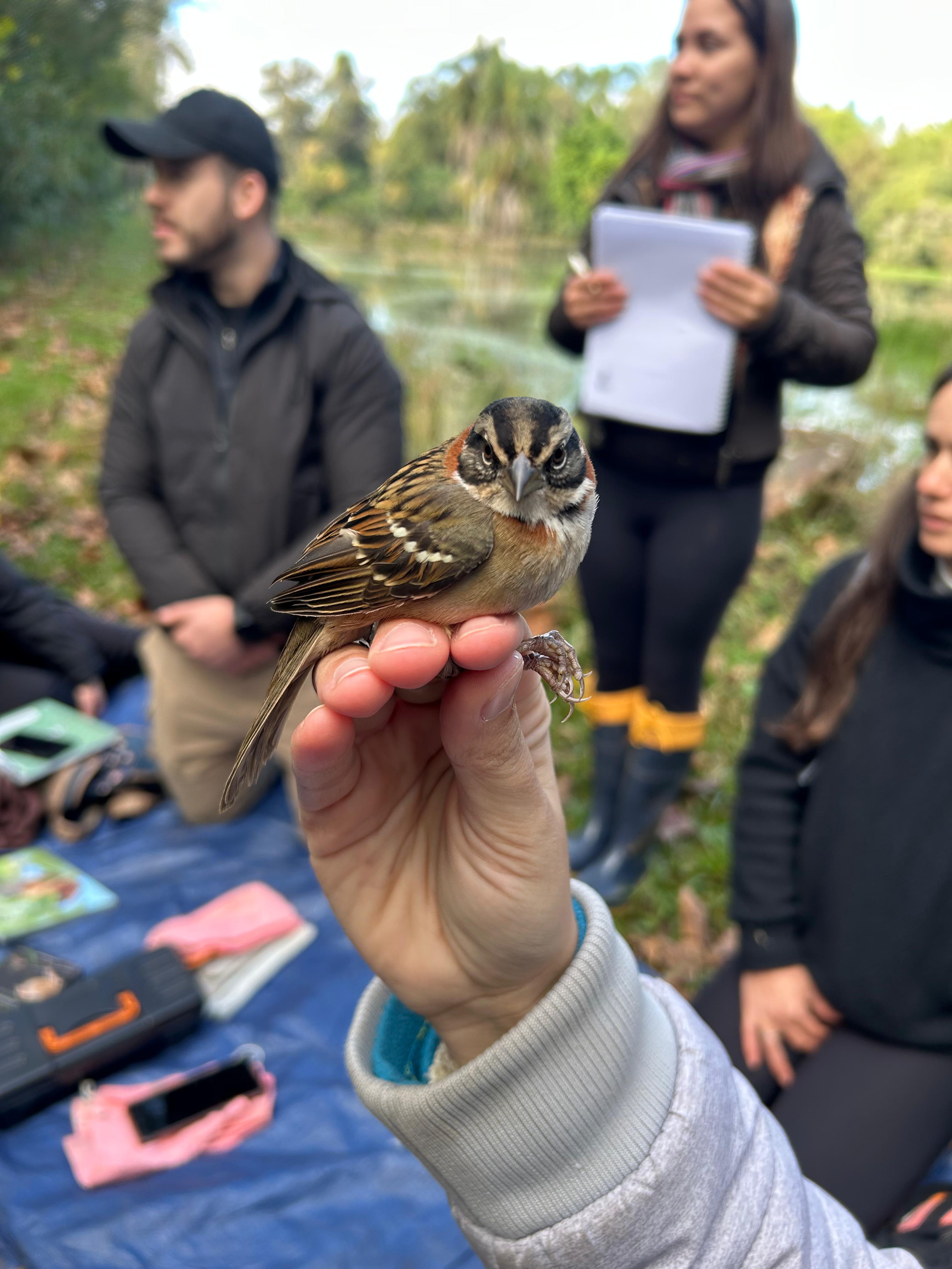 O segundo dia foi dedicado à prática: as equipes utilizaram redes de neblina para capturar aves, fizeram identificação com auxílio de guias de campo e mediram características como o comprimento da asa. As formigas foram coletadas com armadilhas de queda (pitfalls) e extratores de Winkler. Ambas as práticas foram feitas em dois ambientes distintos – uma área de lavoura e uma área arborizada no Parque Florestal do campus – permitindo a comparação entre diferentes contextos ecológicos.