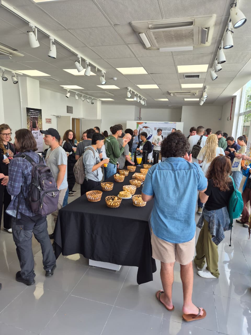 Felipe Brum (vestindo camiseta preta) apresenta o pôster premiado durante o II Congresso Brasileiro de Bioacústica, em Florianópolis/Foto: Divulgação