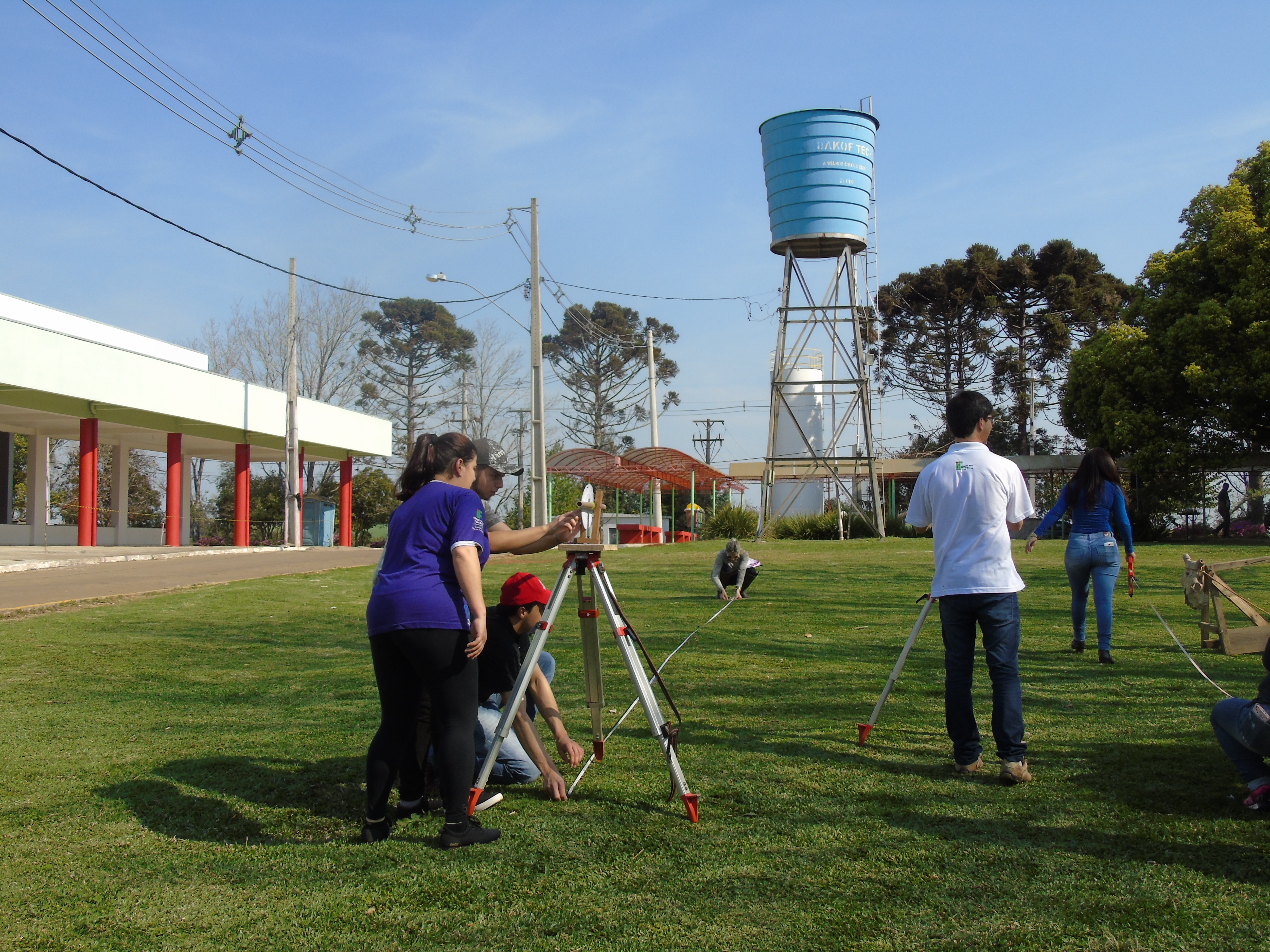 Na oficina "Transformando matemática em topografia", os estudantes do curso de Licenciatura em matemática, aplicam os conhecimentos matemáticos na Topografia. A oficina é ministrada pelos docentes do Campus, Elisangela Schons e Ricardo Schons