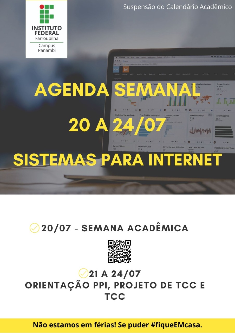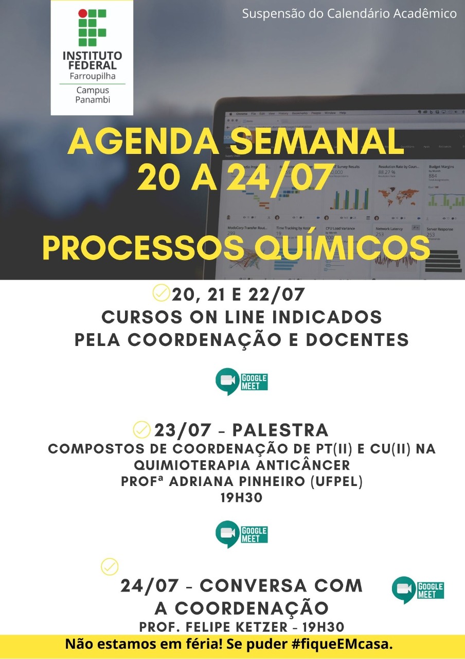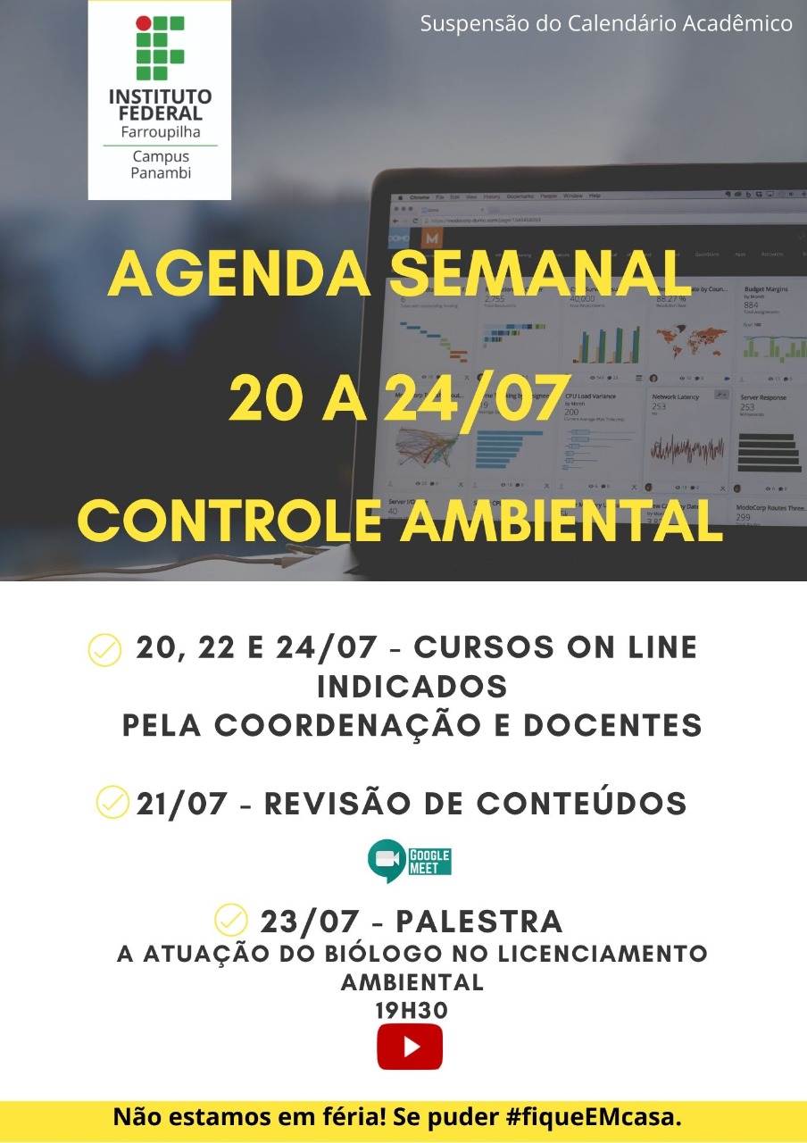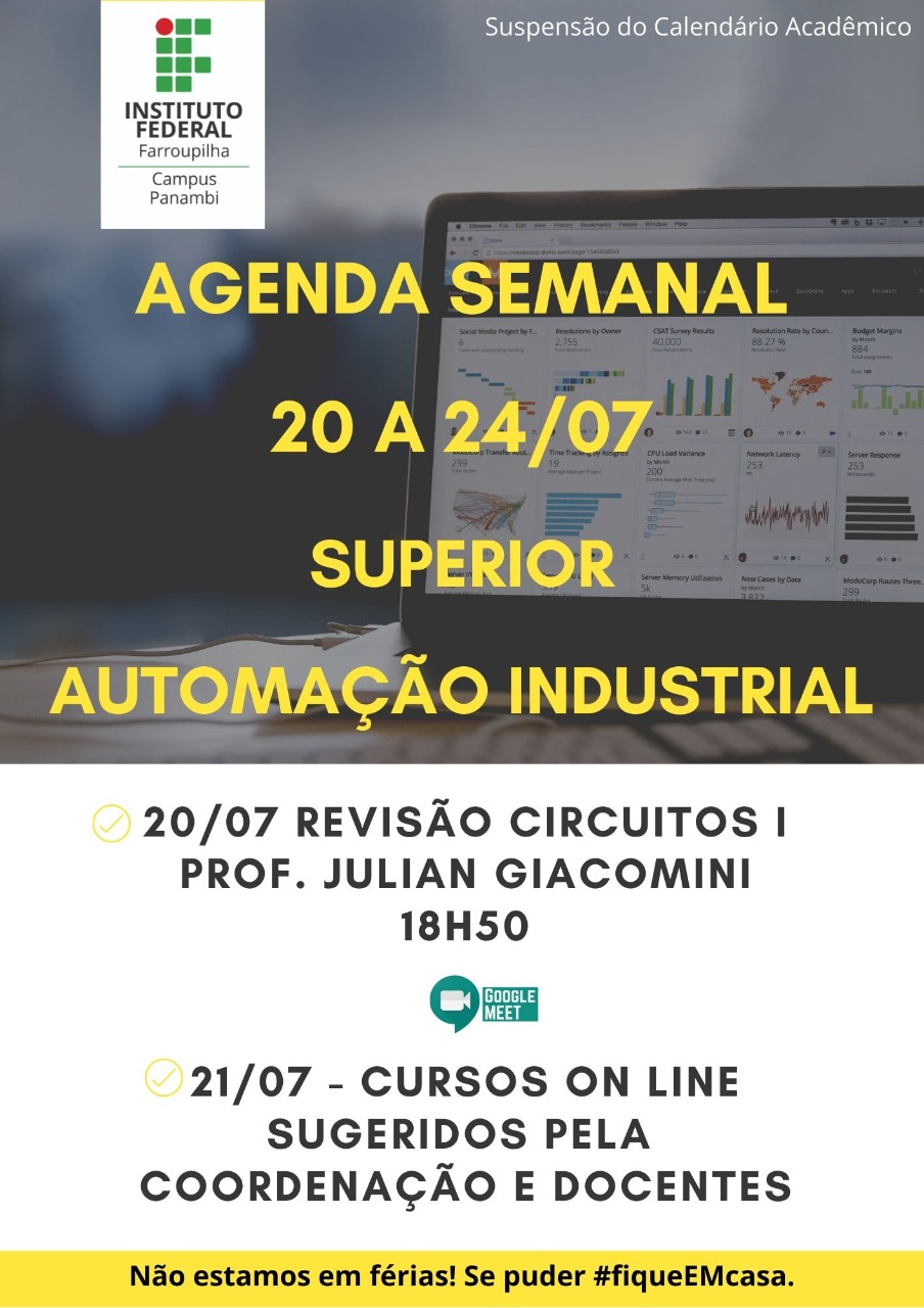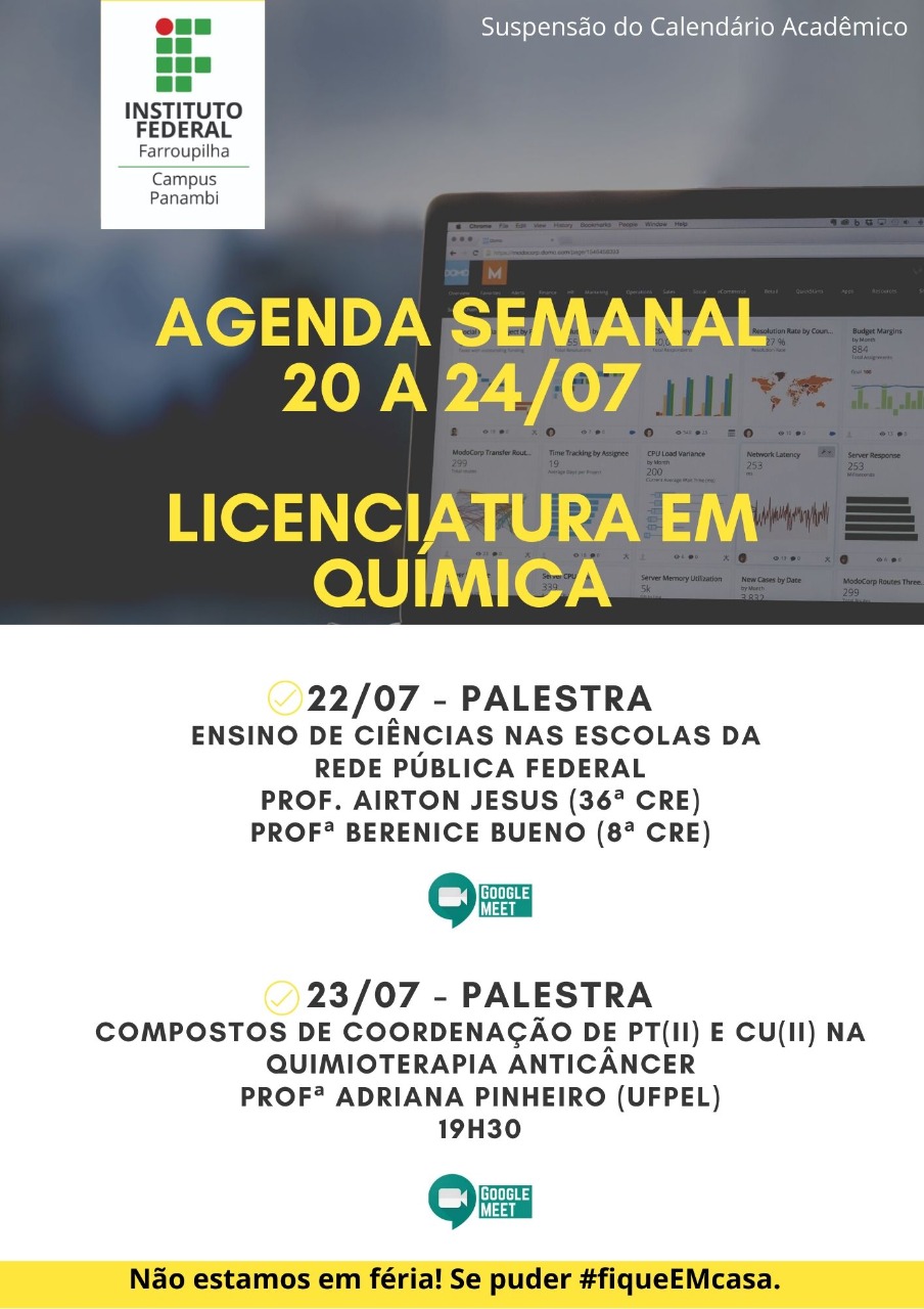 A cada semana, uma agenda contendo as ações que serão desenvolvidas por cada curso será divulgada no portal institucional e nas redes sociais do Campus Panambi.