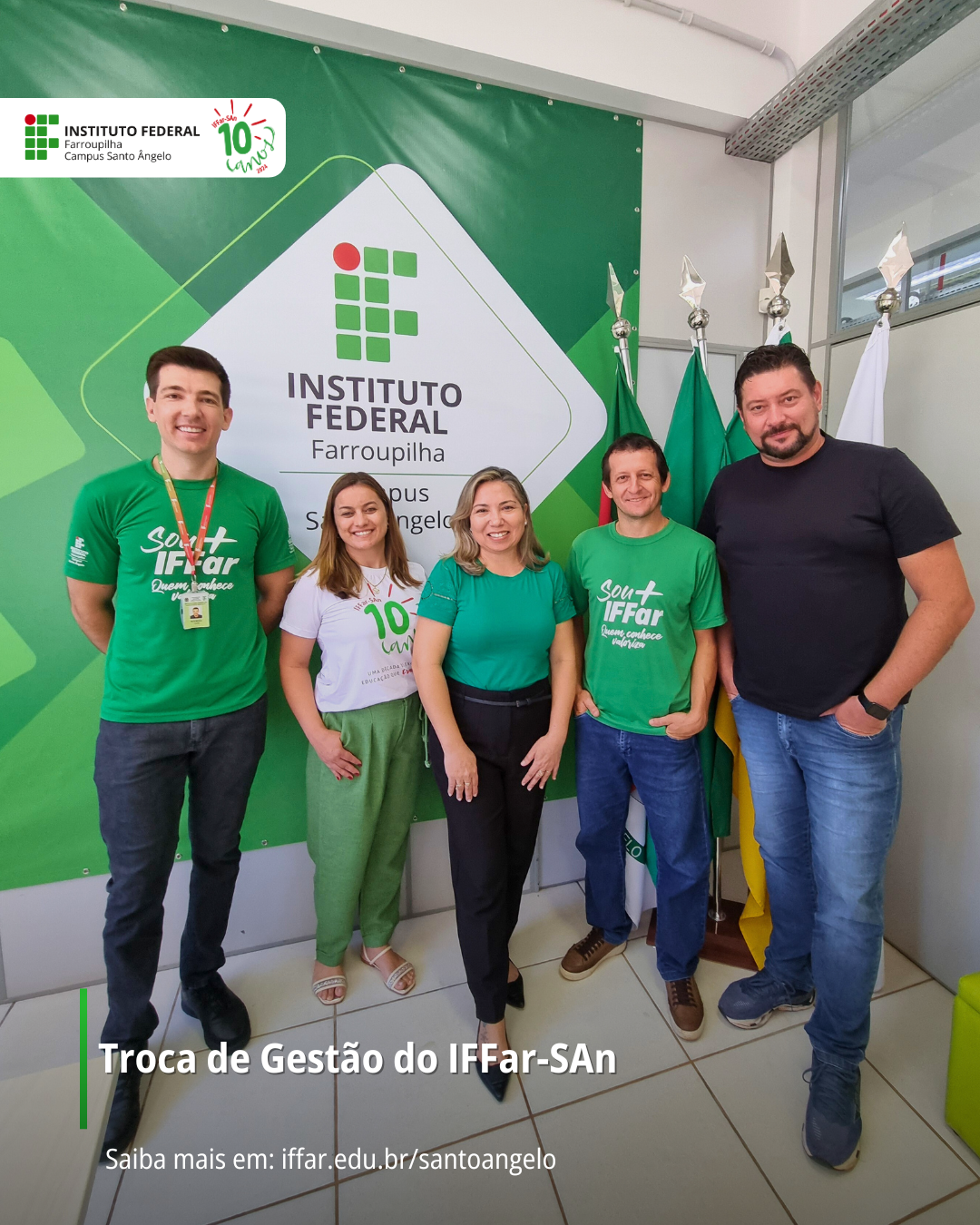 A nova gestão assume com o compromisso de promover a educação profissional, científica e tecnológica, pública, gratuita e de qualidade, com foco na formação integral do cidadão e no desenvolvimento sustentável , contando com a colaboração de estudantes, servidores e toda a comunidade acadêmica para juntos construirmos um futuro de oportunidades e desenvolvimento para o IFFar – Campus Santo Ângelo.