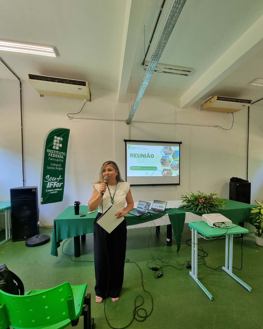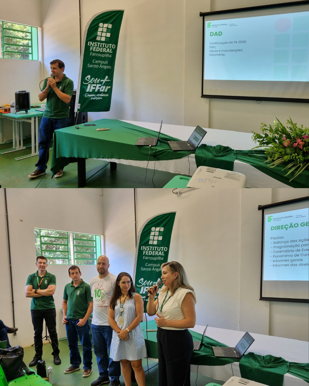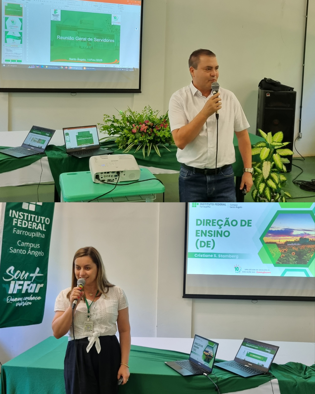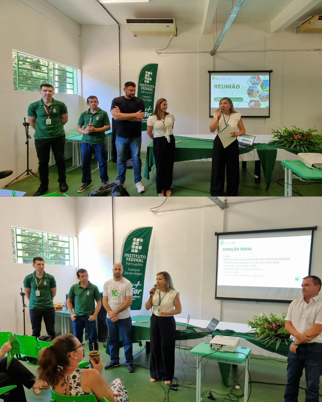- Apresentação da nova equipe diretiva sob a Direção Geral da Professora Mariéli T. Krampe Machado (Gestão 03 fev./2025 a 2029) que fortaleceu o compromisso com o desenvolvimento do campus e da educação profissional, científica e tecnológica, a qual evidenciou o potencial de toda a equipe composta por 130 servidores (efetivos, substitutos e terceirizados) que promovem o ensino, a pesquisa e a extensão para formação integral dos estudantes.