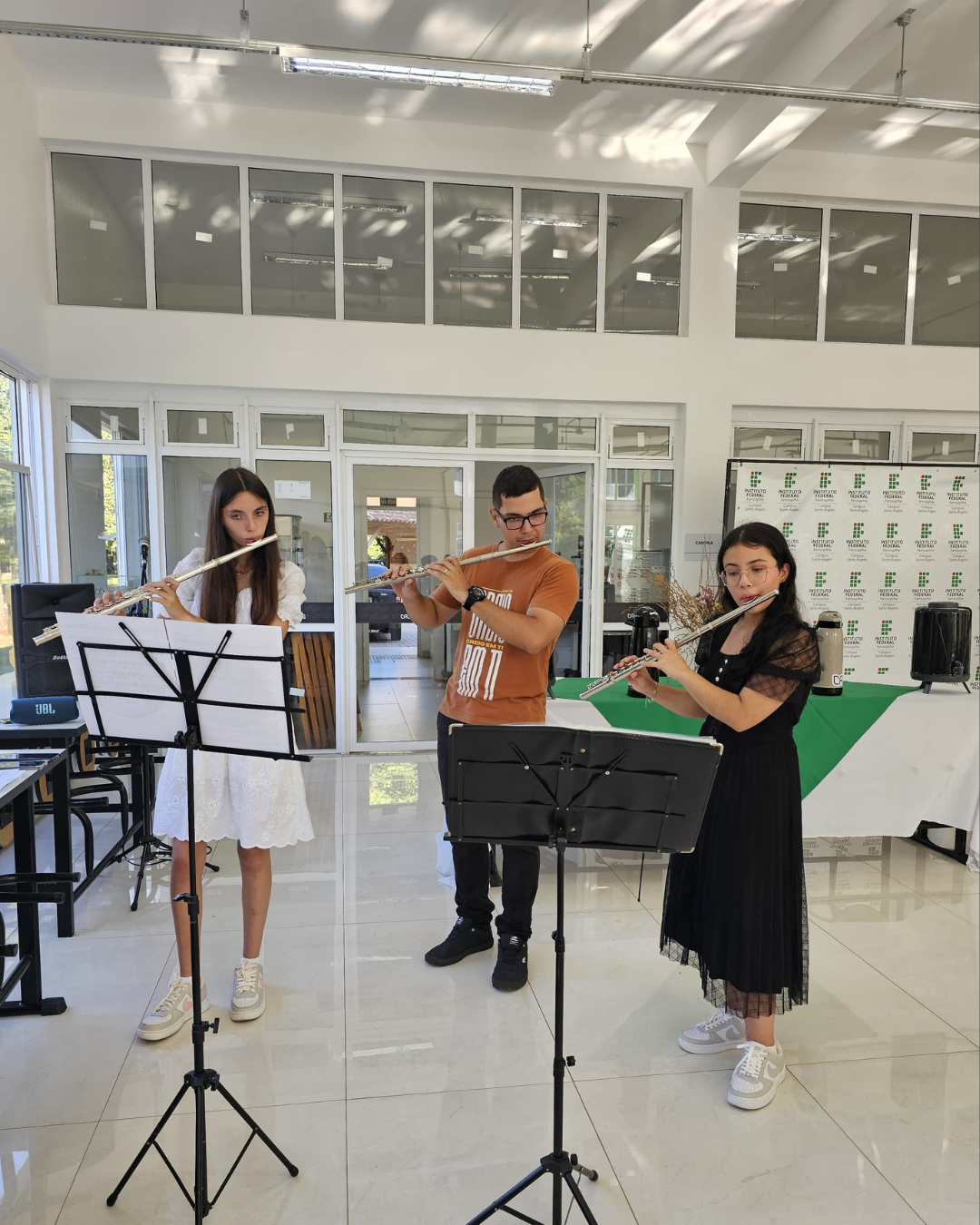 Na manhã de 11 de fevereiro os(as) servidores(as) do IFFar - Campus Santo Ângelo foram recepcionados(as) pela nova Equipe Diretiva, inicialmente com uma apresentação do Grupo Acordes Celestes, numa linda performance com flauta transversal e após participaram da 1ª Reunião Geral do ano.