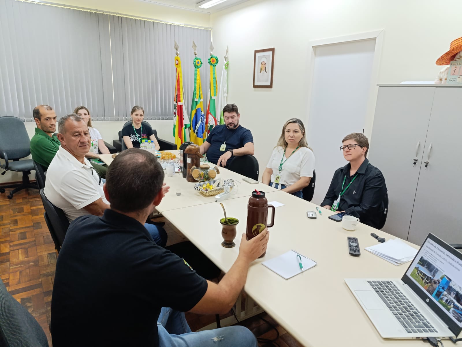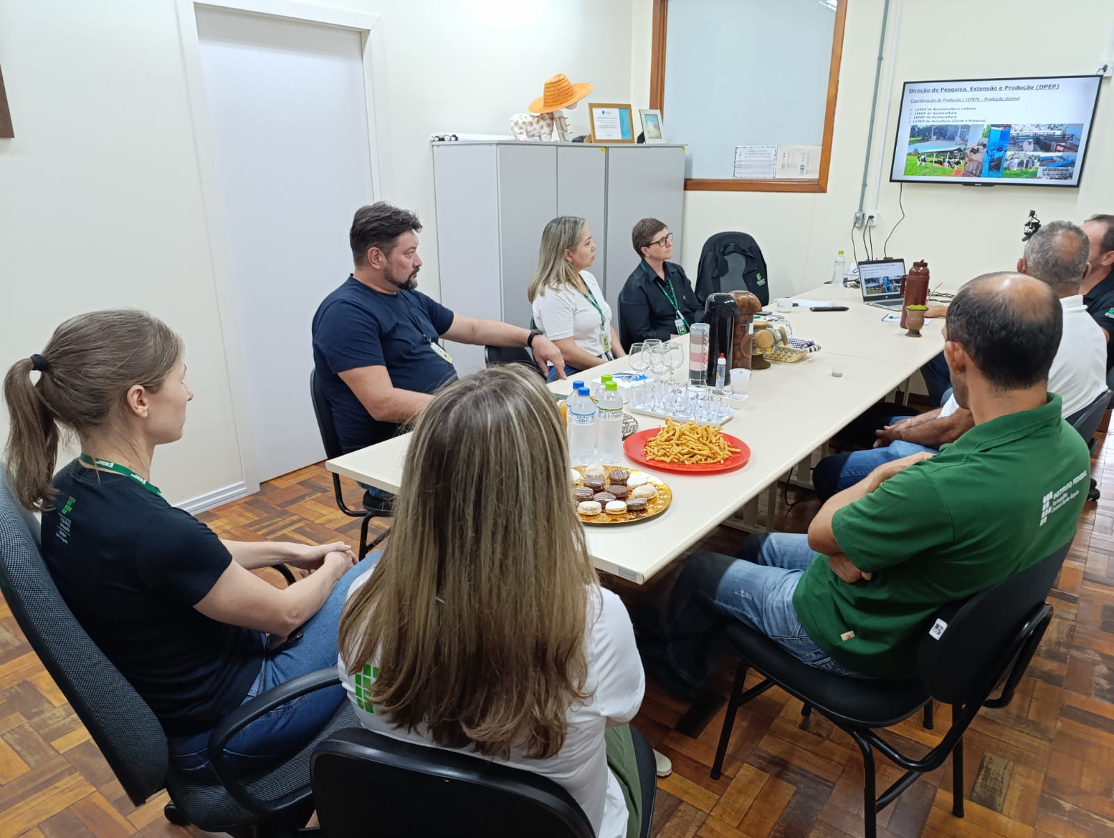 Os visitantes foram recebidos no Gabinete da Direção, pela Diretora Geral Márcia Fink, pelo Diretor de Pesquisa, Extensão e Produção, Ricardo Paraginski, do Coordenador de Produção, Jarbas Melo, da Coordenadora do Curso Técnico em Agropecuária, Patrícia Mombach, e da professora Thamara Luísa Staudt Schneider. Na ocasião, de forma sucinta foram apresentados os Laboratórios de Pesquisa Extensão e Produção - LEPEPs da instituição e também o que atualmente é produzido.